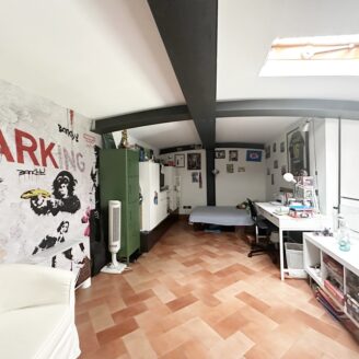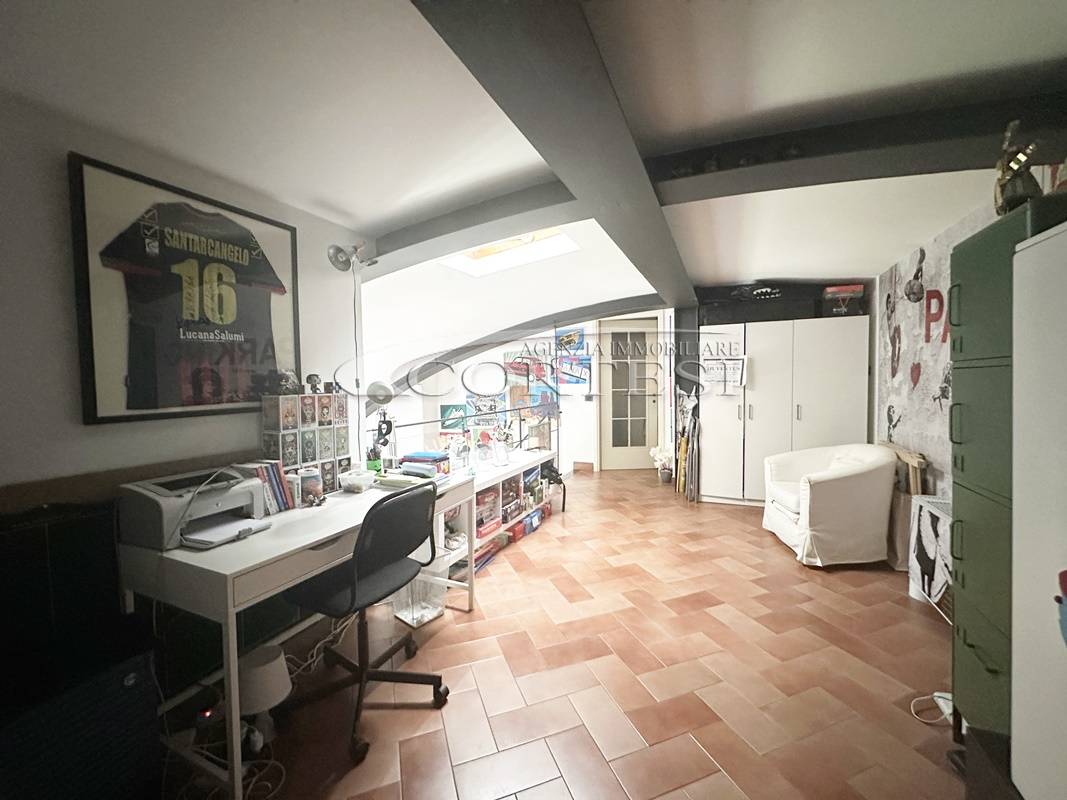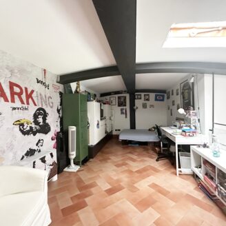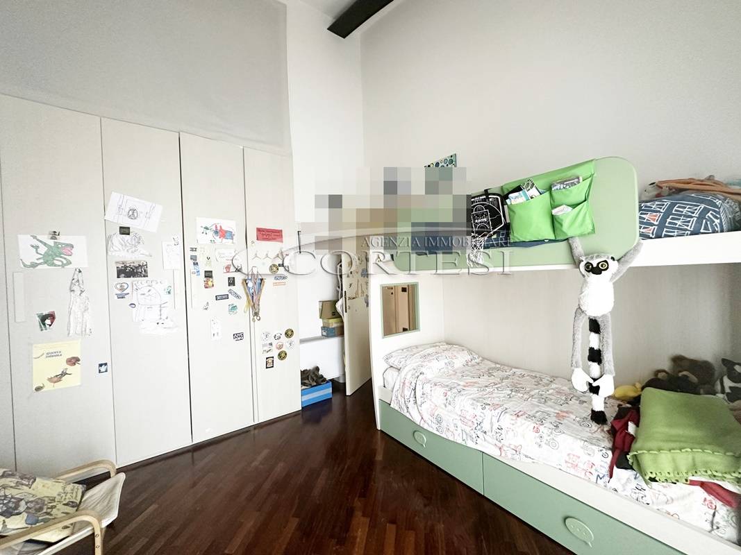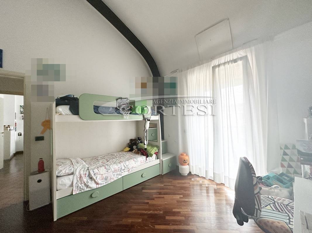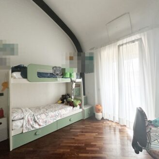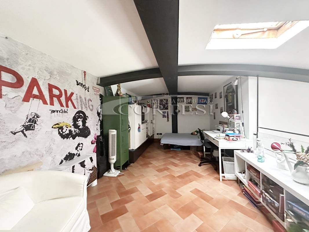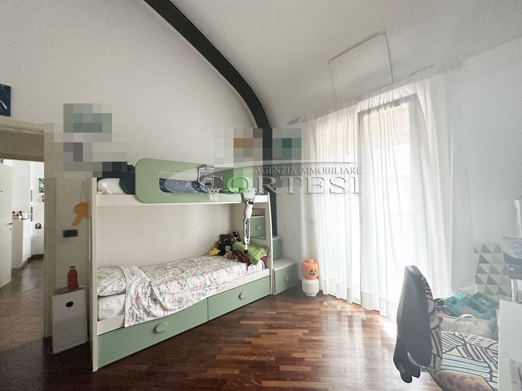 La zona notte si compone di due spaziose camere matrimoniali, di cui una con cabina armadio, e un bagno finestrato. Salendo al piano superiore, soppalcato, troviamo una terza camera matrimoniale con bagno privato, ideale come suite padronale o stanza indipendente per ospiti o studio.