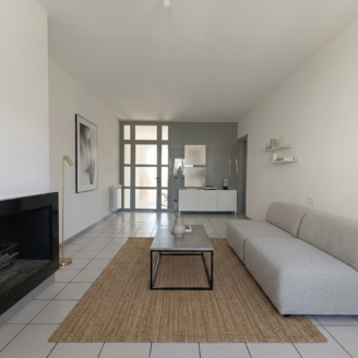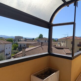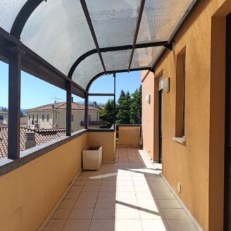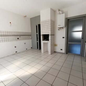 L’appartamento si sviluppa su un unico livello. All’ingresso siamo accolti da un ampio disimpegno che conduce al salone spazioso, dove spicca un moderno camino Piazzetta. Adiacente alla sala troviamo la cucina abitabile, anch’essa dotata di camino utile per preparare piatti alla griglia. Da quest’ultimo ambiente si accede a un balcone vivibile con vista sulla vallata.