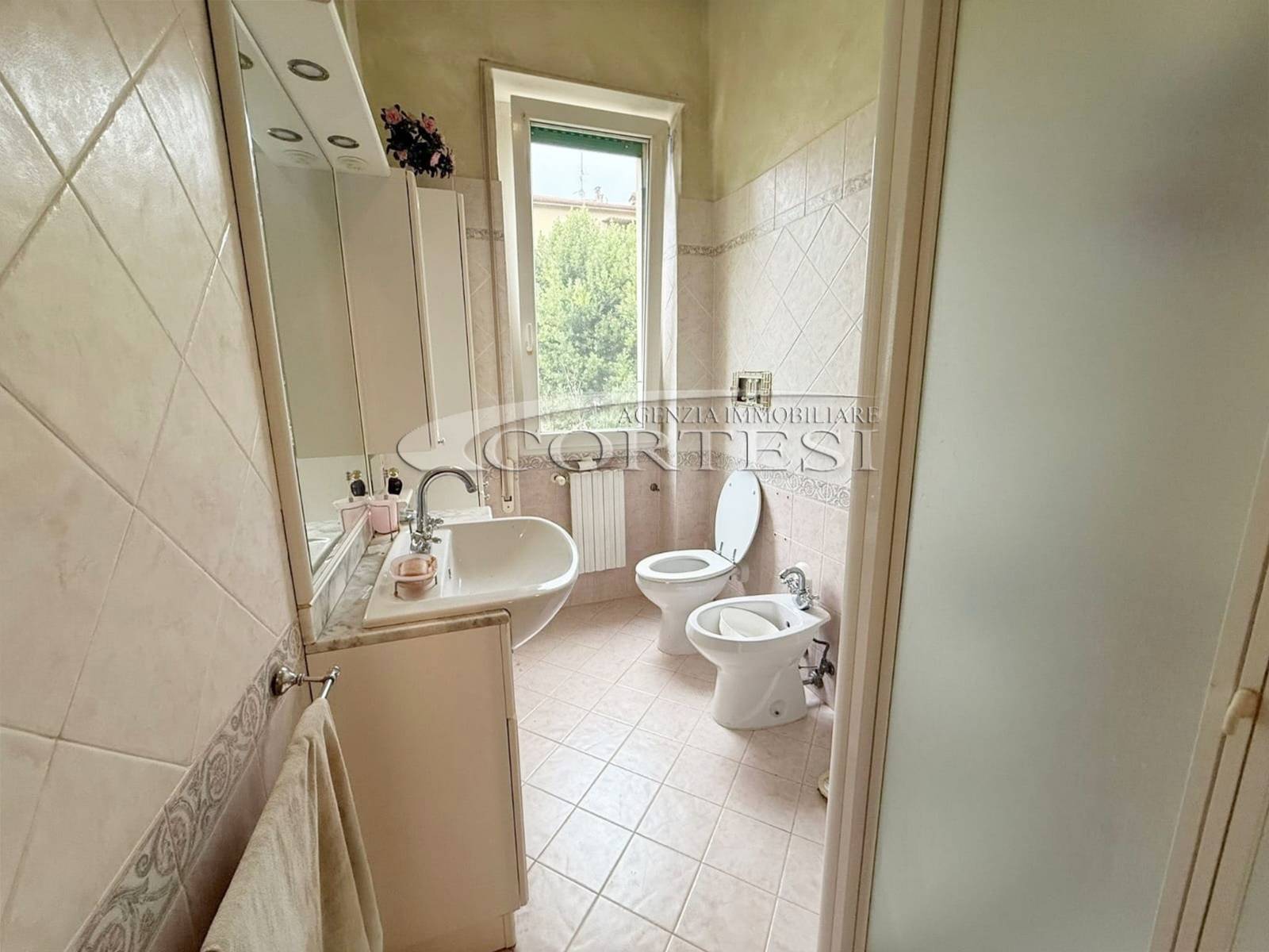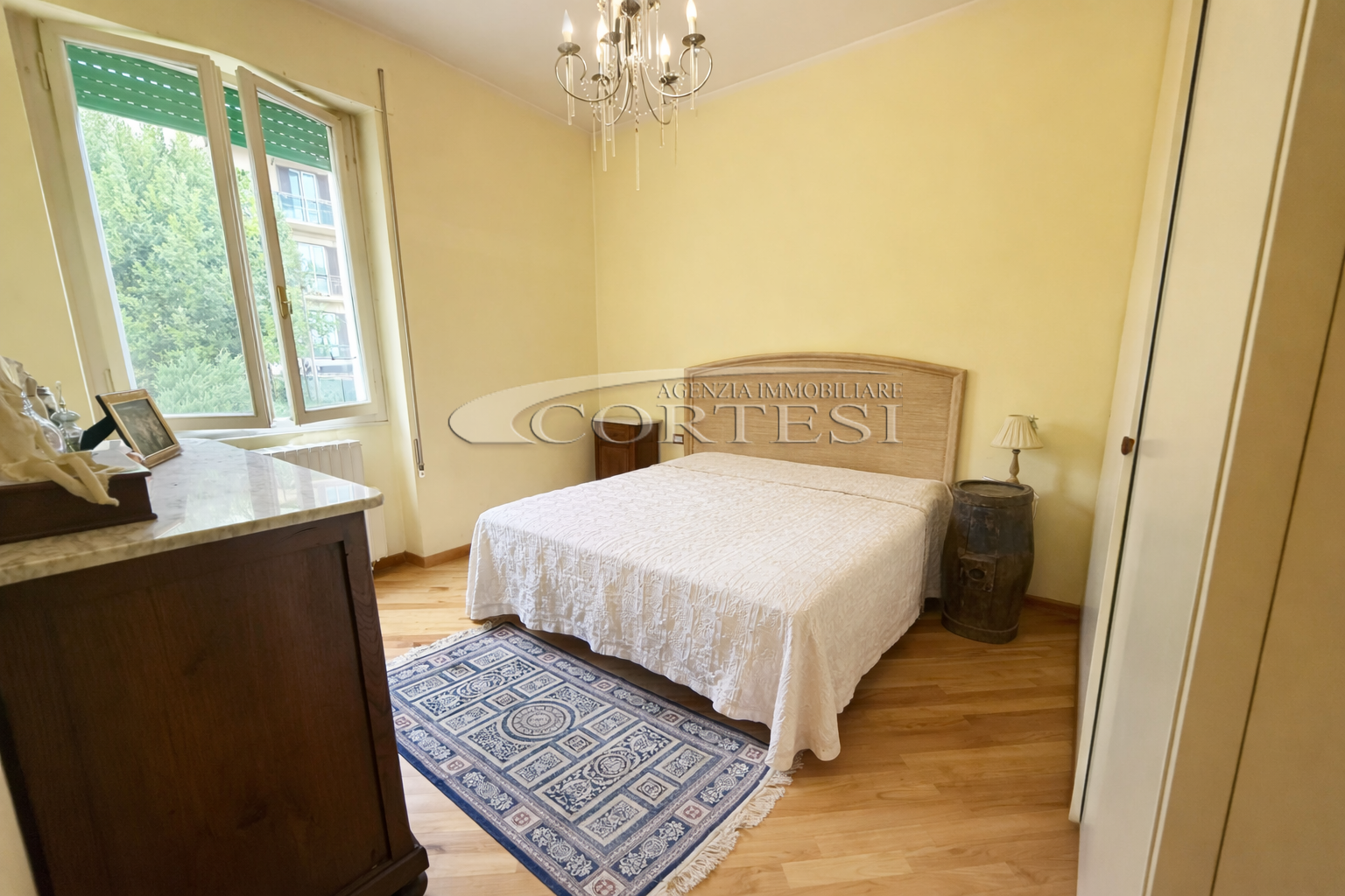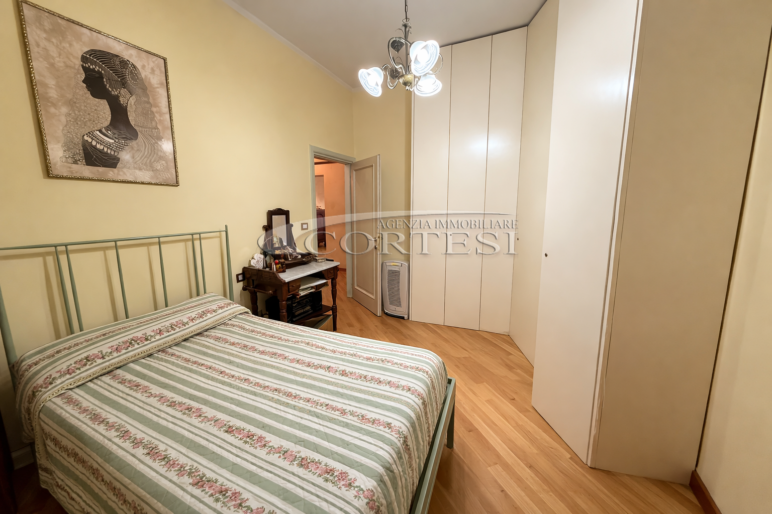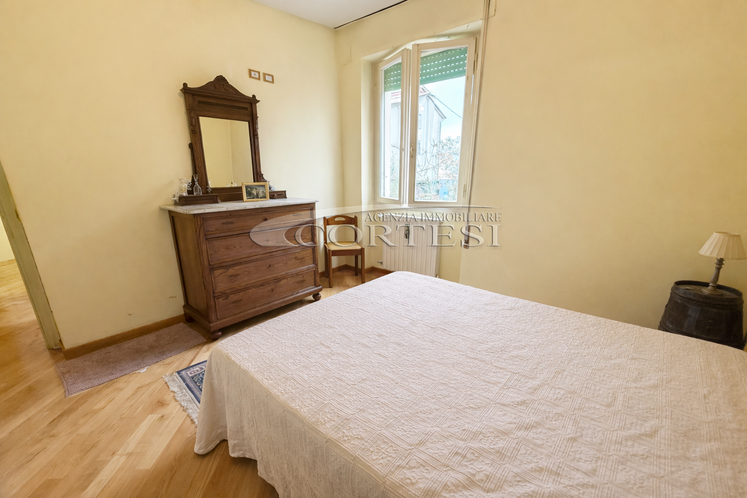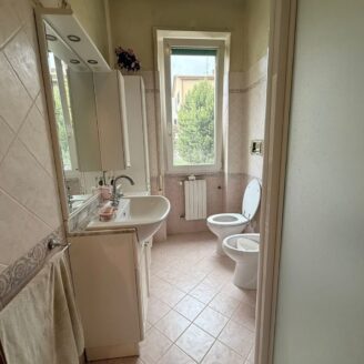 La zona notte, finemente restaurata, offre due camere da letto accoglienti, un comodo ripostiglio e un bagno moderno, finestrato e dotato di box doccia. Ogni dettaglio è stato pensato per il benessere: dagli infissi in PVC alle porte interne in stile classico.