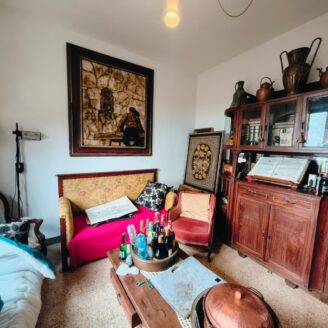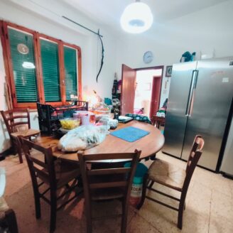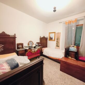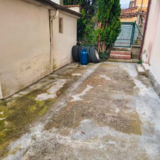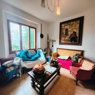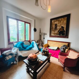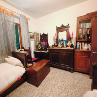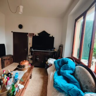 Appartamento di circa 120 mq posto al piano terra con ingresso indipendente in zona Melello all’interno di una bifamiliare. L’immobile si sviluppa interamente su un unico livello e la distribuzione interna comprende una cucina abitabile, un salotto, due camere matrimoniali, una cameretta oltre a un bagno con doccia. La proprietà è circondata da un giardino perimetrale di pertinenza esclusiva che si sviluppa lungo tutti i lati dell’abitazione. All’interno del giardino sono presenti alberi e un pozzo privato a servizio dell’immobile e L’area esterna è direttamente collegata all’abitazione. L’appartamento è inserito in un fabbricato bifamiliare senza parti comuni interne e con accesso autonomo. La posizione consente un collegamento diretto con la viabilità principale. All’interno l’immobile si presenta nello stato originale e attualmente ricco di arredi e oggetti. La casa offre tuttavia ampi margini di valorizzazione attraverso interventi di rinnovamento.