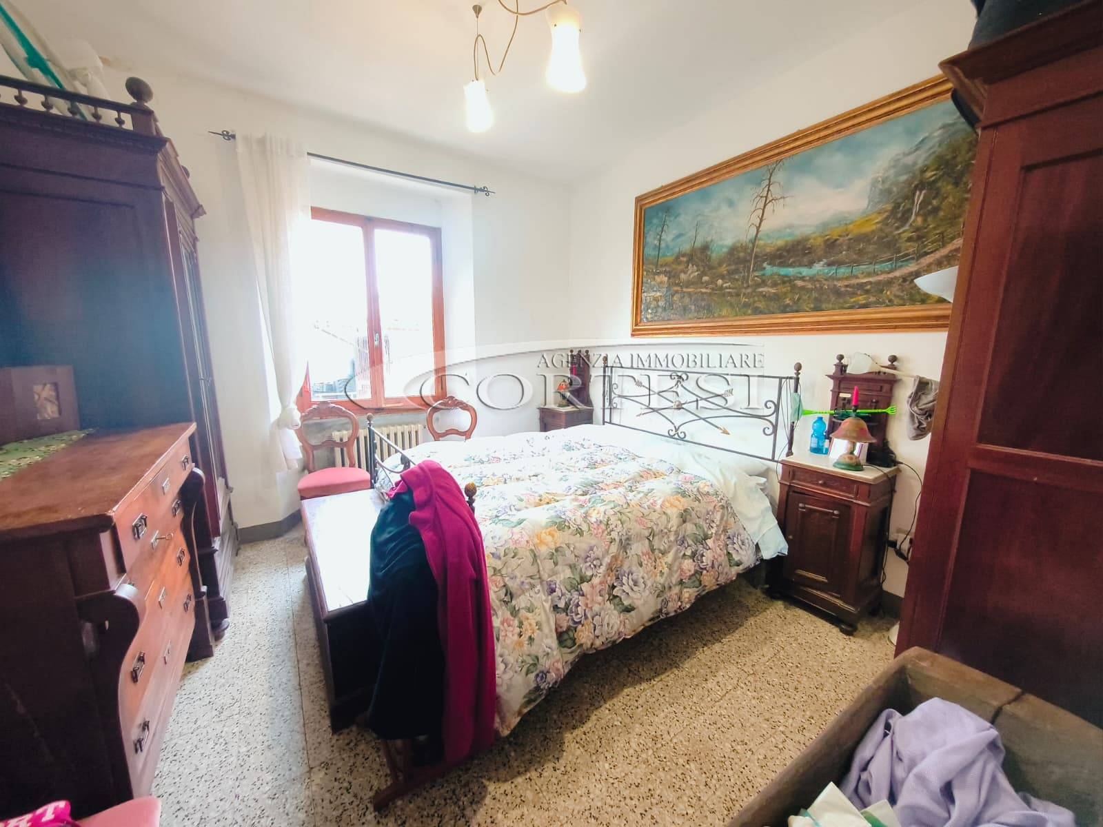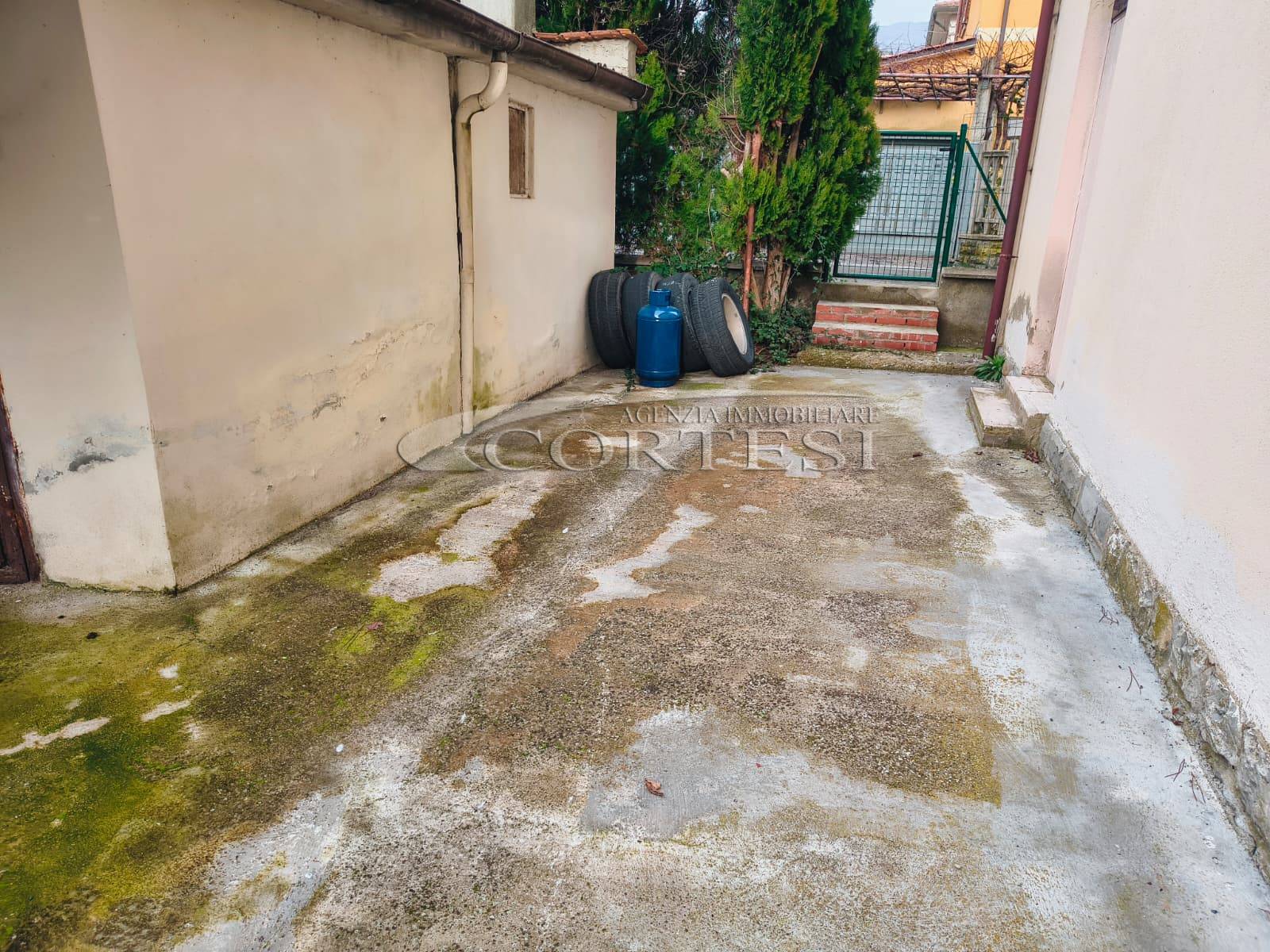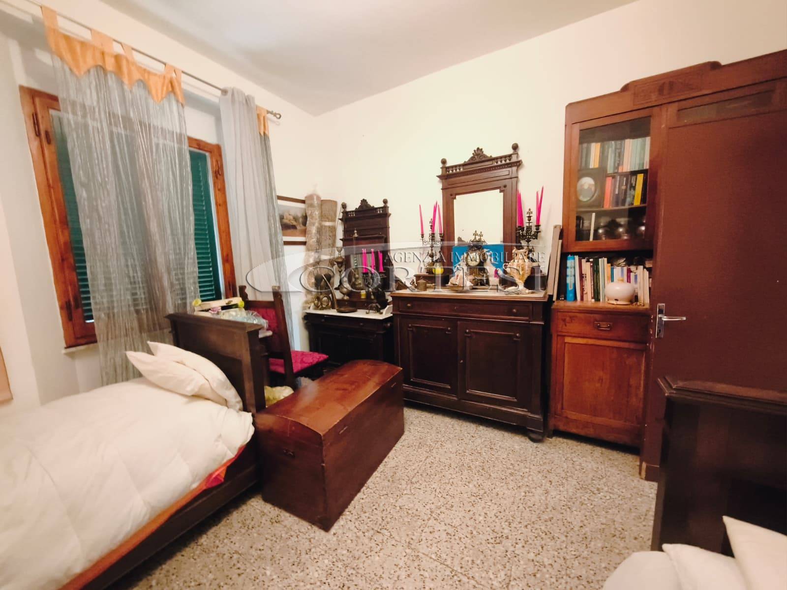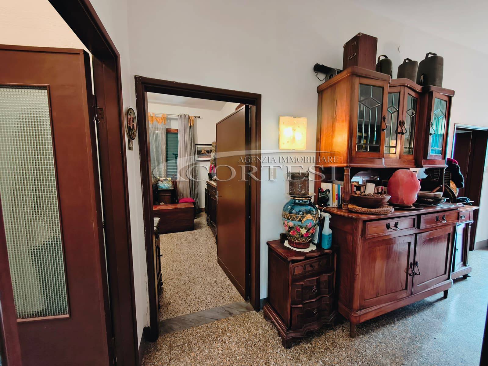 Appartamento di circa 120 mq posto al piano terra con ingresso indipendente in zona Melello all’interno di una bifamiliare. L’immobile si sviluppa interamente su un unico livello e la distribuzione interna comprende una cucina abitabile, un salotto, due camere matrimoniali, una cameretta oltre a un bagno con doccia. La proprietà è circondata da un giardino perimetrale di pertinenza esclusiva che si sviluppa lungo tutti i lati dell’abitazione. All’interno del giardino sono presenti alberi e un pozzo privato a servizio dell’immobile e L’area esterna è direttamente collegata all’abitazione. L’appartamento è inserito in un fabbricato bifamiliare senza parti comuni interne e con accesso autonomo. La posizione consente un collegamento diretto con la viabilità principale. All’interno l’immobile si presenta nello stato originale e attualmente ricco di arredi e oggetti. La casa offre tuttavia ampi margini di valorizzazione attraverso interventi di rinnovamento.