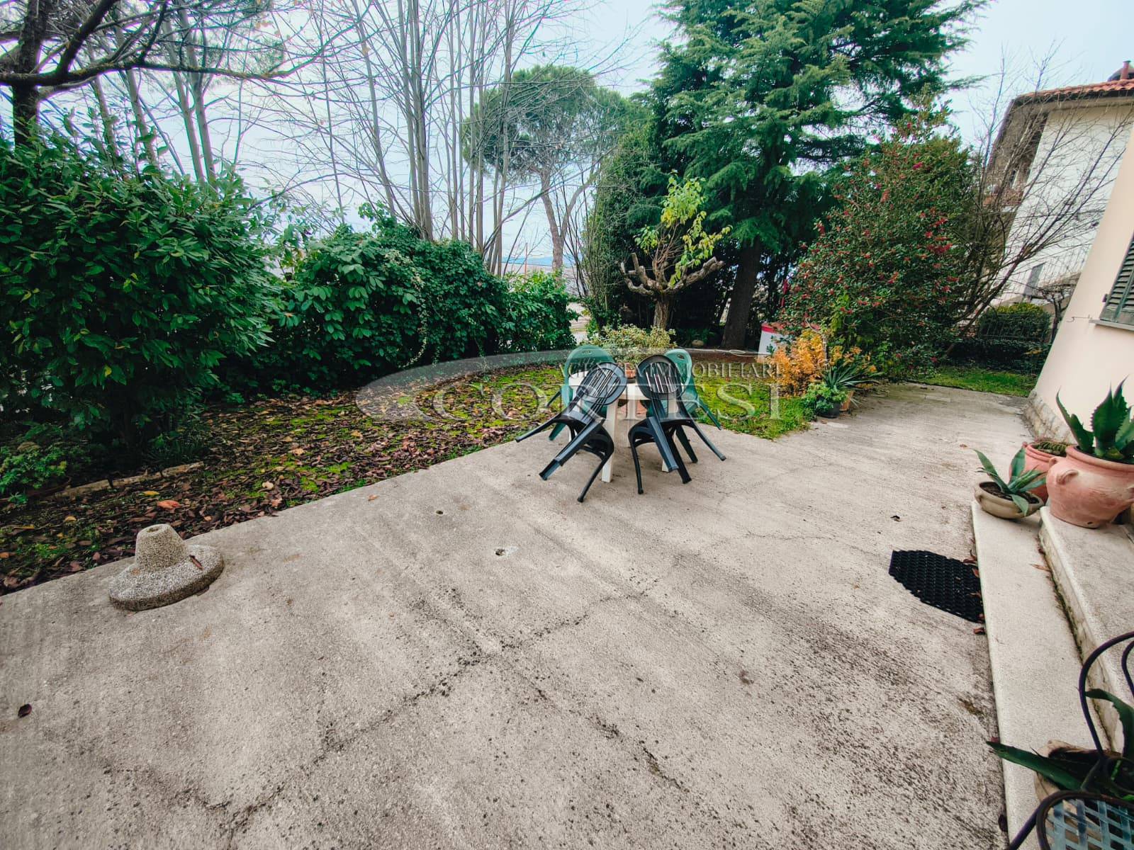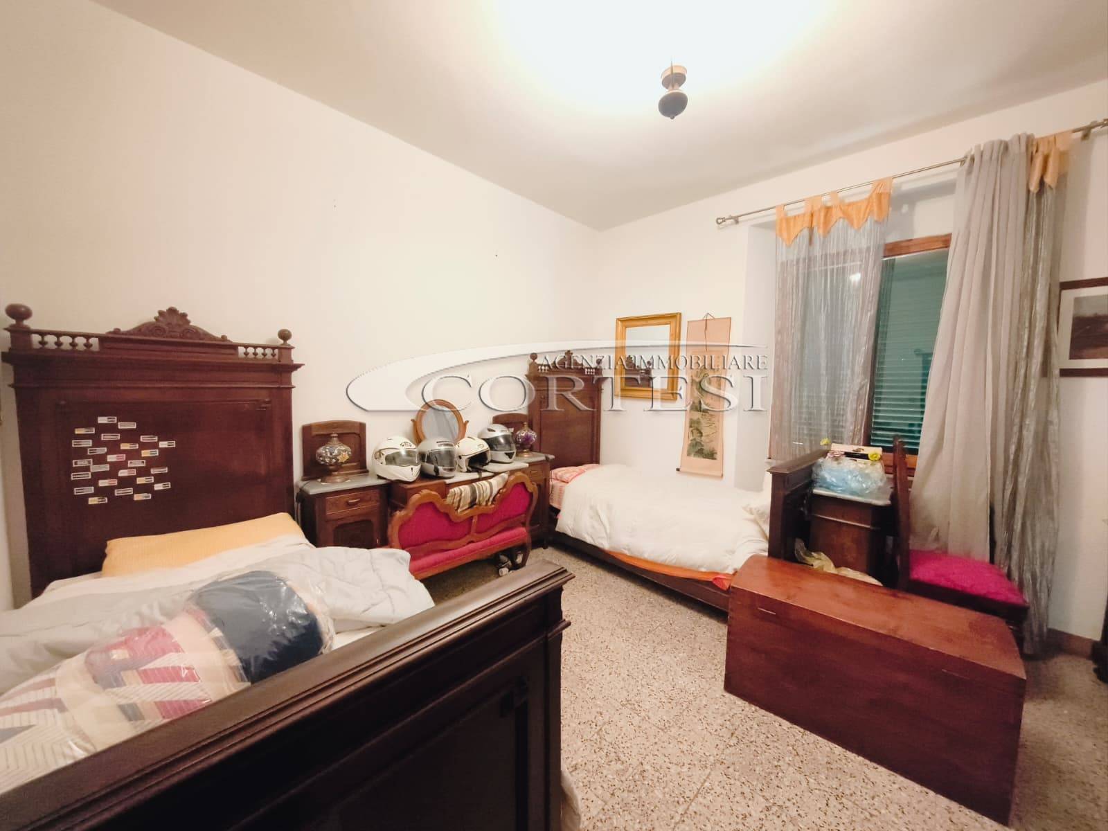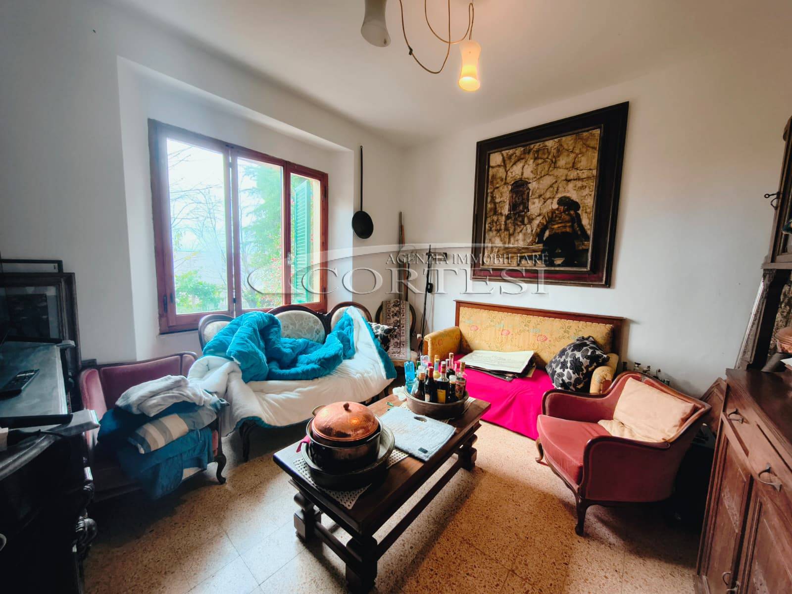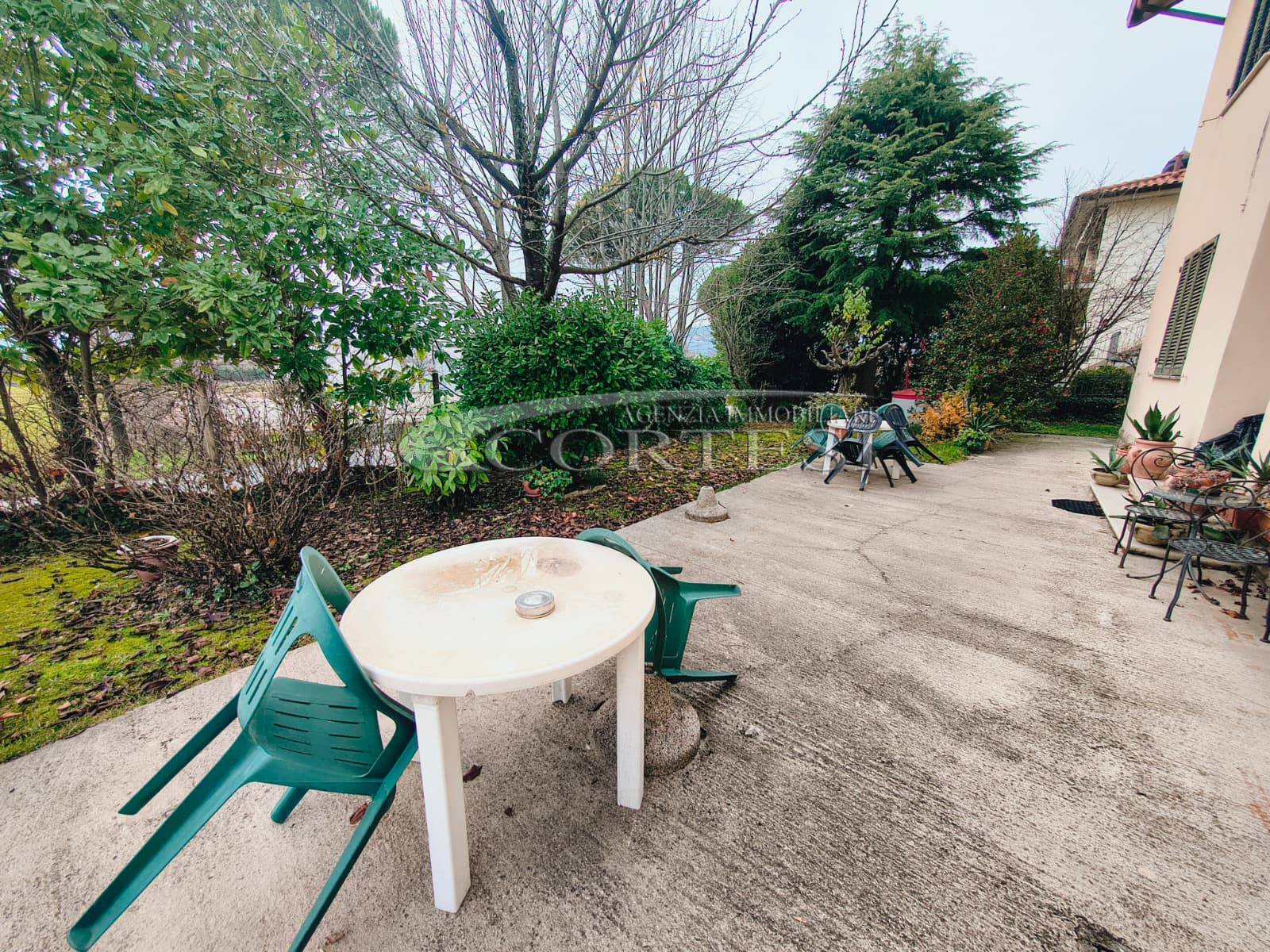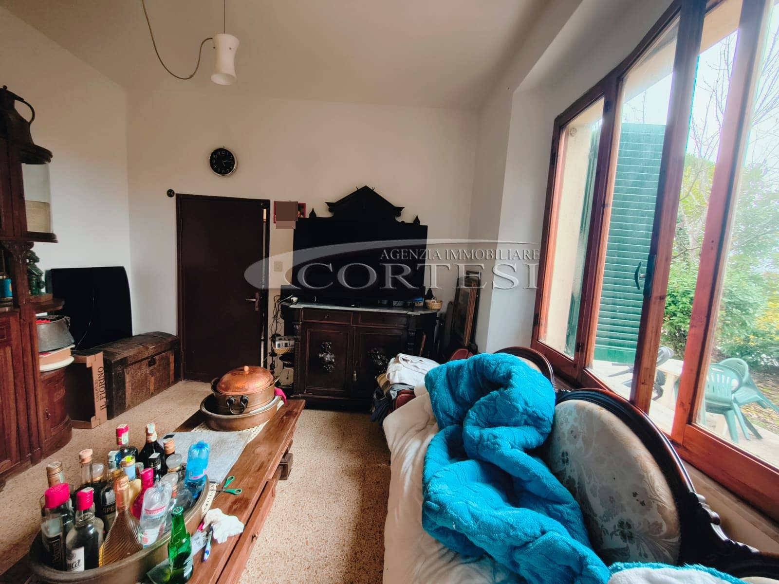 Appartamento di circa 120 mq posto al piano terra con ingresso indipendente in zona Melello all’interno di una bifamiliare. L’immobile si sviluppa interamente su un unico livello e la distribuzione interna comprende una cucina abitabile, un salotto, due camere matrimoniali, una cameretta oltre a un bagno con doccia. La proprietà è circondata da un giardino perimetrale di pertinenza esclusiva che si sviluppa lungo tutti i lati dell’abitazione. All’interno del giardino sono presenti alberi e un pozzo privato a servizio dell’immobile e L’area esterna è direttamente collegata all’abitazione. L’appartamento è inserito in un fabbricato bifamiliare senza parti comuni interne e con accesso autonomo. La posizione consente un collegamento diretto con la viabilità principale. All’interno l’immobile si presenta nello stato originale e attualmente ricco di arredi e oggetti. La casa offre tuttavia ampi margini di valorizzazione attraverso interventi di rinnovamento.