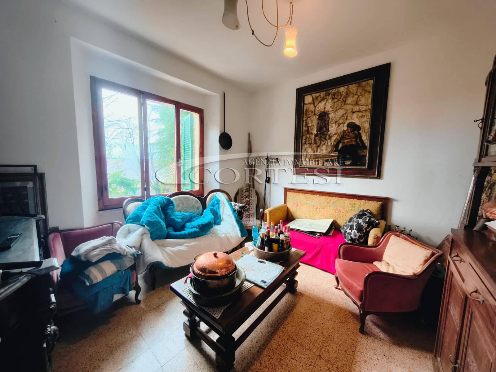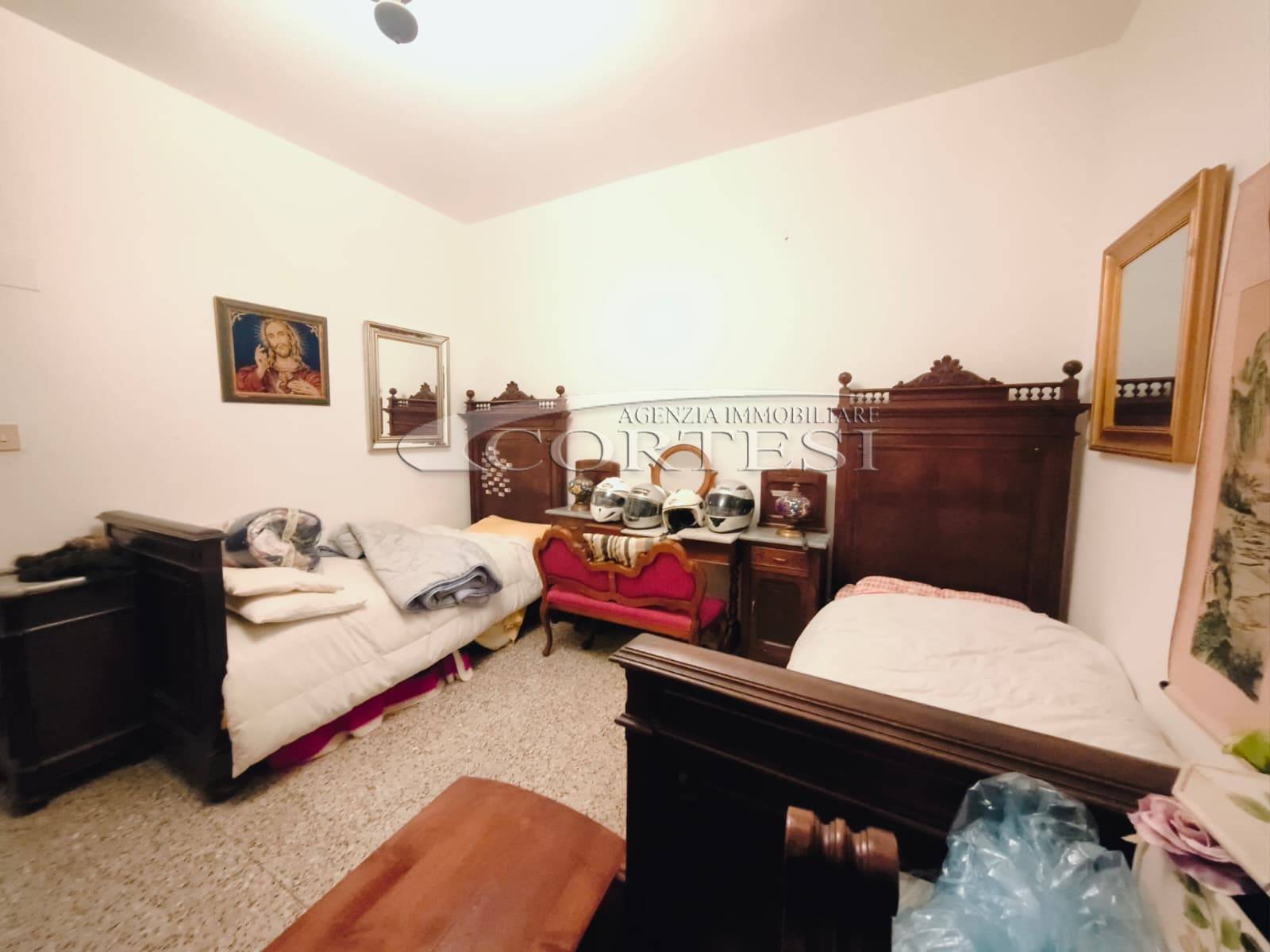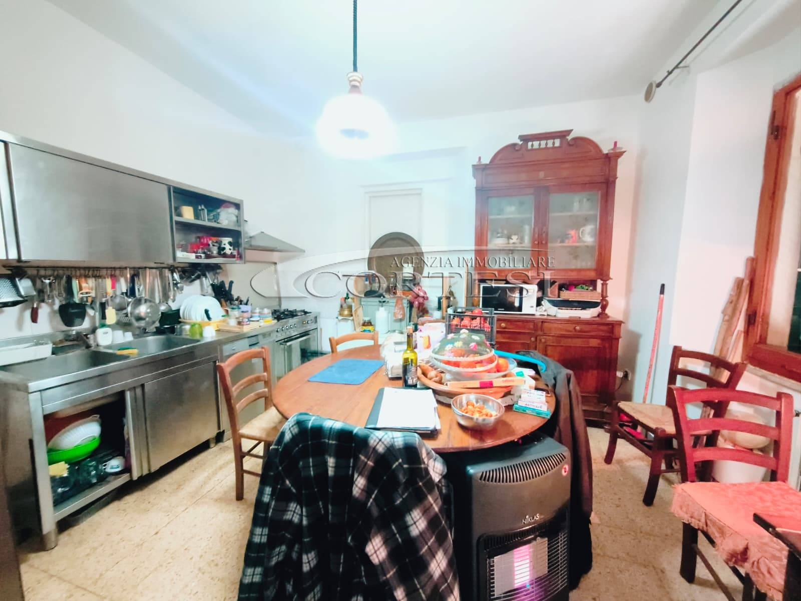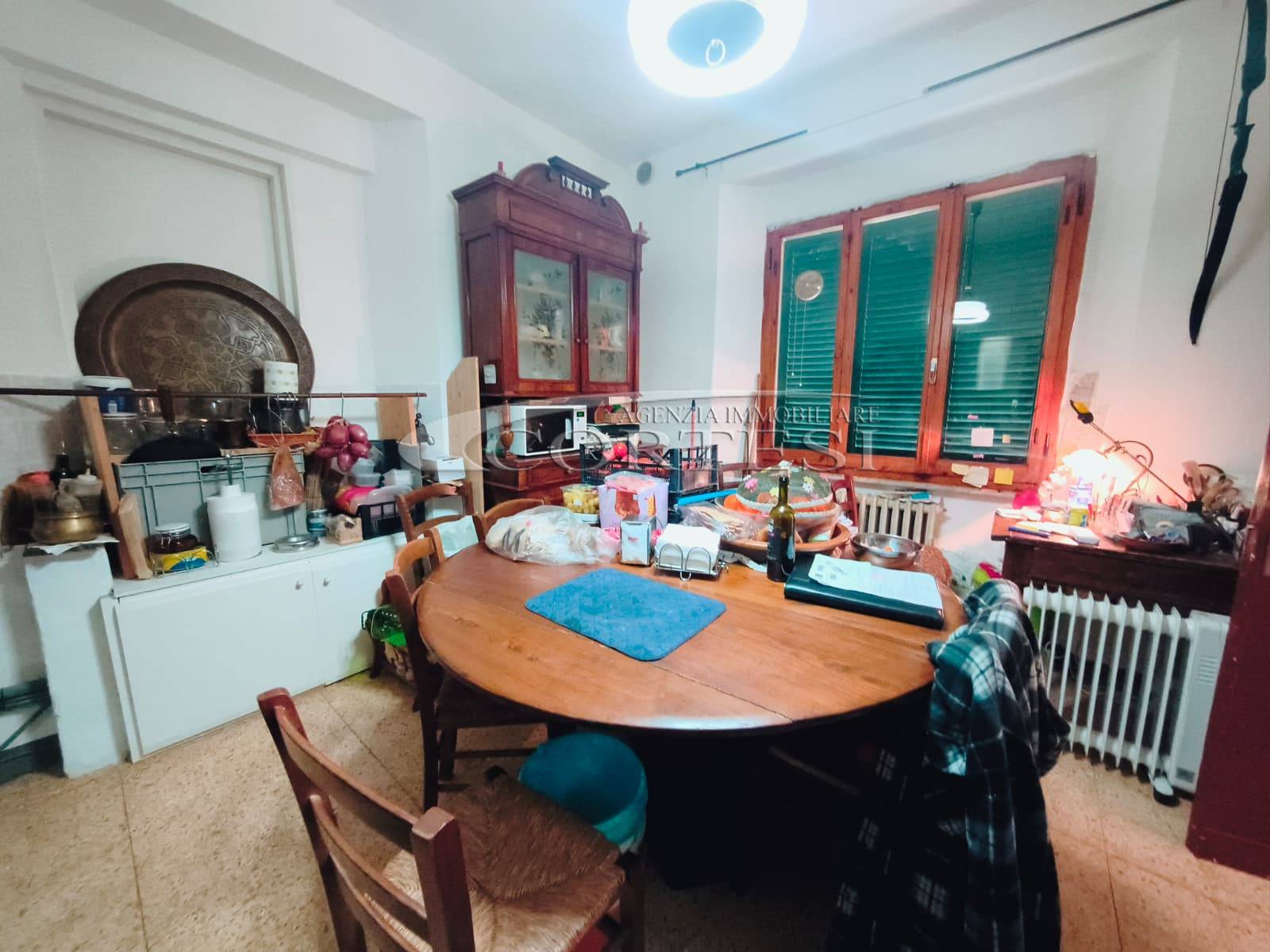 Appartamento di circa 120 mq posto al piano terra con ingresso indipendente in zona Melello all’interno di una bifamiliare. L’immobile si sviluppa interamente su un unico livello e la distribuzione interna comprende una cucina abitabile, un salotto, due camere matrimoniali, una cameretta oltre a un bagno con doccia. La proprietà è circondata da un giardino perimetrale di pertinenza esclusiva che si sviluppa lungo tutti i lati dell’abitazione. All’interno del giardino sono presenti alberi e un pozzo privato a servizio dell’immobile e L’area esterna è direttamente collegata all’abitazione. L’appartamento è inserito in un fabbricato bifamiliare senza parti comuni interne e con accesso autonomo. La posizione consente un collegamento diretto con la viabilità principale. All’interno l’immobile si presenta nello stato originale e attualmente ricco di arredi e oggetti. La casa offre tuttavia ampi margini di valorizzazione attraverso interventi di rinnovamento.
