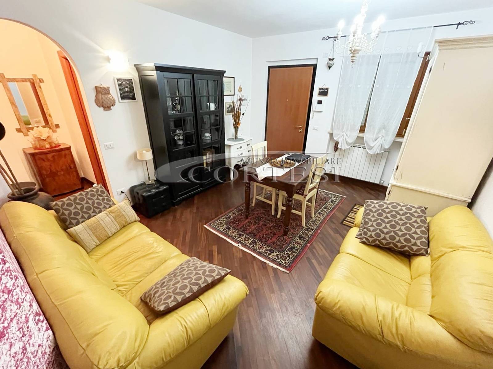 Appartamento con ingresso indipendente a piano terra di recente costruzione completamente arredato composto da: soggiorno con angolo cottura, camera matrimoniale, bagno e ampio terrazzo oltre a garage adibito a taverna con lavanderia e piccolo giardino privato.