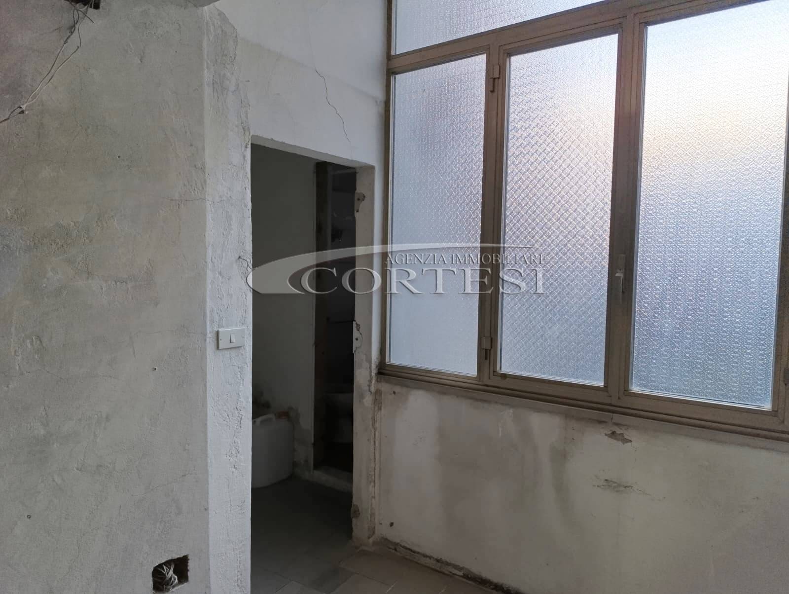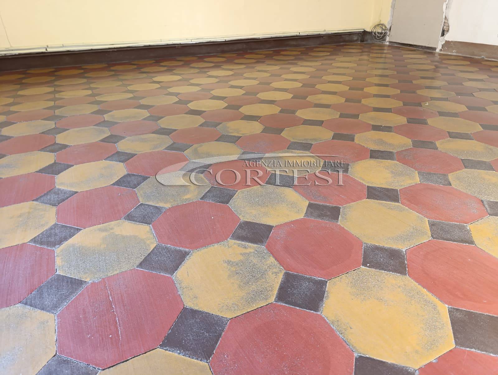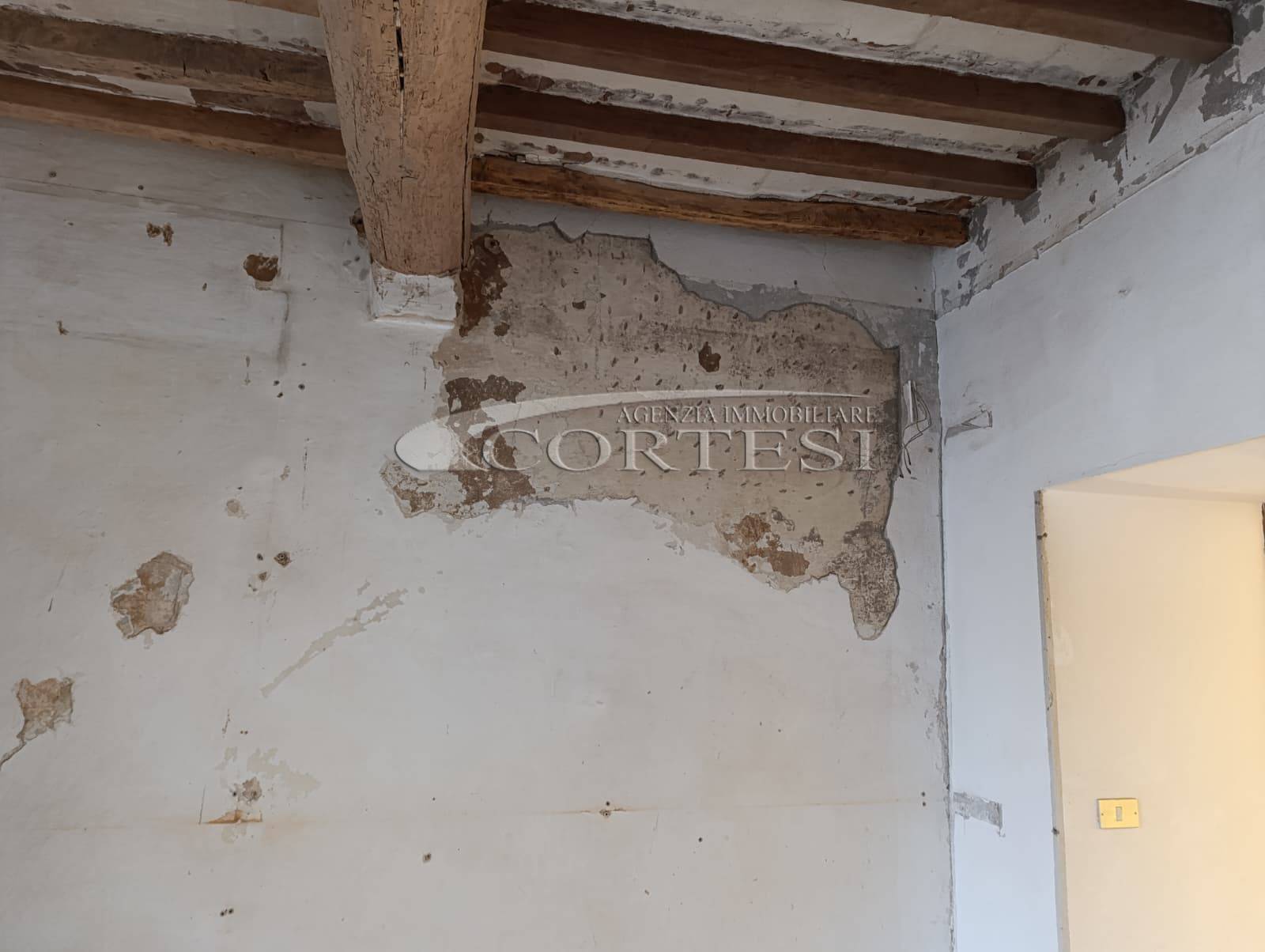 L’immobile ha un fascino autentico: i pavimenti sono originali del 1800 e sulle pareti si intravedono tracce di affreschi antichi. Lo spazio si apre sulla zona giorno dove, come mostrano i rendering, è prevista una cucina con area living, adiacente c’è il bagno, mentre dalla sala si passa alla camera da letto, molto grande e con la finestra che affaccia proprio sul corso.