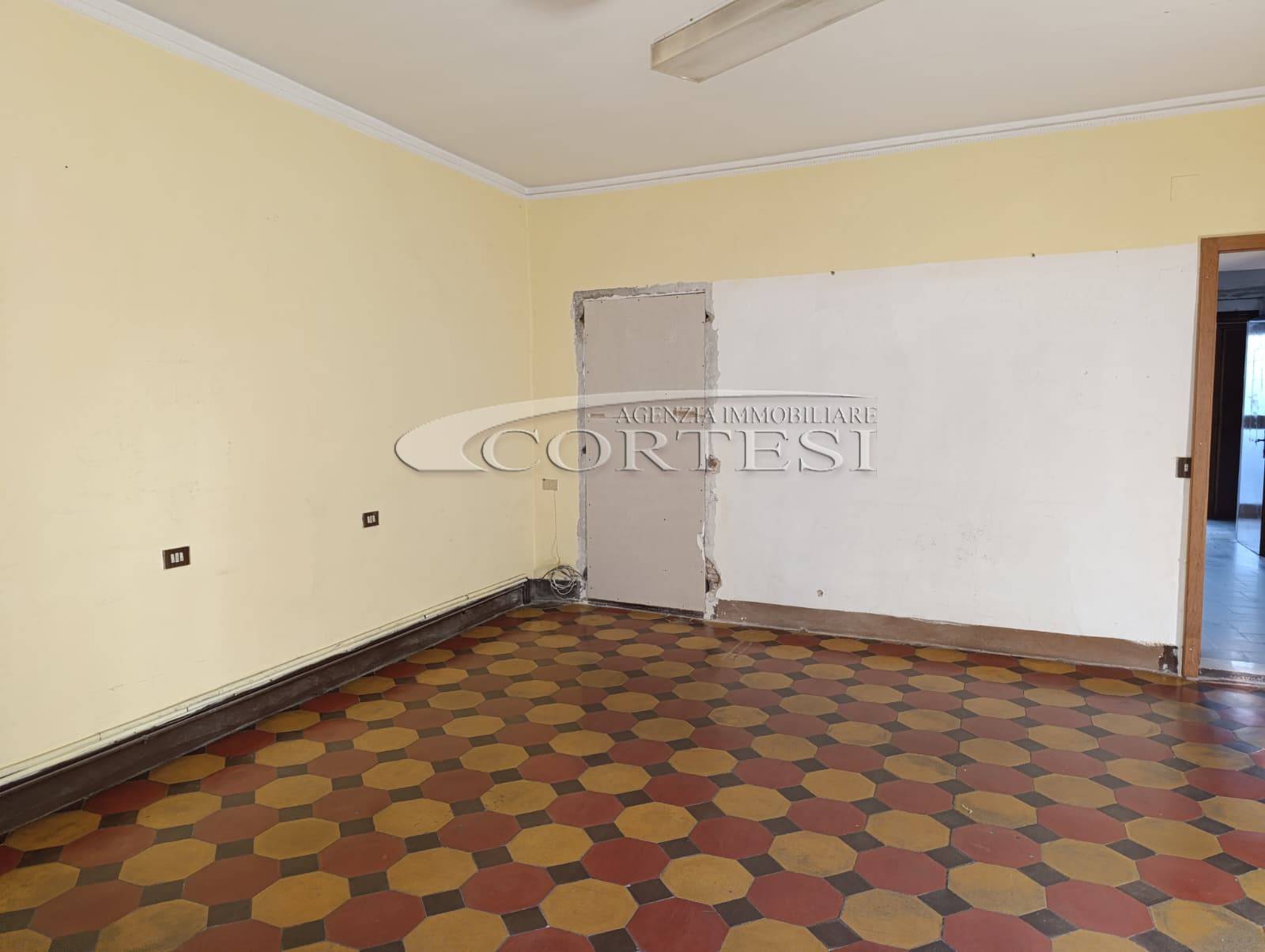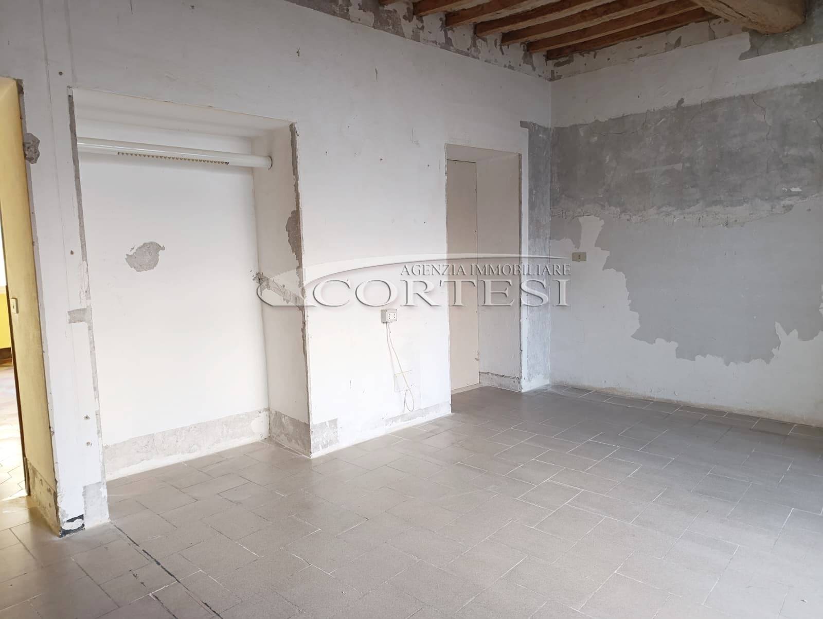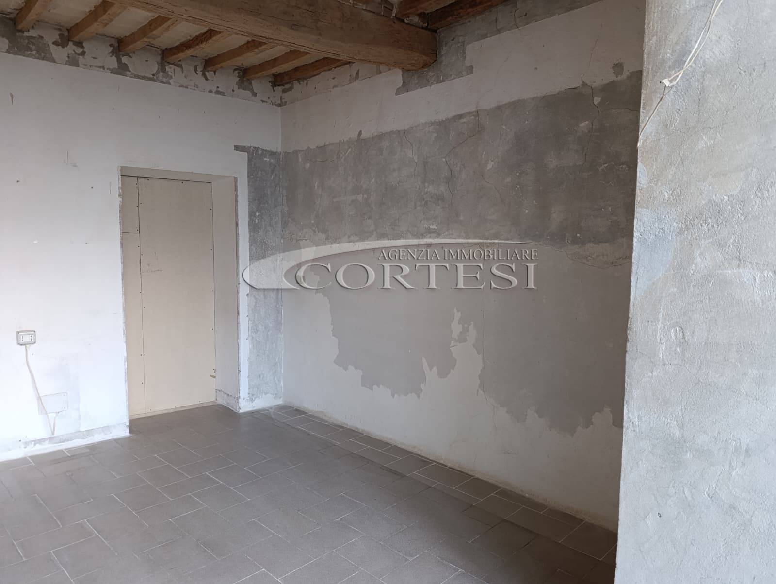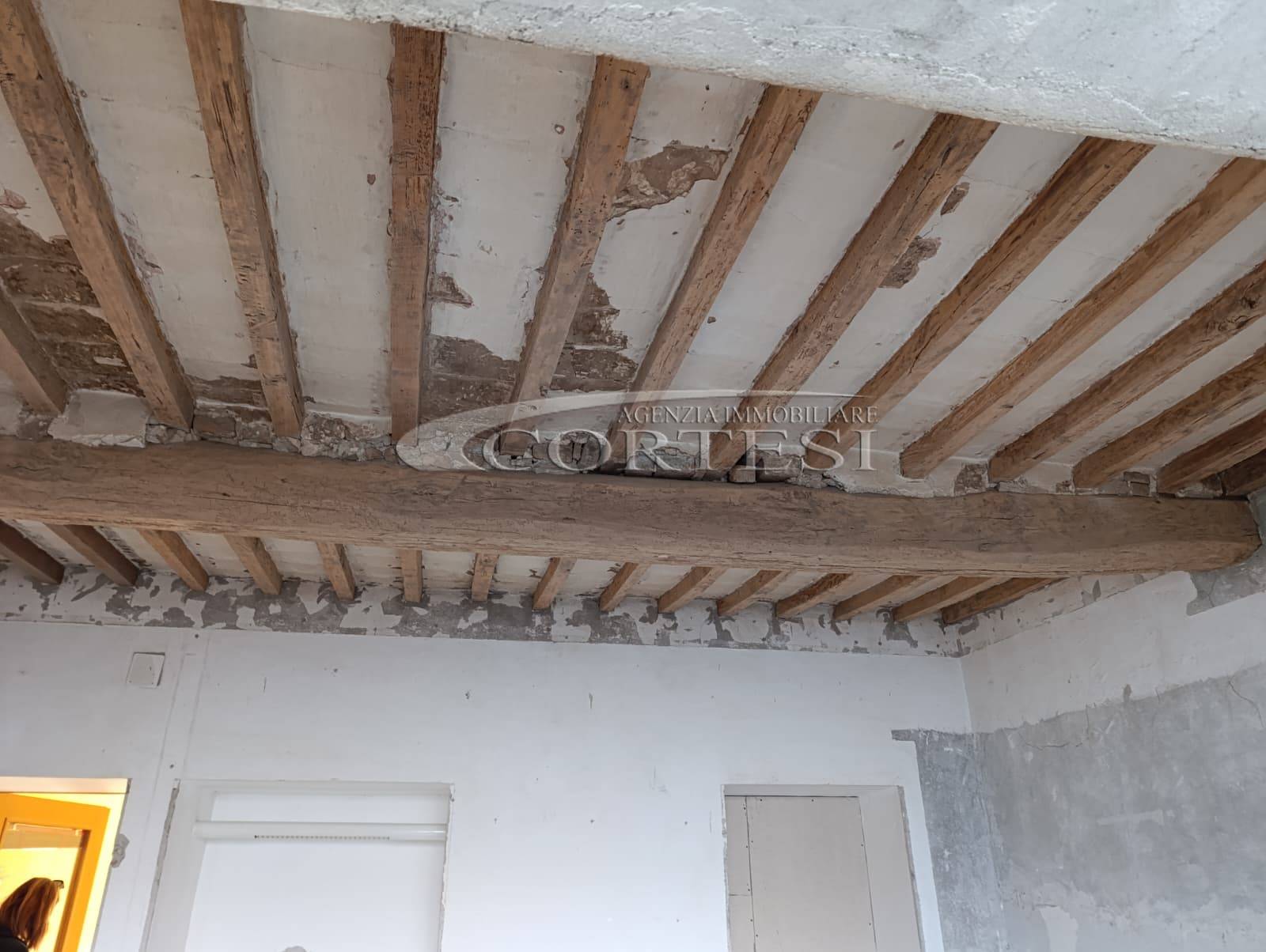 L’immobile ha un fascino autentico: i pavimenti sono originali del 1800 e sulle pareti si intravedono tracce di affreschi antichi. Lo spazio si apre sulla zona giorno dove, come mostrano i rendering, è prevista una cucina con area living, adiacente c’è il bagno, mentre dalla sala si passa alla camera da letto, molto grande e con la finestra che affaccia proprio sul corso.
