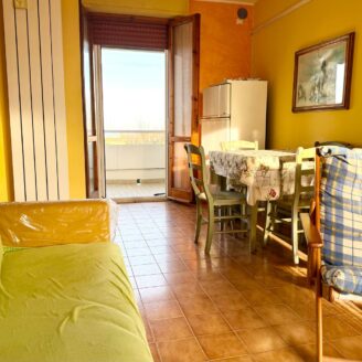 A soli 200 metri dalla spiaggia, in palazzina esternamente ristrutturata, appartamento posto al primo piano in zona tranquilla a Metaurilia. L’immobile è composto da ingresso su luminoso soggiorno con angolo cottura e accesso diretto al terrazzo abitabile con vista mare, camera singola, camera matrimoniale anch’essa con terrazzo vista mare e bagno finestrato con box doccia. Completano la proprietà un posto auto esterno e una spaziosa cantina.