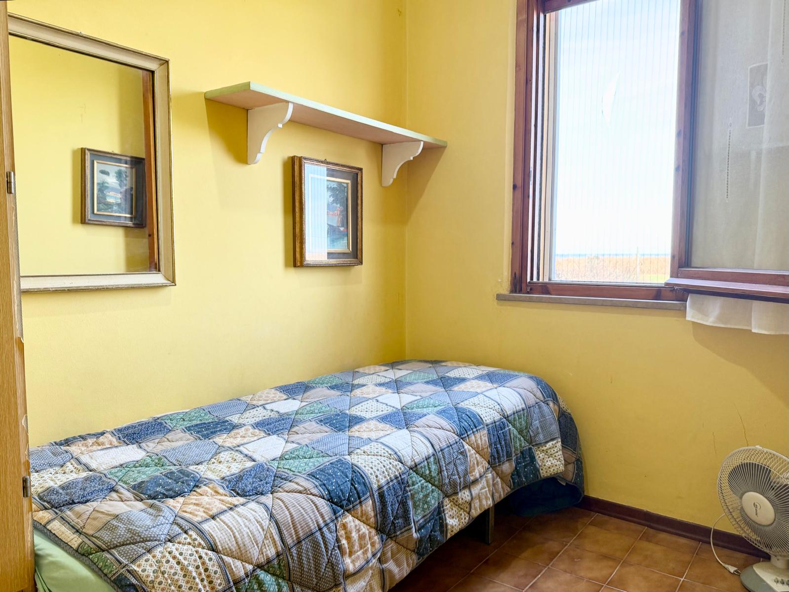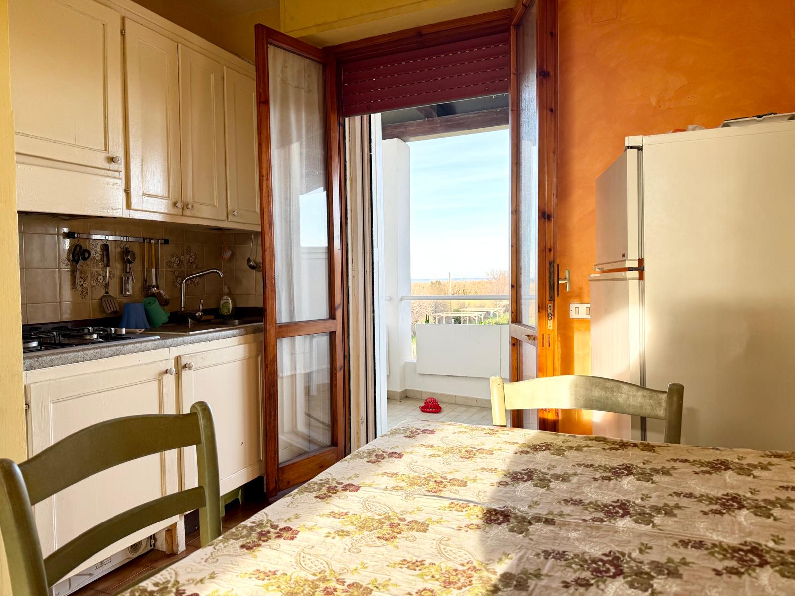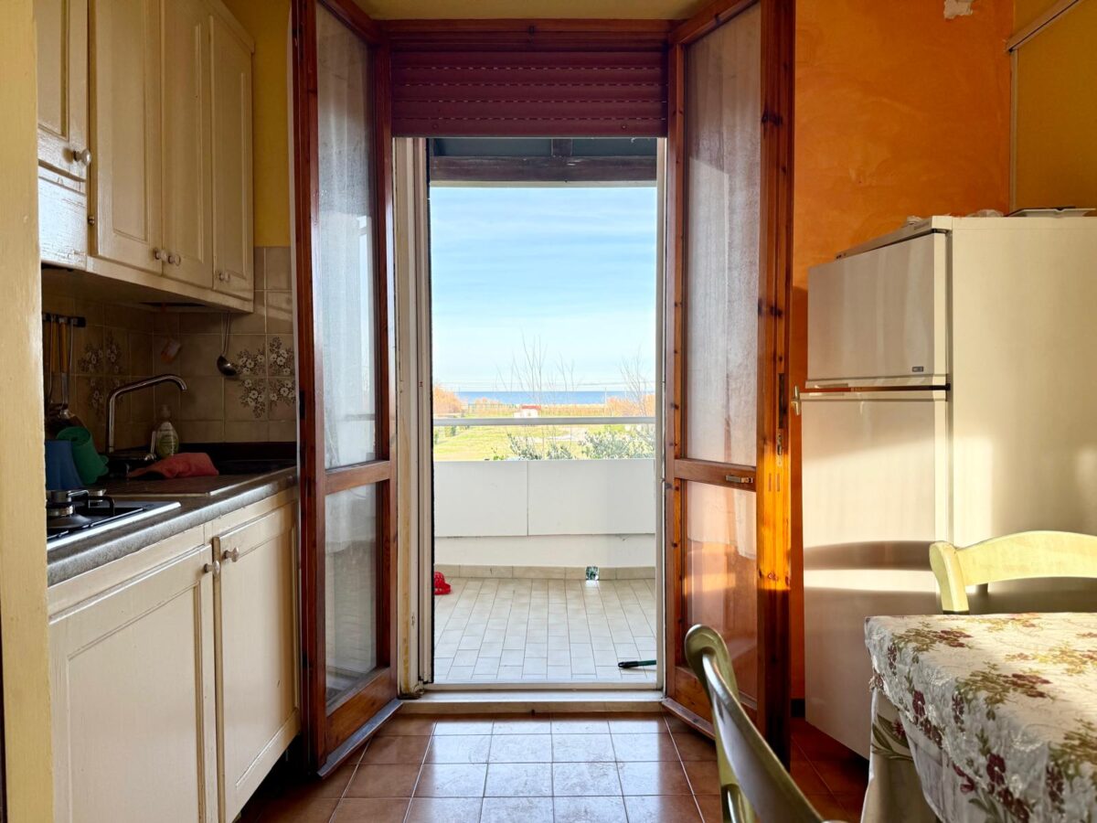 A soli 200 metri dalla spiaggia, in palazzina esternamente ristrutturata, appartamento posto al primo piano in zona tranquilla a Metaurilia. L’immobile è composto da ingresso su luminoso soggiorno con angolo cottura e accesso diretto al terrazzo abitabile con vista mare, camera singola, camera matrimoniale anch’essa con terrazzo vista mare e bagno finestrato con box doccia. Completano la proprietà un posto auto esterno e una spaziosa cantina.