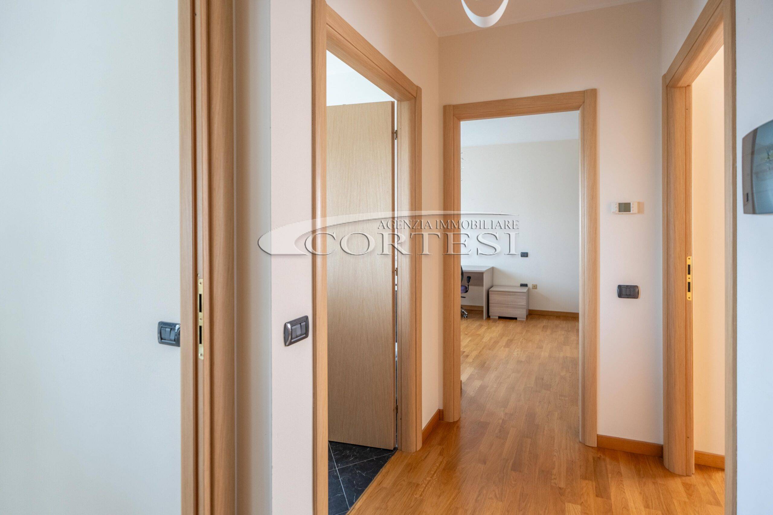 A completare la proprietà troviamo un garage di circa 20 mq al piano seminterrato e un posto auto privato.