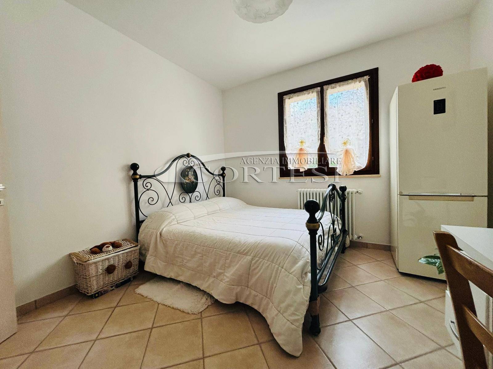 Elegante appartamento al piano rialzato con ingresso indipendente che garantisce privacy e autonomia. L’ingresso si apre su un ampio e luminoso soggiorno con cucina a vista . Da qui si accede al balcone, che regala luce e ariosità agli interni. La zona notte è composta una camera matrimoniale con accesso al balcone, una cameretta, un ampio bagno finestrato e pratico ripostiglio. A rendere questa proprietà davvero unica è il giardino privato di circa 100 mq, uno spazio esclusivo dove vivere momenti di relax all’aria aperta, cene estive o semplicemente godersi il verde. Completa la soluzione un box di 30 mq. Ultima ristrutturazione nel 2021