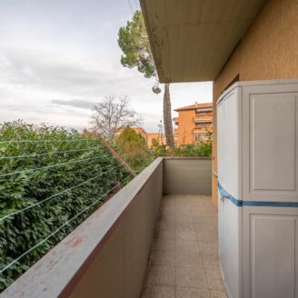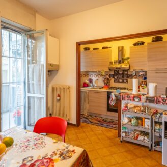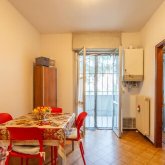 L’abitazione si compone di ingresso, cucinotto, sala da pranzo con accesso diretto al balcone, camera matrimoniale, cameretta/studio e bagno finestrato, offrendo ambienti funzionali e ben distribuiti.