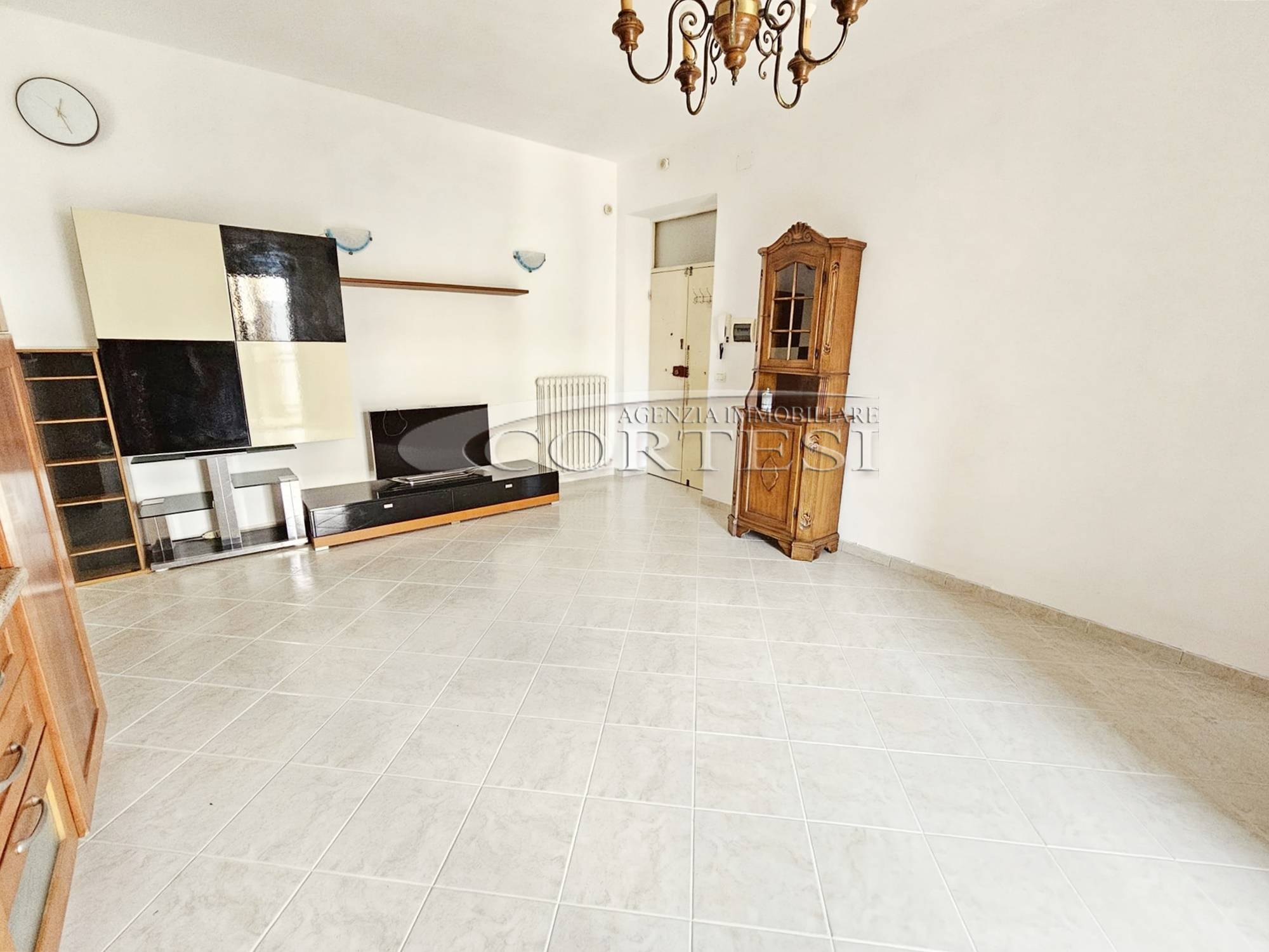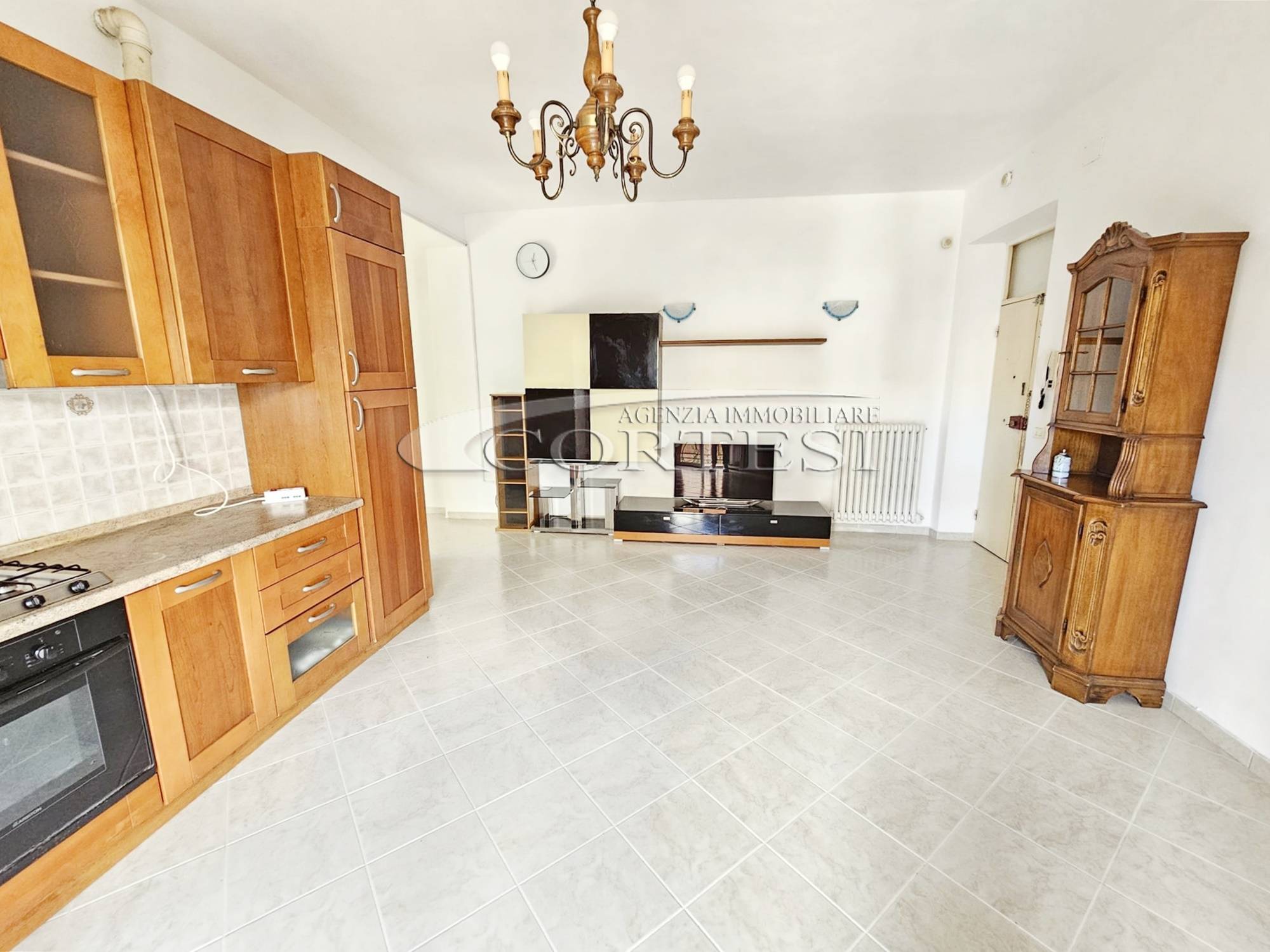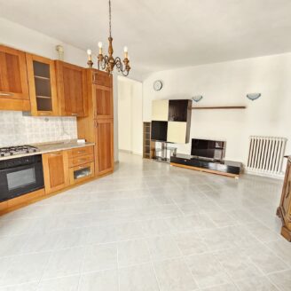 Proponiamo in vendita luminoso appartamento posto al primo piano, composto da un soggiorno con angolo cottura, due camere matrimoniali, disimpegno, bagno e balcone. Completano la proprietà un fondo al piano terra utile come deposito o lavanderia e soffitta.