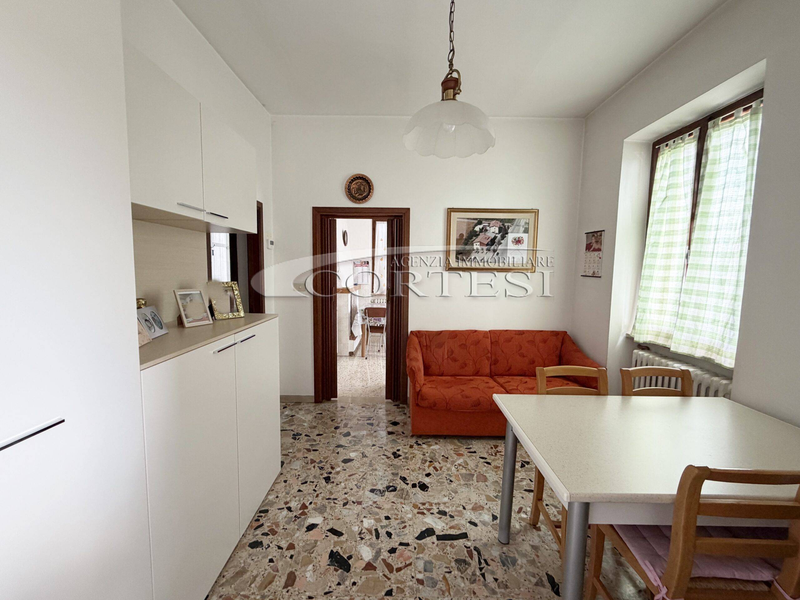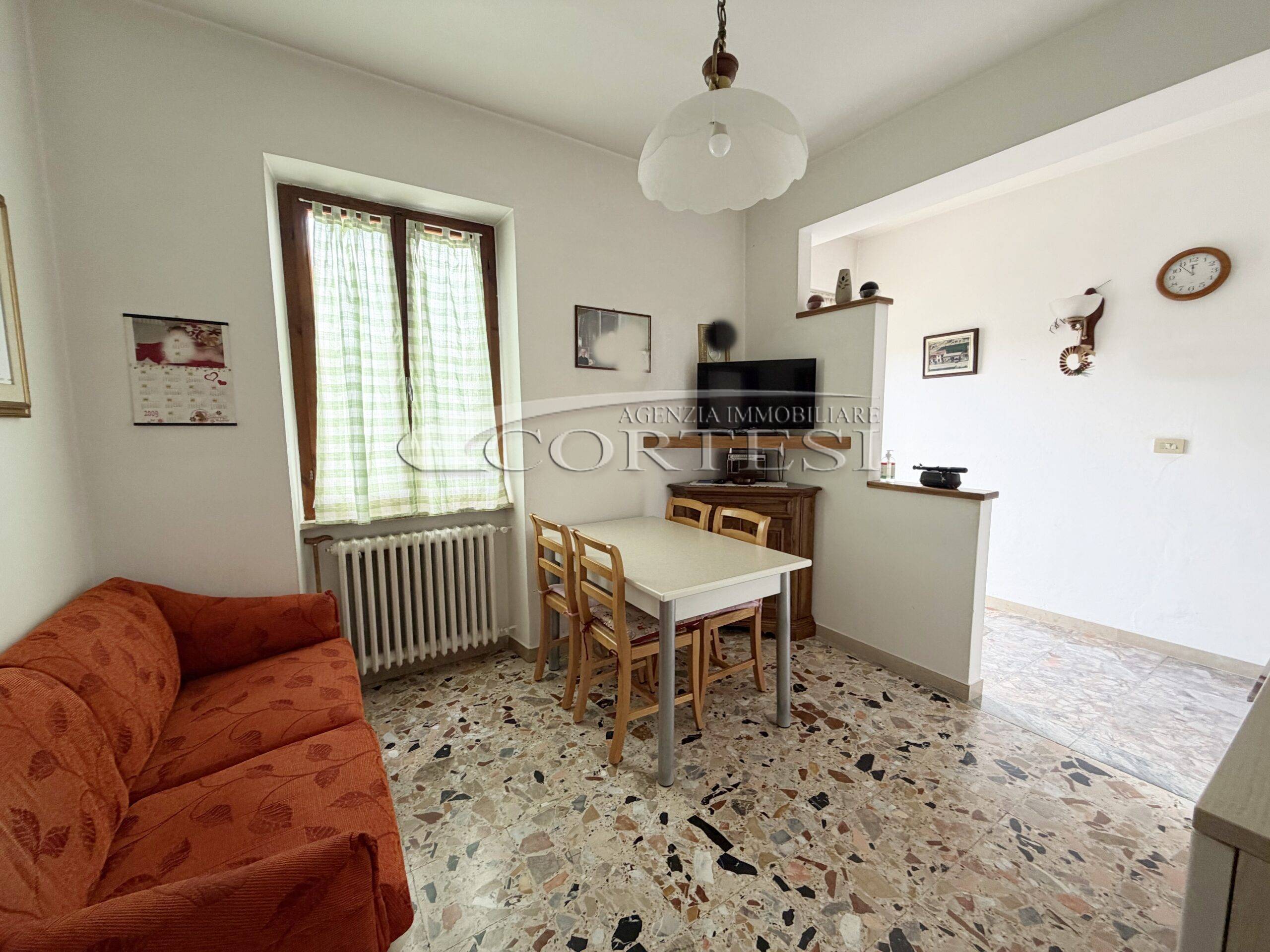 Appartamento situato al primo piano di una palazzina recentemente ristrutturata nelle parti esterne, con facciata e tetto rifatti. L’immobile ha ingresso indipendente ed è disposto su un unico livello per una superficie di circa 85 mq, con ambienti ben distribuiti e adatti alla vita quotidiana. L’ingresso conduce a un soggiorno comodo, affiancato da una cucina abitabile con camino, uno spazio pratico e vivibile. La zona notte è composta da due camere matrimoniali e da un bagno ristrutturato. Completa il piano un balcone che offre uno sfogo esterno. Al piano terra sono presenti una cantina o fondo utile come spazio aggiuntivo, mentre all’esterno si trova un ampio giardino privato recintato con annessi e ulteriori locali di servizio. È incluso anche un posto auto riservato. L’immobile è dotato di pannelli solari, una soluzione che contribuisce a ridurre i consumi nella gestione quotidiana.