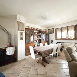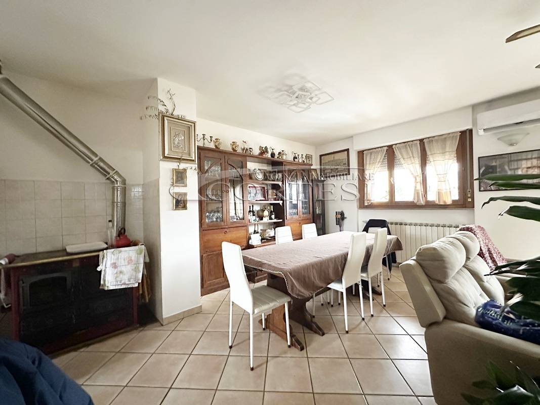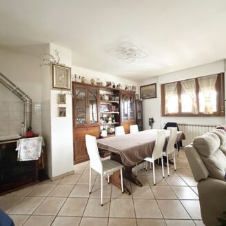 L’abitazione è composta da ingresso, ampio soggiorno con stufa e camino e accesso al terrazzo, cucina abitabile, quattro camere da letto e due bagni.