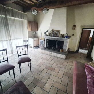 In contesto bifamiliare, appartamento libero su tre lati di circa 80 mq, posto al primo piano. La zona giorno si compone di soggiorno e cucina abitabile, mentre la zona notte offre due camere da letto e un bagno. Al piano terra è presente una spaziosa taverna di circa 40 mq con camino, ambiente accogliente e versatile. L’immobile è caratterizzato da travi in legno a vista.