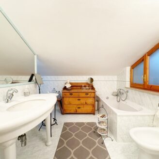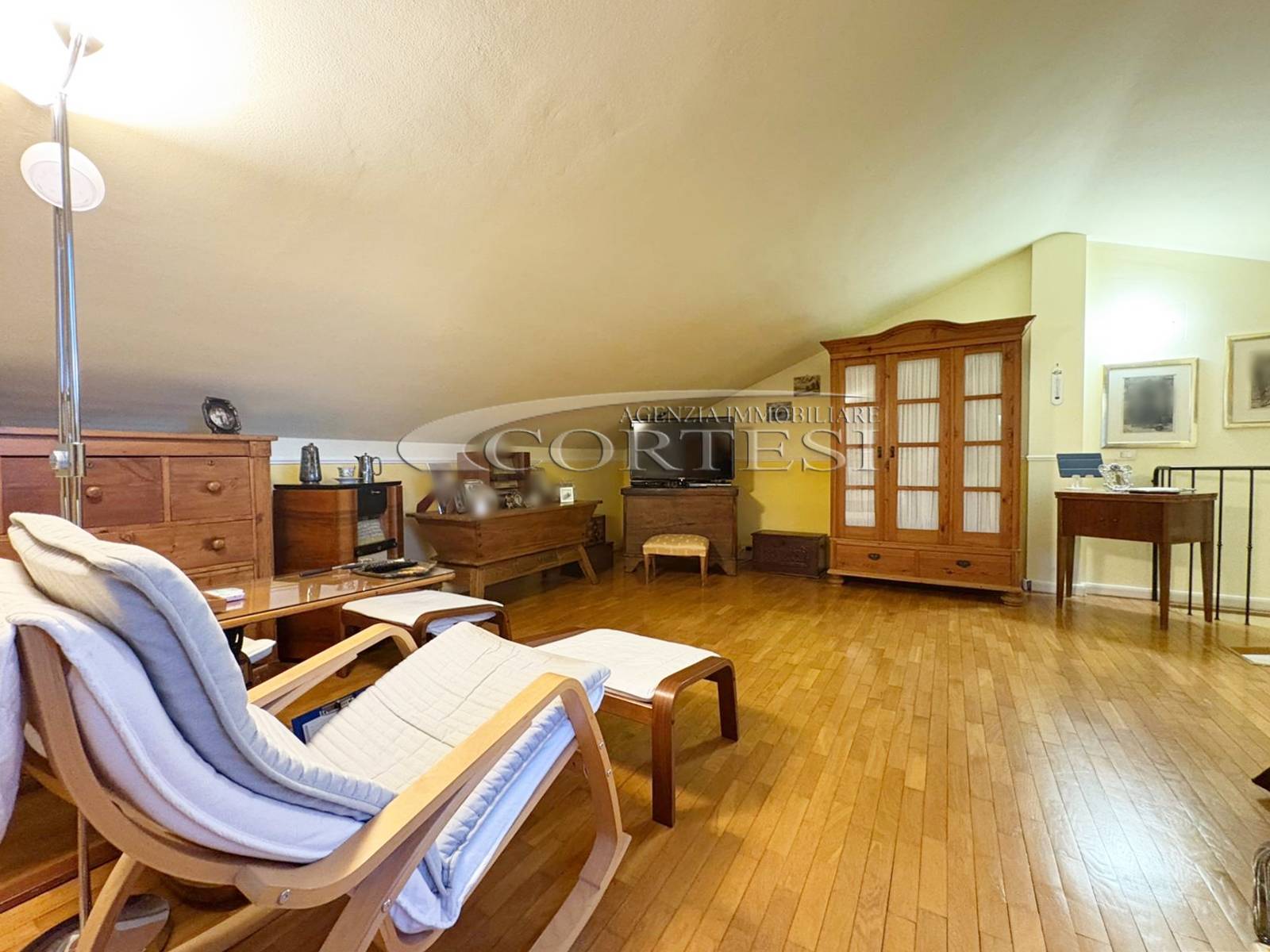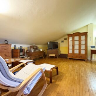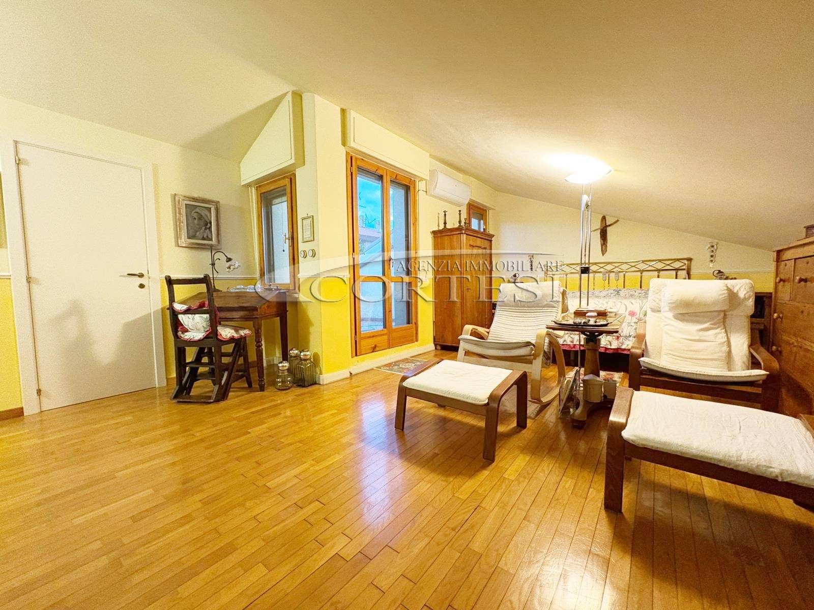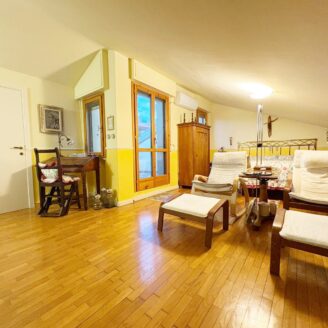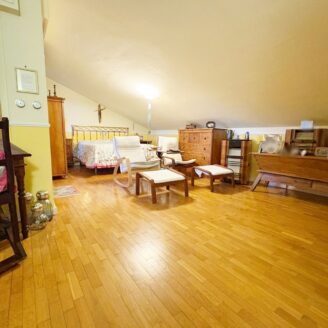 Dal soggiorno si accede, tramite una scala a chiocciola, a una spaziosa mansarda abitabile composta da un grande open-space e un ulteriore bagno.