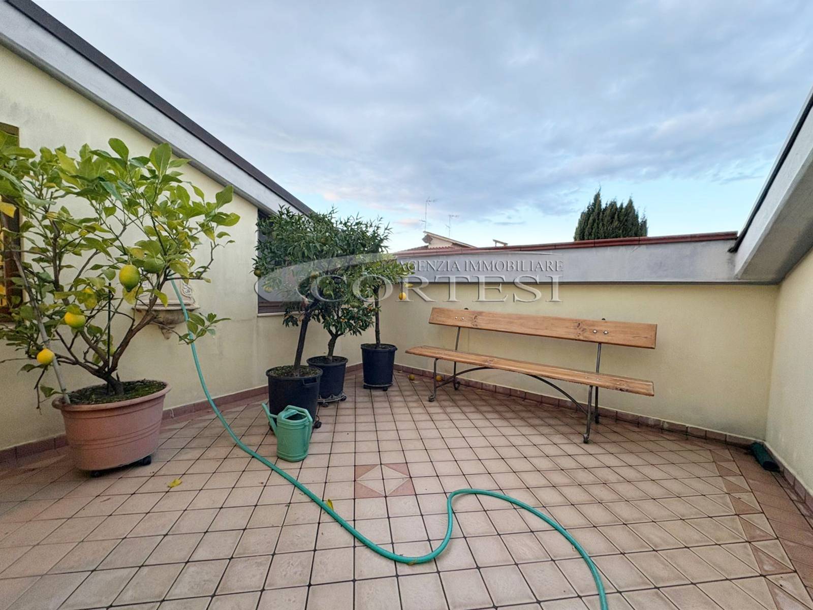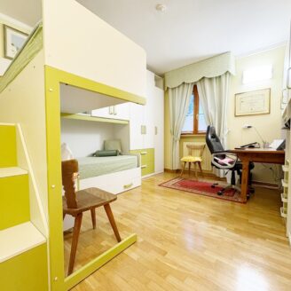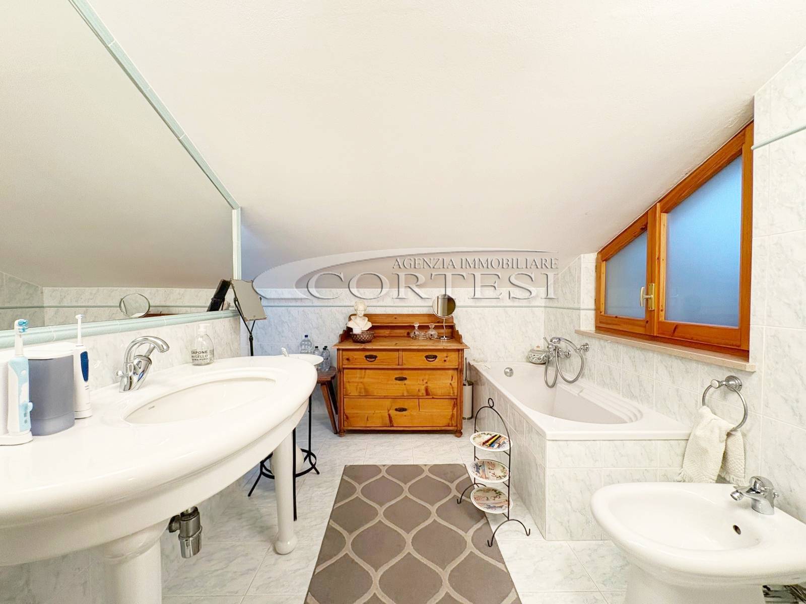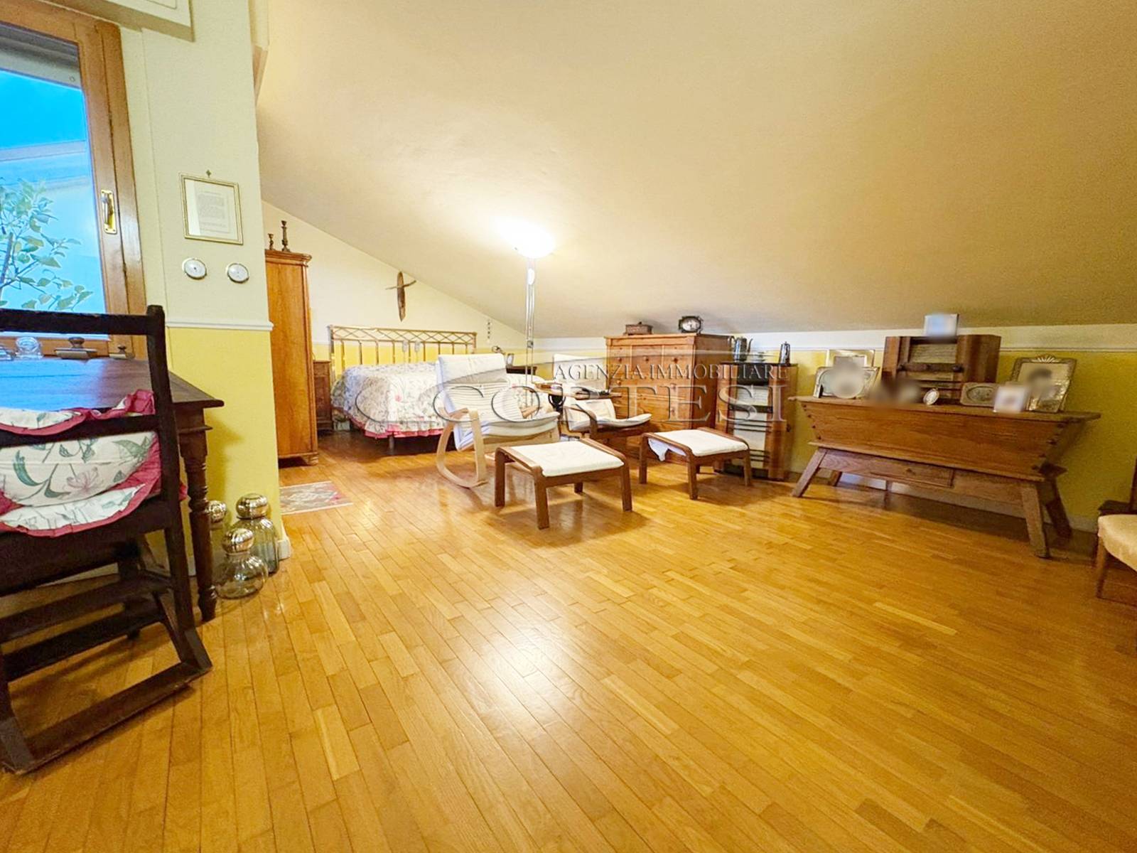 Dal soggiorno si accede, tramite una scala a chiocciola, a una spaziosa mansarda abitabile composta da un grande open-space e un ulteriore bagno.