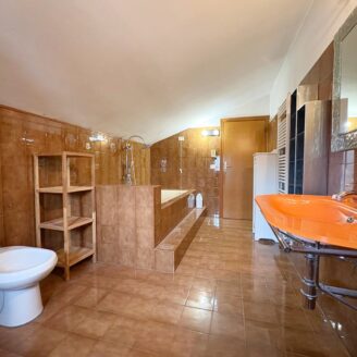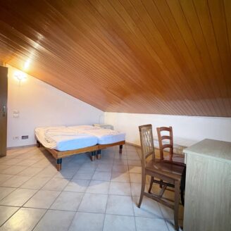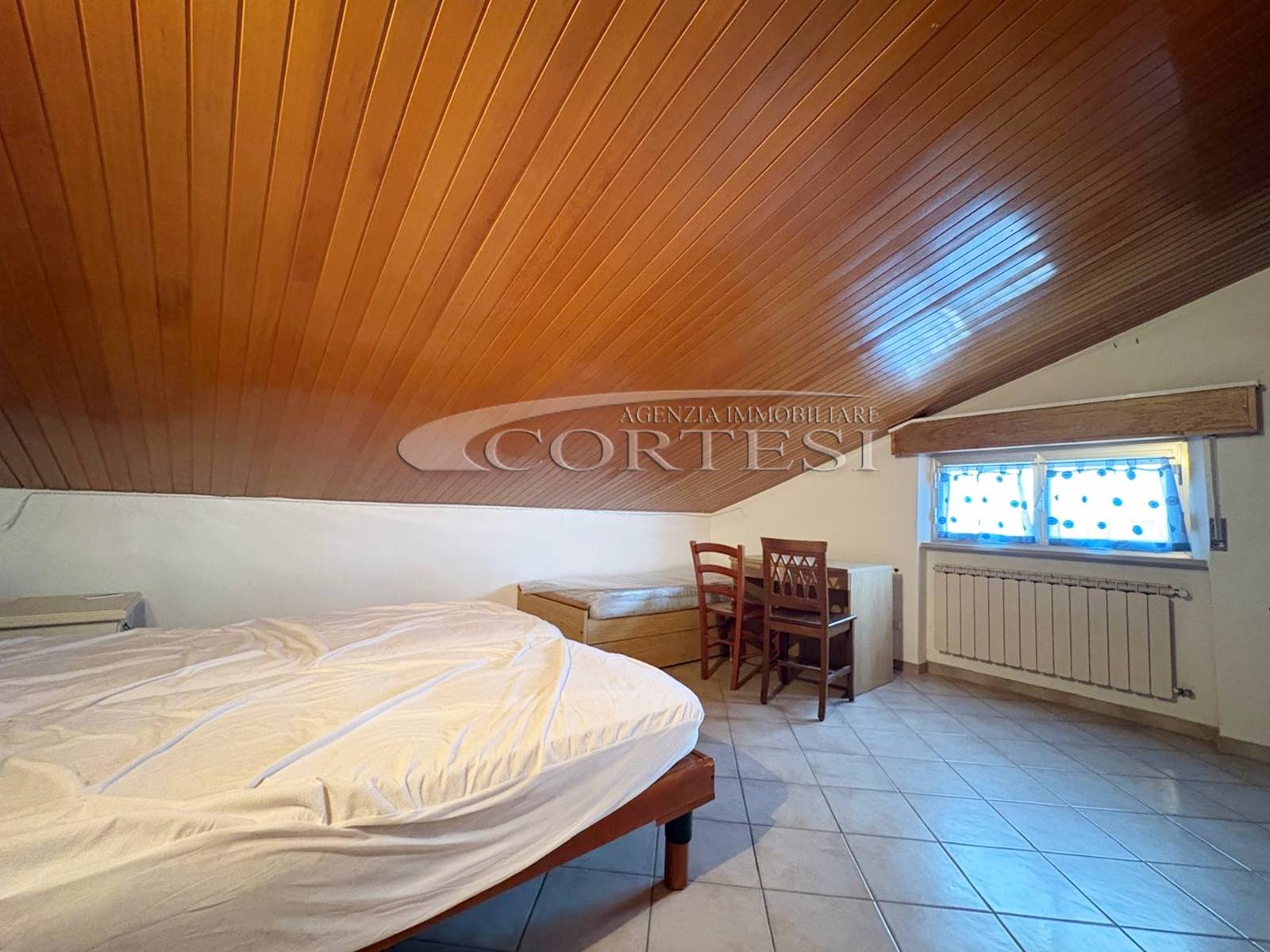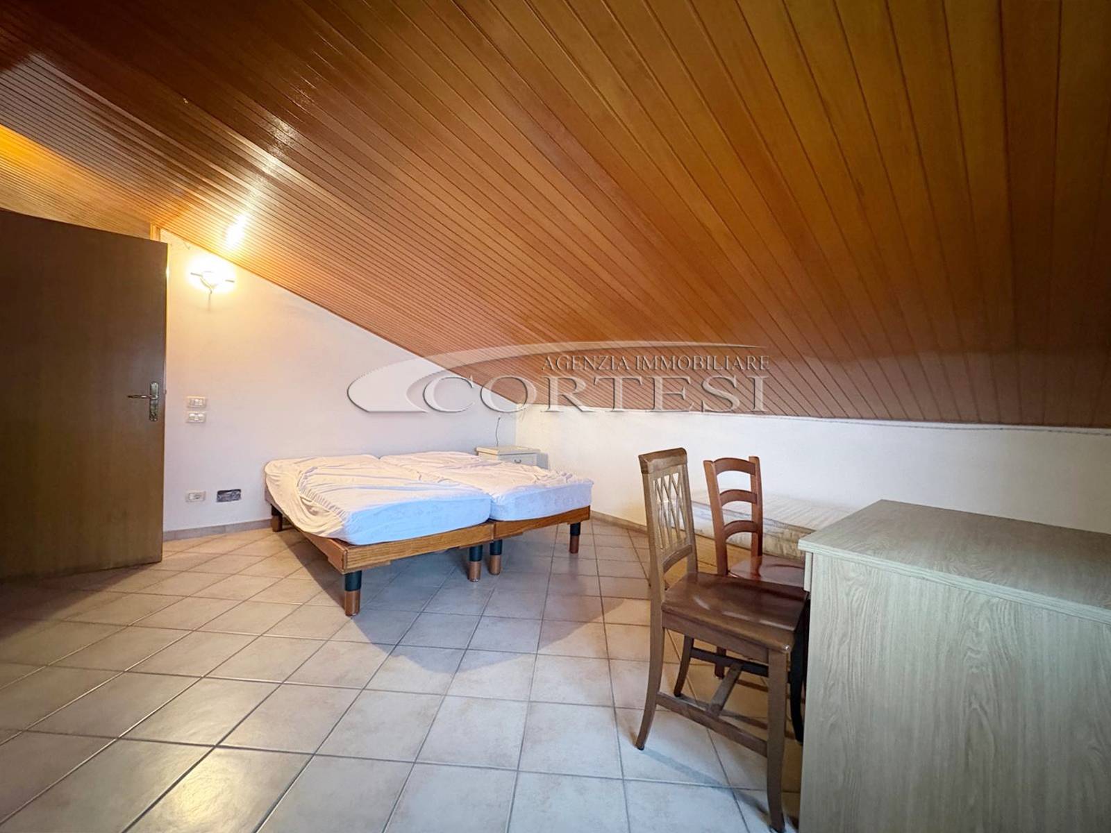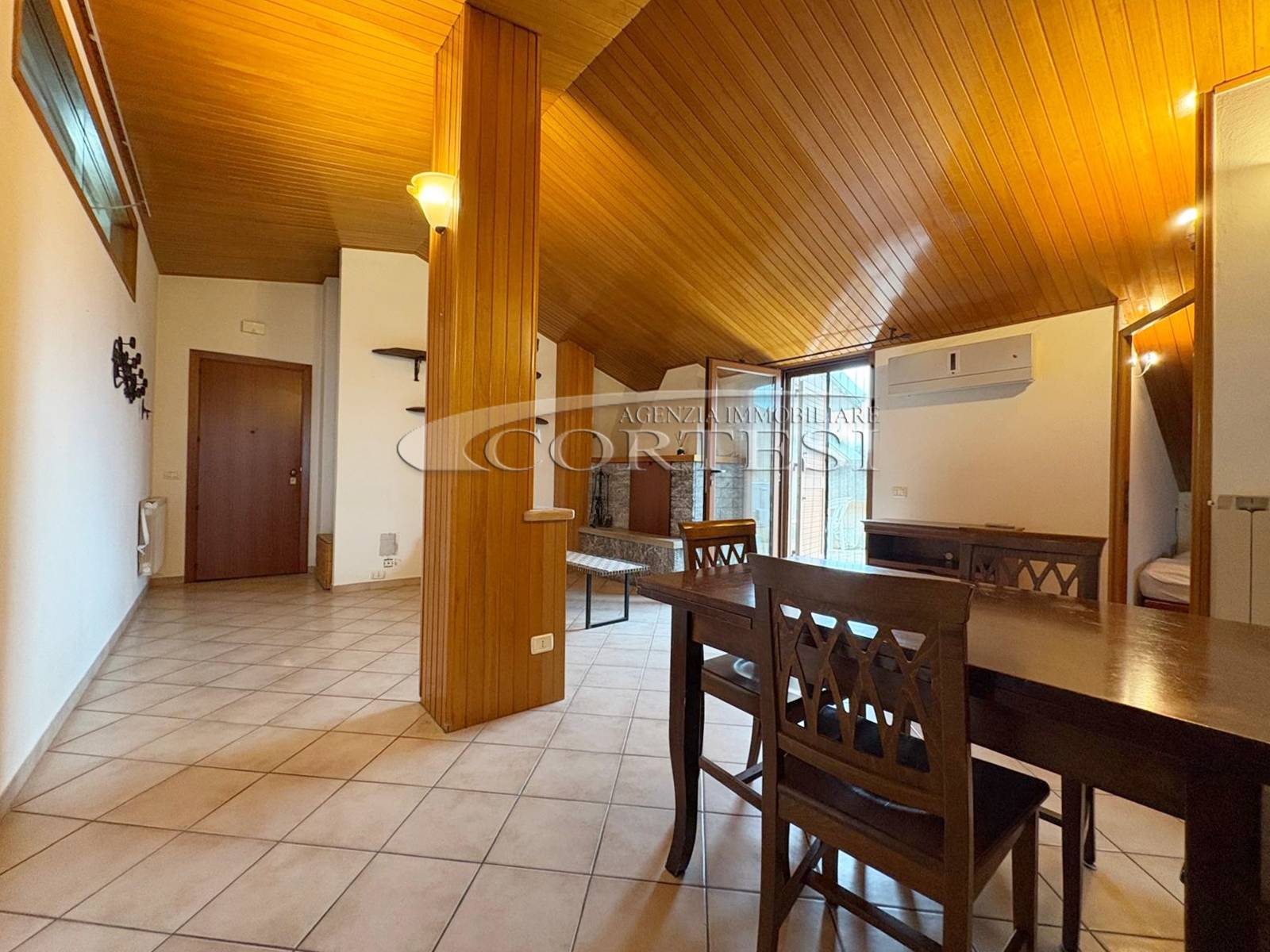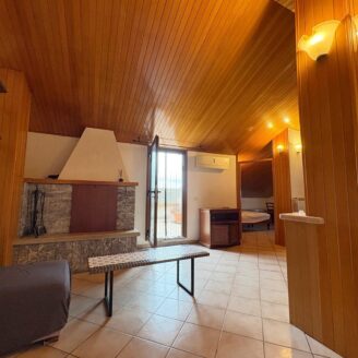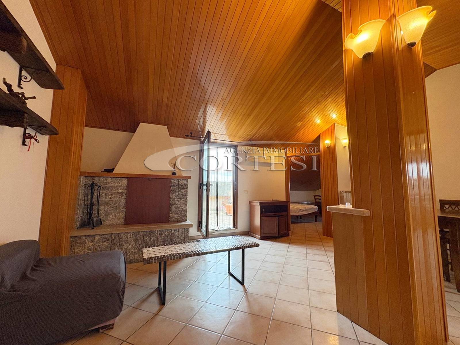 L’ingresso conduce a un ampio soggiorno con camino accogliente, ideale per momenti di relax e convivialità, con cucina abitabile separata, pratica e funzionale.