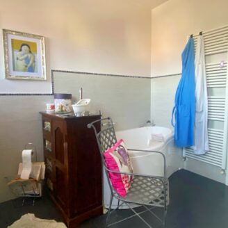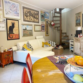 Dal soggiorno si accede, tramite una scala a chiocciola, ad una ampia mansarda abitabile composta da due vani e bagno.