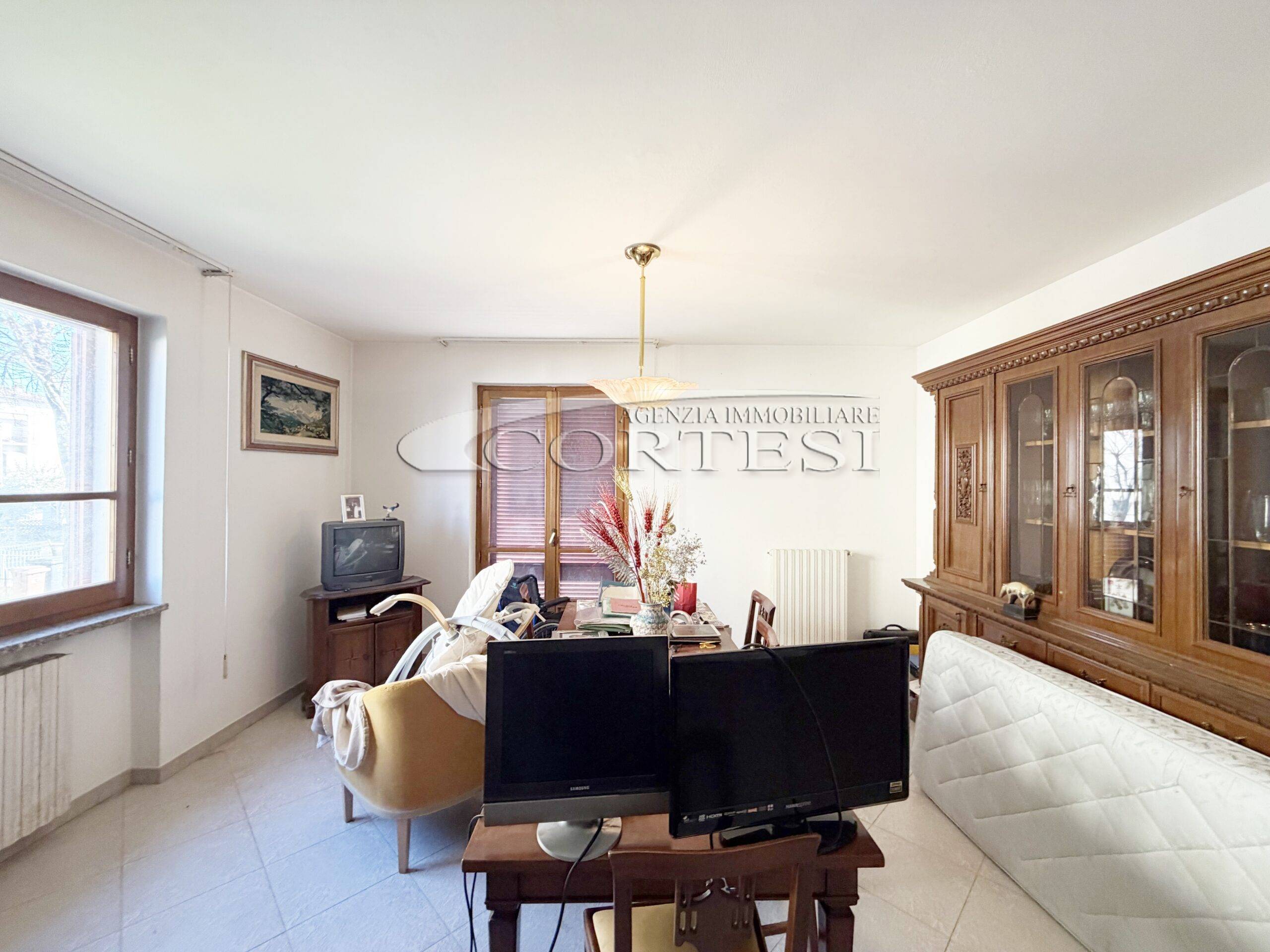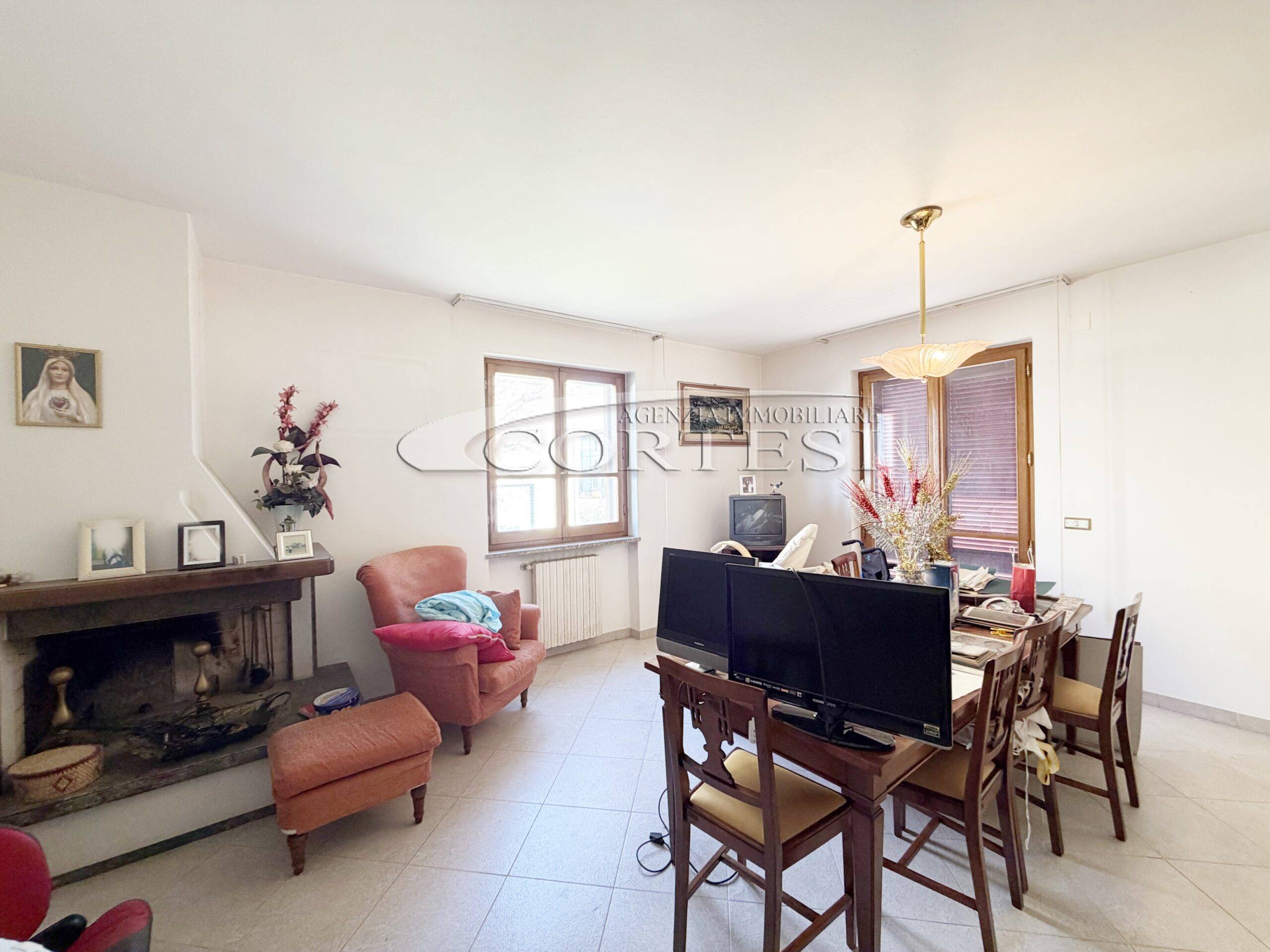 Appartamento posto al piano rialzato con ingresso condiviso con una sola altra unità, della superficie di circa 125 mq. L’immobile offre ambienti ampi e ben distribuiti, con ingresso, soggiorno spazioso dotato di camino e accesso a un terrazzo abitabile, ideale per vivere anche gli spazi esterni. È presente una sala da pranzo anch’essa con camino, collegato al sistema di riscaldamento dell’acqua, oltre a una cucina separata funzionale. La zona notte comprende tre camere matrimoniali e due bagni, adatti a soddisfare le esigenze di una famiglia. Completano la proprietà un garage esclusivo con due posti auto, un fondo, una lavanderia e un giardino privato di circa 100 mq. Soluzione interessante per chi cerca comodità, spazi generosi e ambienti accessori utili nella vita quotidiana.