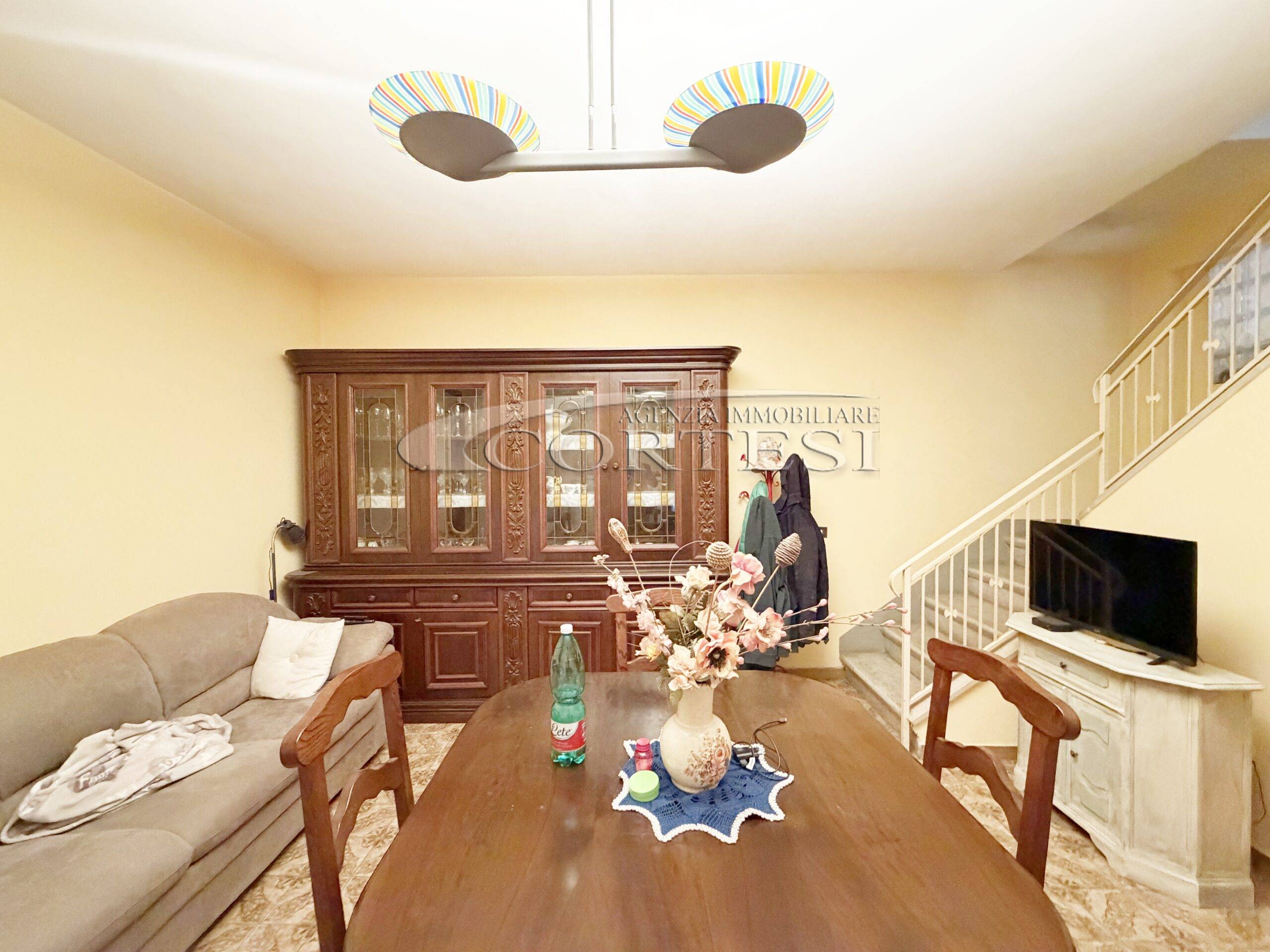 Appartamento disposto su due livelli per una superficie di circa 110 mq, con ingresso indipendente al piano primo che garantisce privacy e autonomia. L’immobile è composto da un soggiorno accogliente e una cucina separata, con spazi ben organizzati e vivibili. La zona notte offre tre camere matrimoniali, ideali per famiglie o per chi necessita di ambienti ampi, e due bagni che rendono la casa comoda nella vita quotidiana. È presente un terrazzo abitabile, perfetto per momenti all’aperto o per pranzi e cene nella bella stagione. Completa la proprietà un fondo privato al piano terra, utile come spazio di deposito o per diverse esigenze. Soluzione adatta a chi cerca una casa funzionale, con ambienti ben distribuiti e ingresso indipendente.