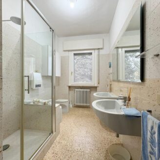 La zona notte comprende una camera matrimoniale di generose dimensioni, una seconda camera con bagno e un ulteriore bagno principale, entrambi rifiniti con cura.