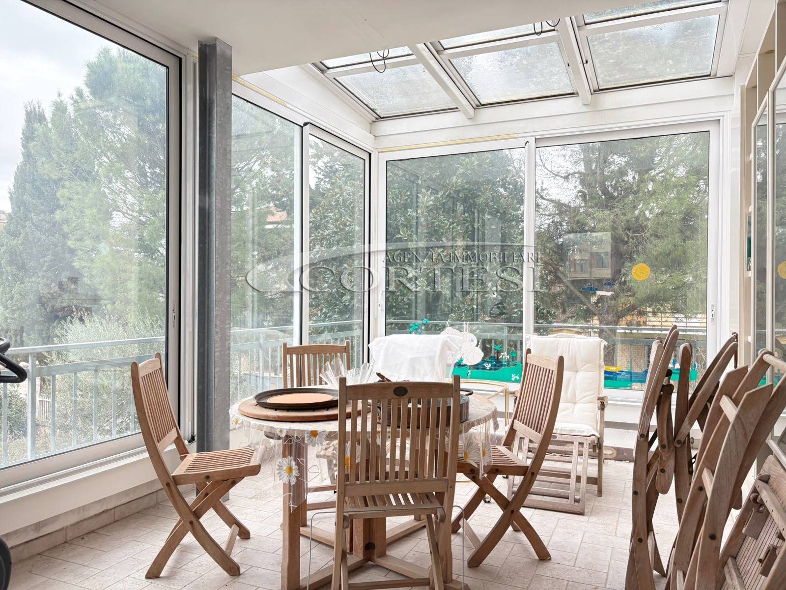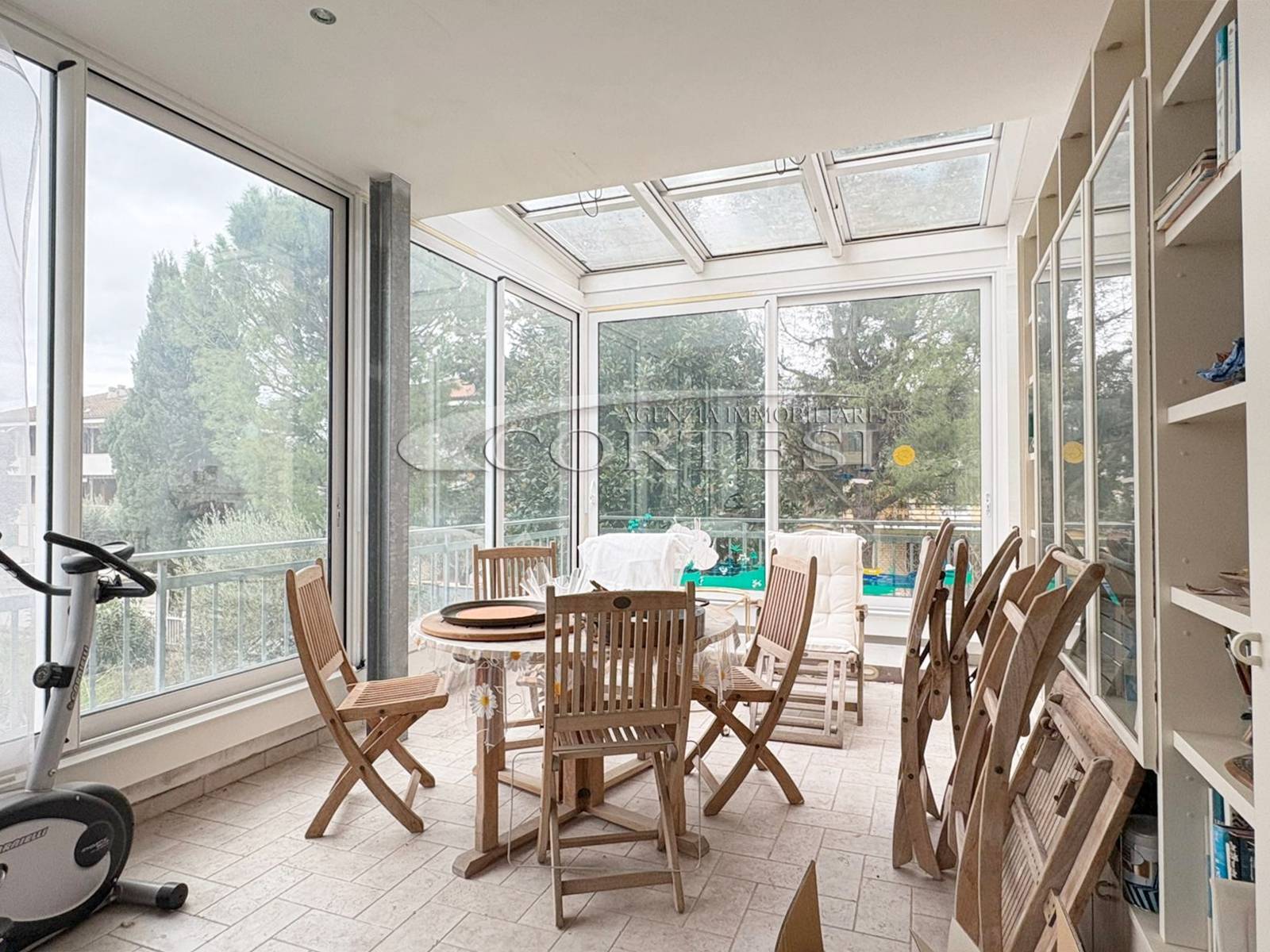 Fiore all’occhiello della proprietà è la splendida veranda privata, ampia e accogliente, dotata di tetto apribile: uno spazio versatile da vivere in ogni stagione, ideale come zona relax, area pranzo o angolo verde personale.