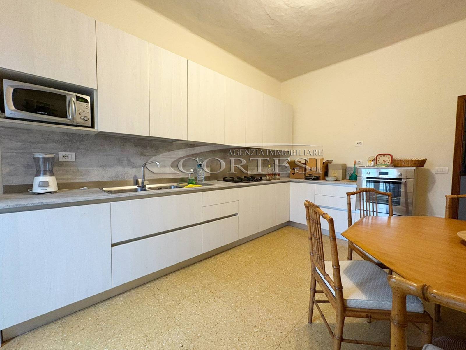 L’ingresso conduce alla spaziosa zona giorno, ideale per accogliere famiglia e ospiti, affiancata da una cucina abitabile separata, perfetta per chi ama vivere la casa in modo funzionale e conviviale.