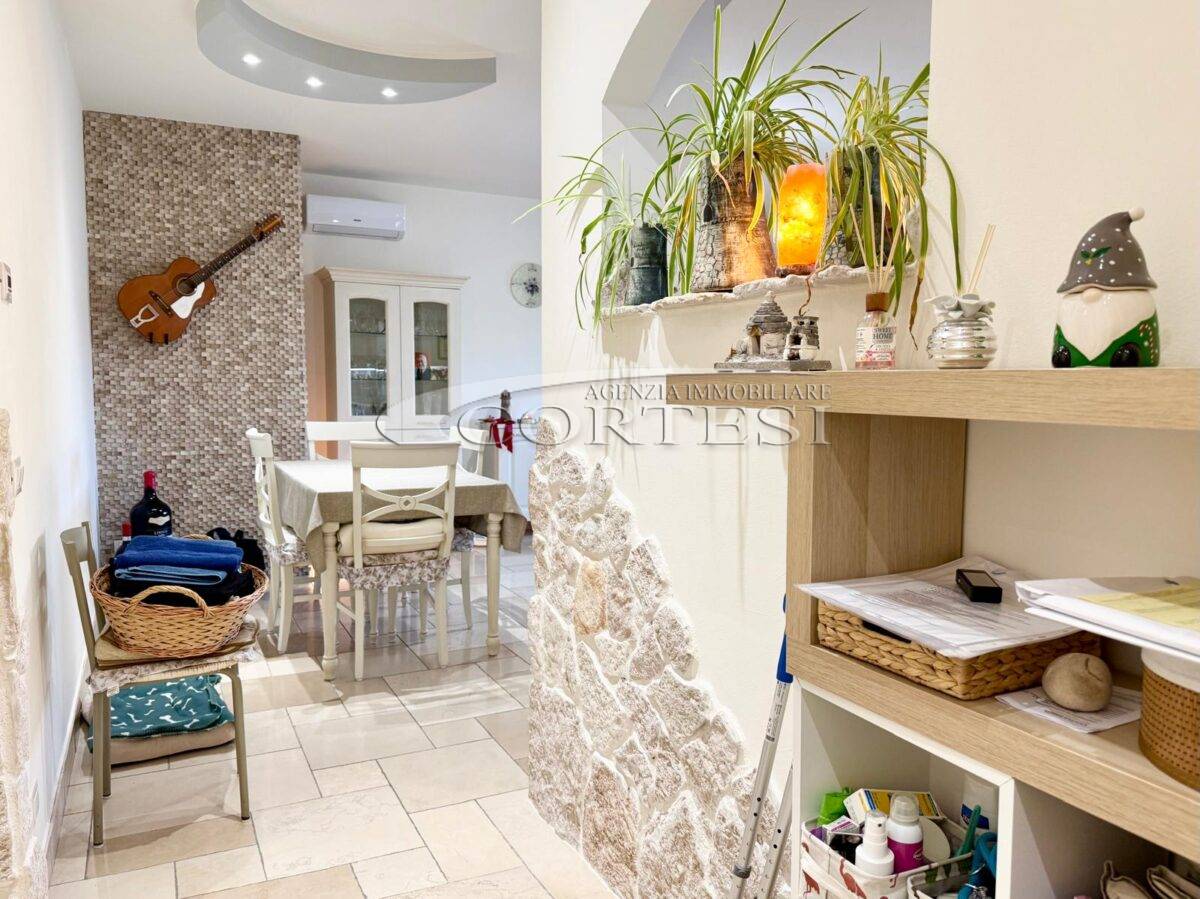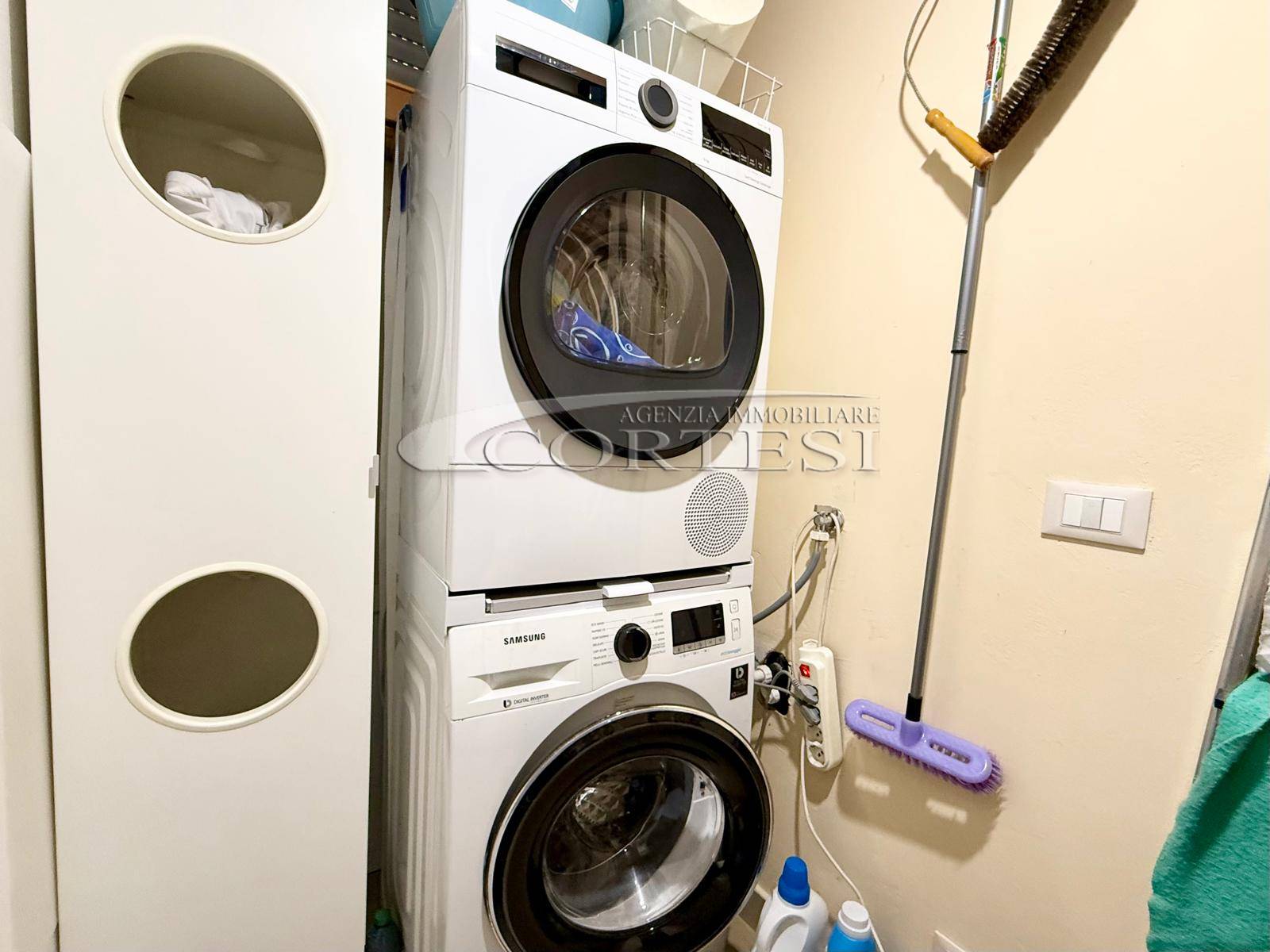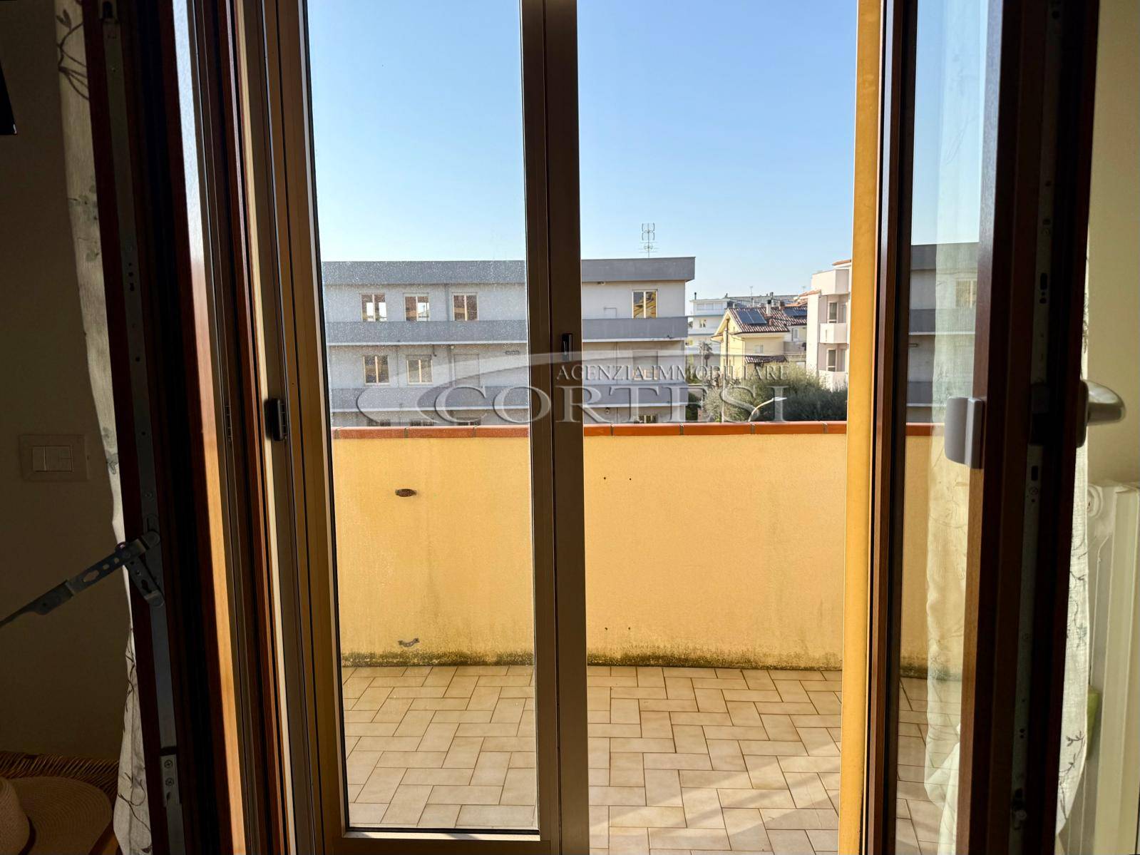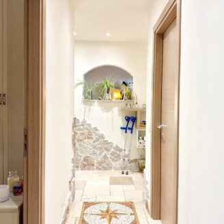 L’immobile si apre su un luminoso soggiorno con cucina a vista, ambiente moderno e accogliente, con accesso diretto a un ampio terrazzo abitabile, ideale per pranzi e momenti di relax all’aperto. A servizio della zona giorno è presente un comodo vano lavanderia.