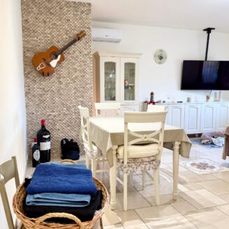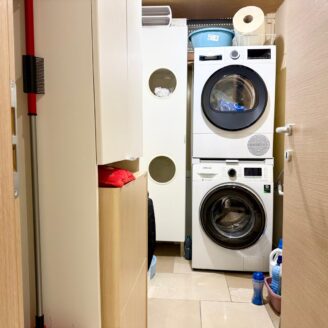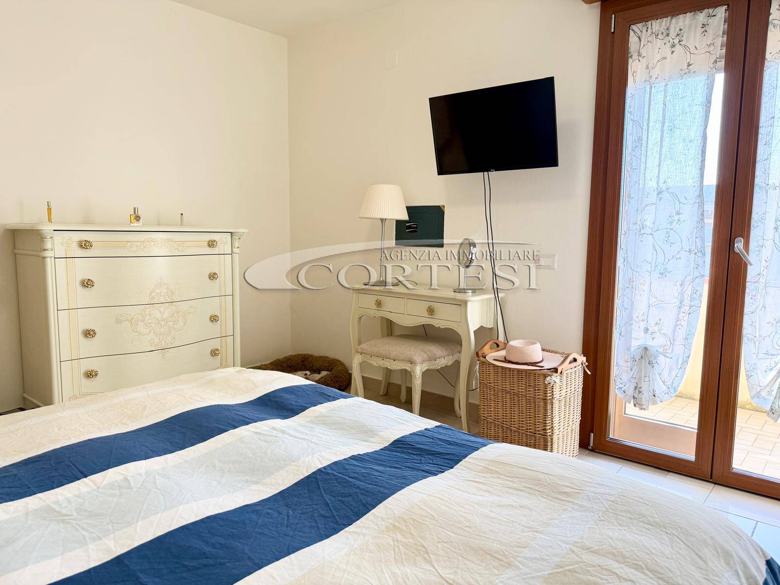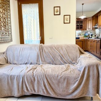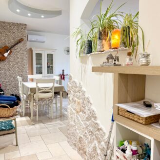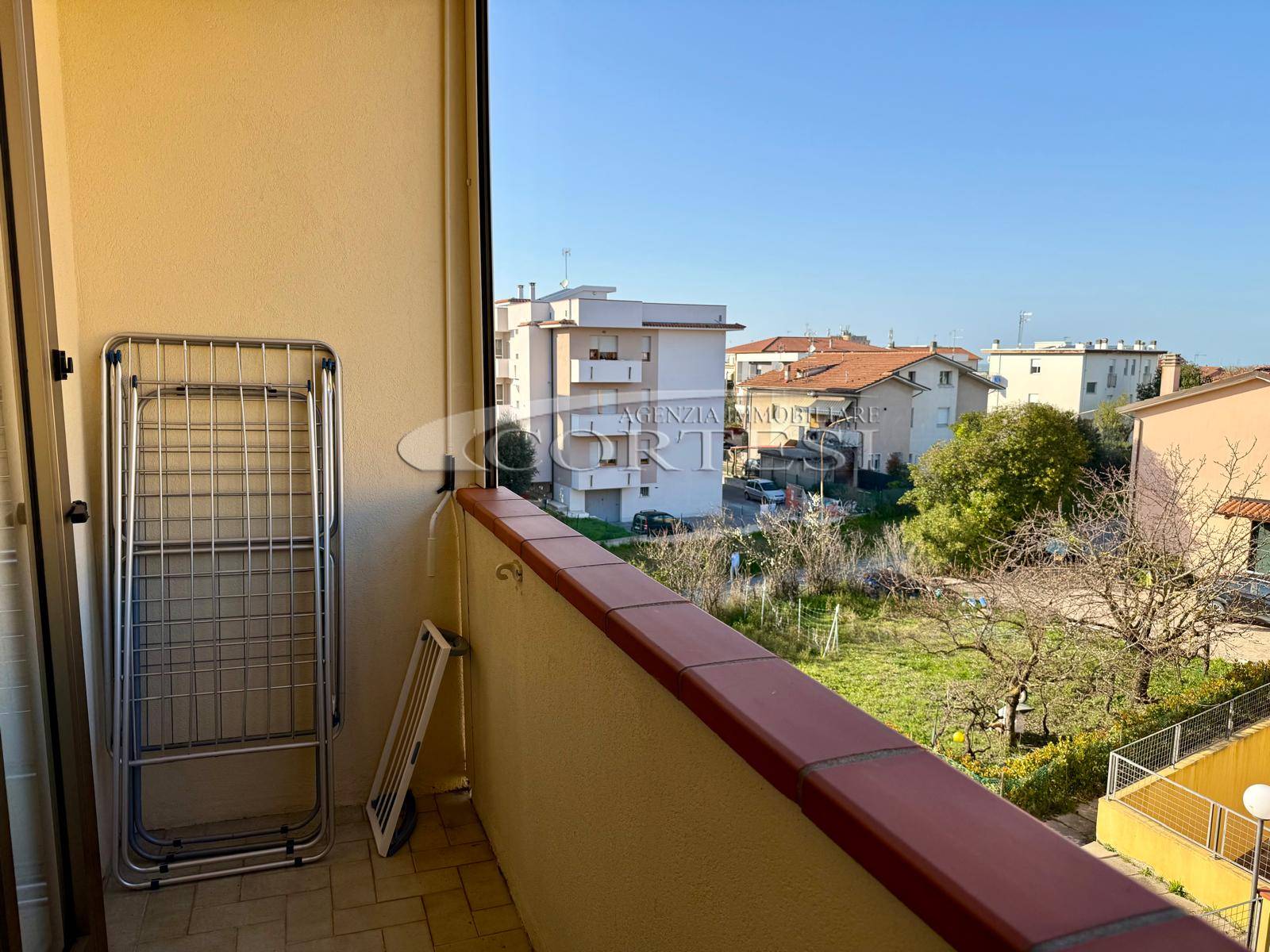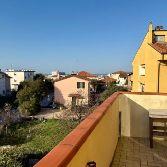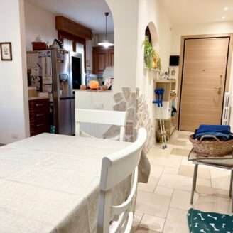 L’immobile si apre su un luminoso soggiorno con cucina a vista, ambiente moderno e accogliente, con accesso diretto a un ampio terrazzo abitabile, ideale per pranzi e momenti di relax all’aperto. A servizio della zona giorno è presente un comodo vano lavanderia.