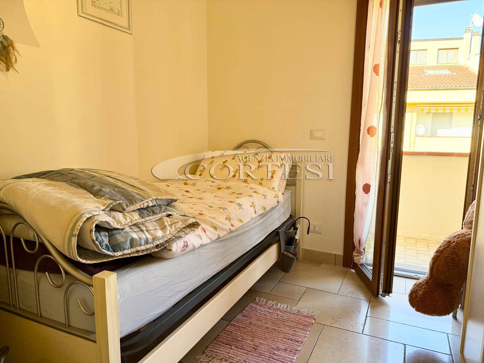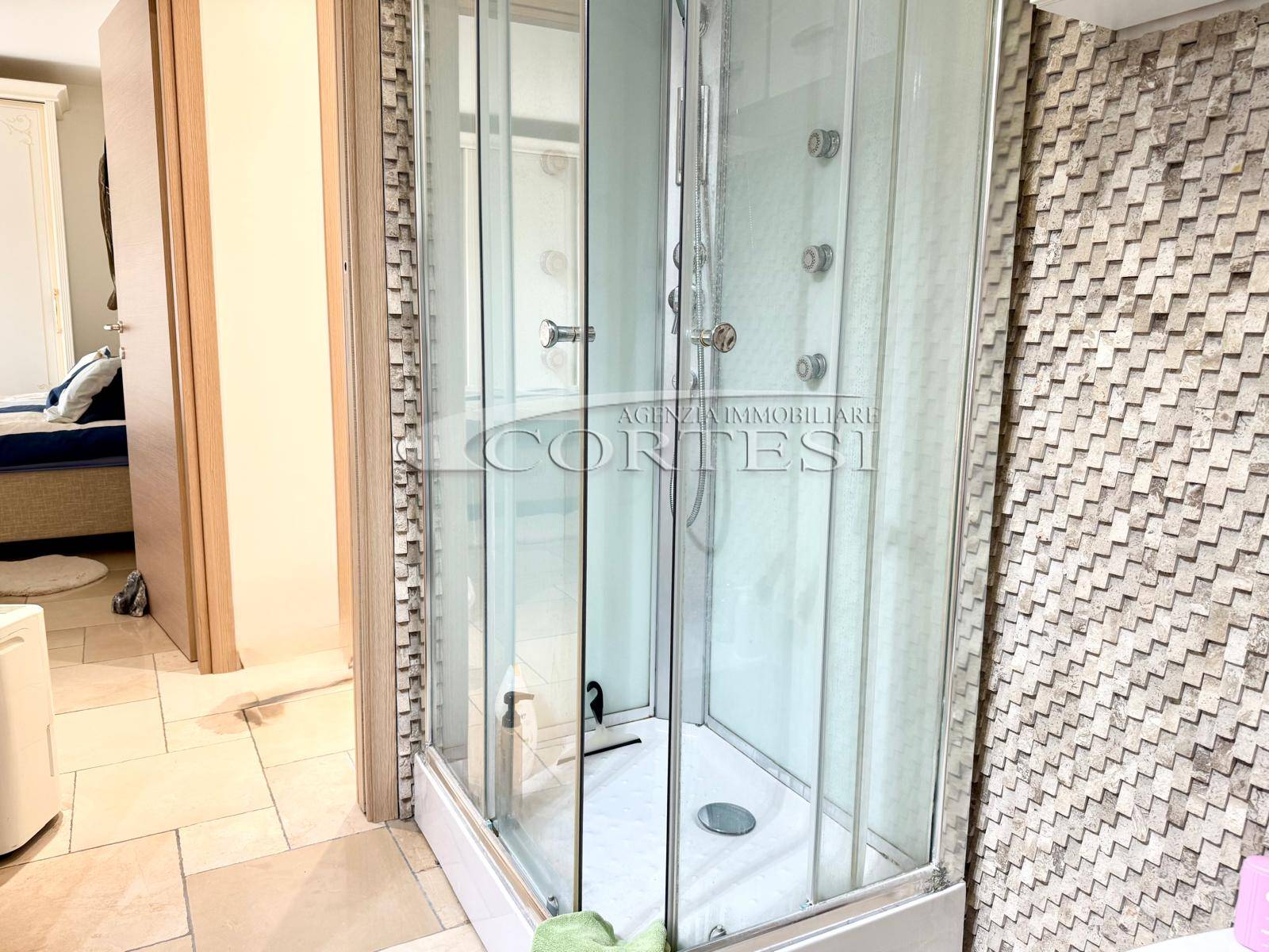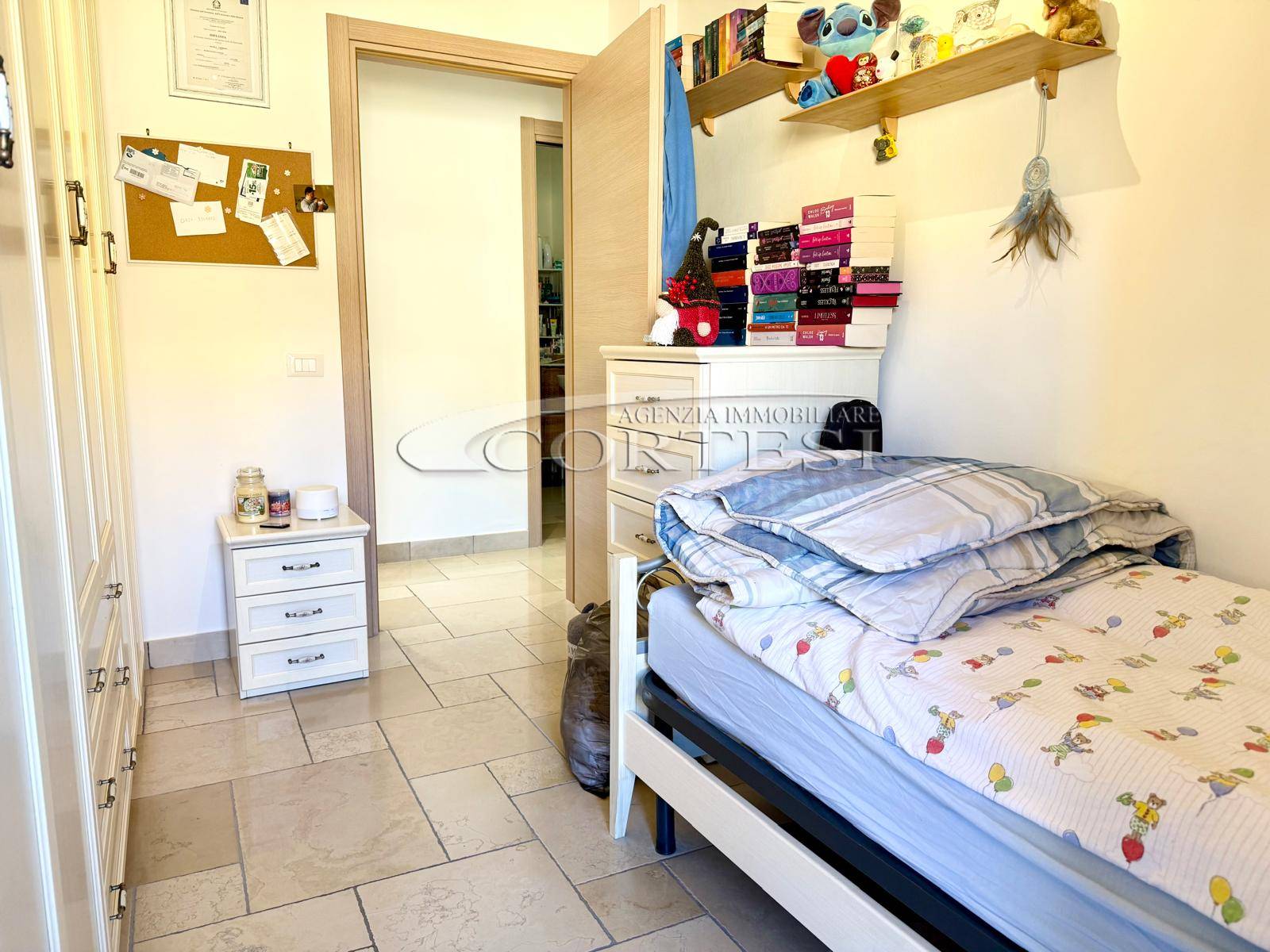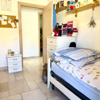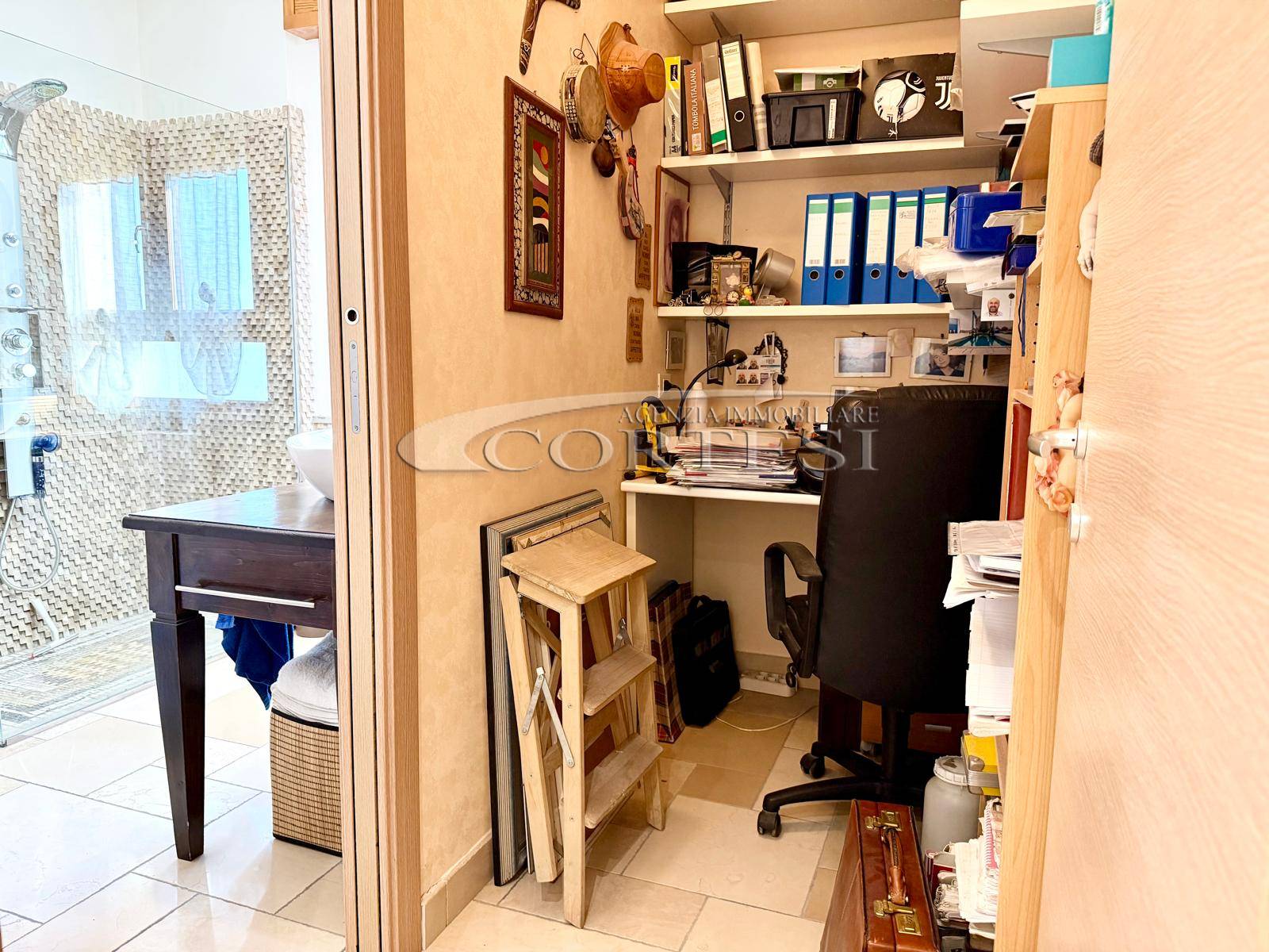 La zona notte è ben distribuita e comprende una cameretta con terrazzo, uno studio, una spaziosa camera matrimoniale con accesso a terrazzo abitabile, un bagno finestrato con box doccia e un secondo bagno finestrato con doccia walk-in.