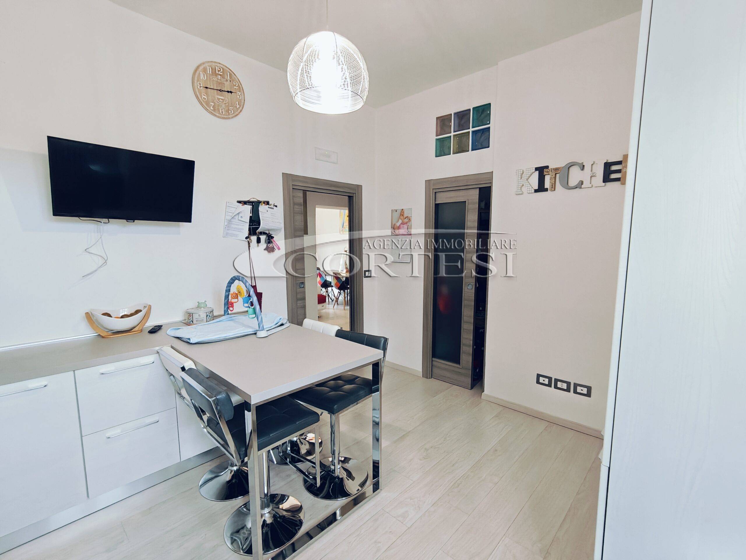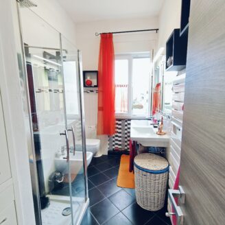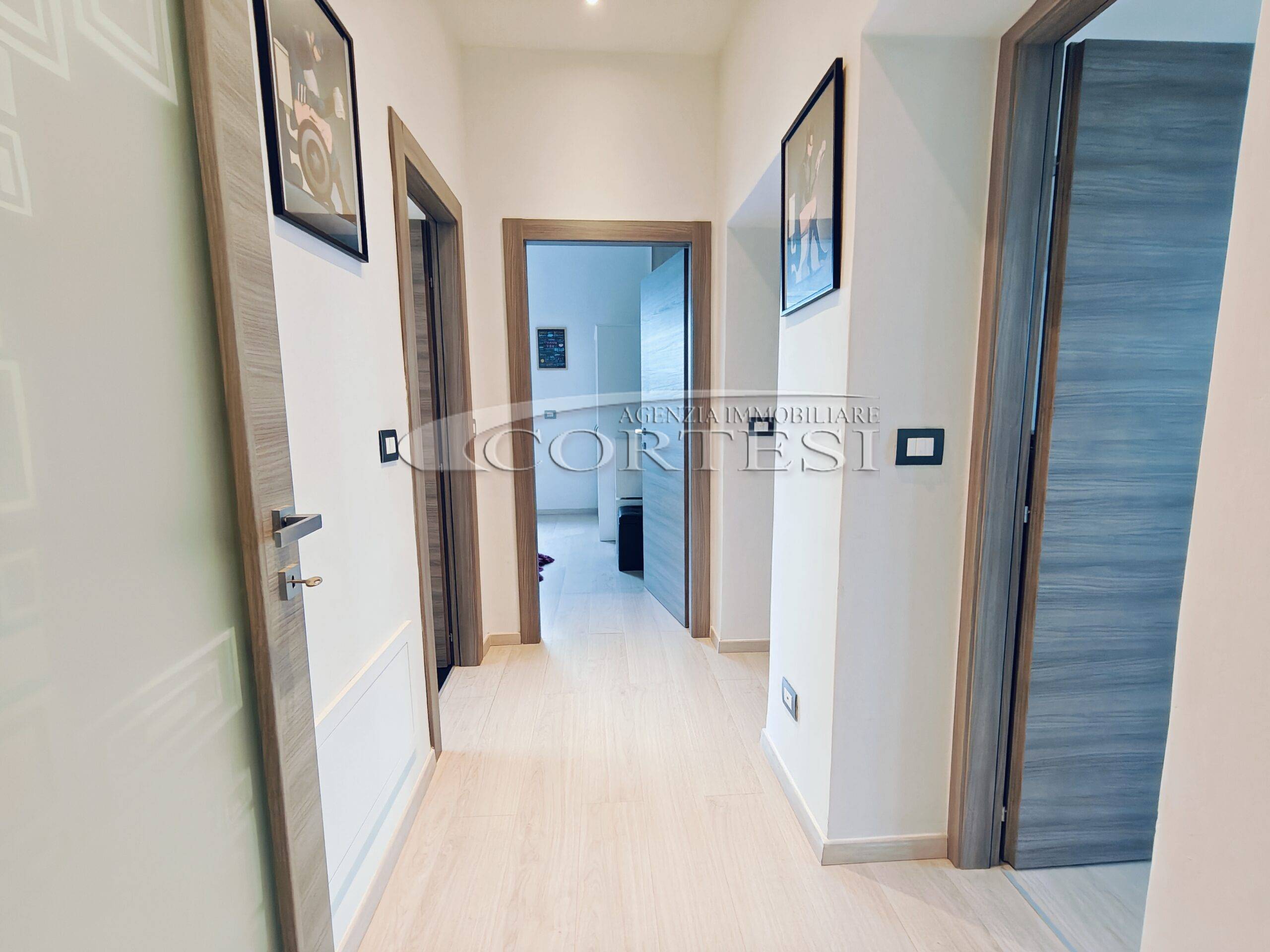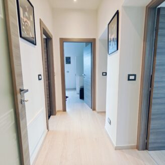 Appartamento in zona Sacro Cuore situato al terzo piano di un piccolo condominio, della superficie di circa 115 mq, completamente ristrutturato e rifinito con materiali moderni. L’immobile dispone di infissi nuovi con avvolgibili elettrici, tende da sole sulle terrazze, caldaia nuova e impianti elettrici e termici di ultima generazione. L’abitazione si sviluppa interamente su un unico livello: l’ingresso conduce alla zona giorno composta da un luminoso soggiorno con accesso al balcone e da un’ampia cucina abitabile, moderna e funzionale, dotata di penisola. La zona notte comprende due camere matrimoniali, di cui una con bagno privato e l’altra con accesso diretto al balcone, oltre a uno studio/cameretta. È presente un secondo bagno finestrato con doccia. Completano la proprietà un box auto singolo, un posto auto scoperto condominiale e un fondo di circa 30 mq.