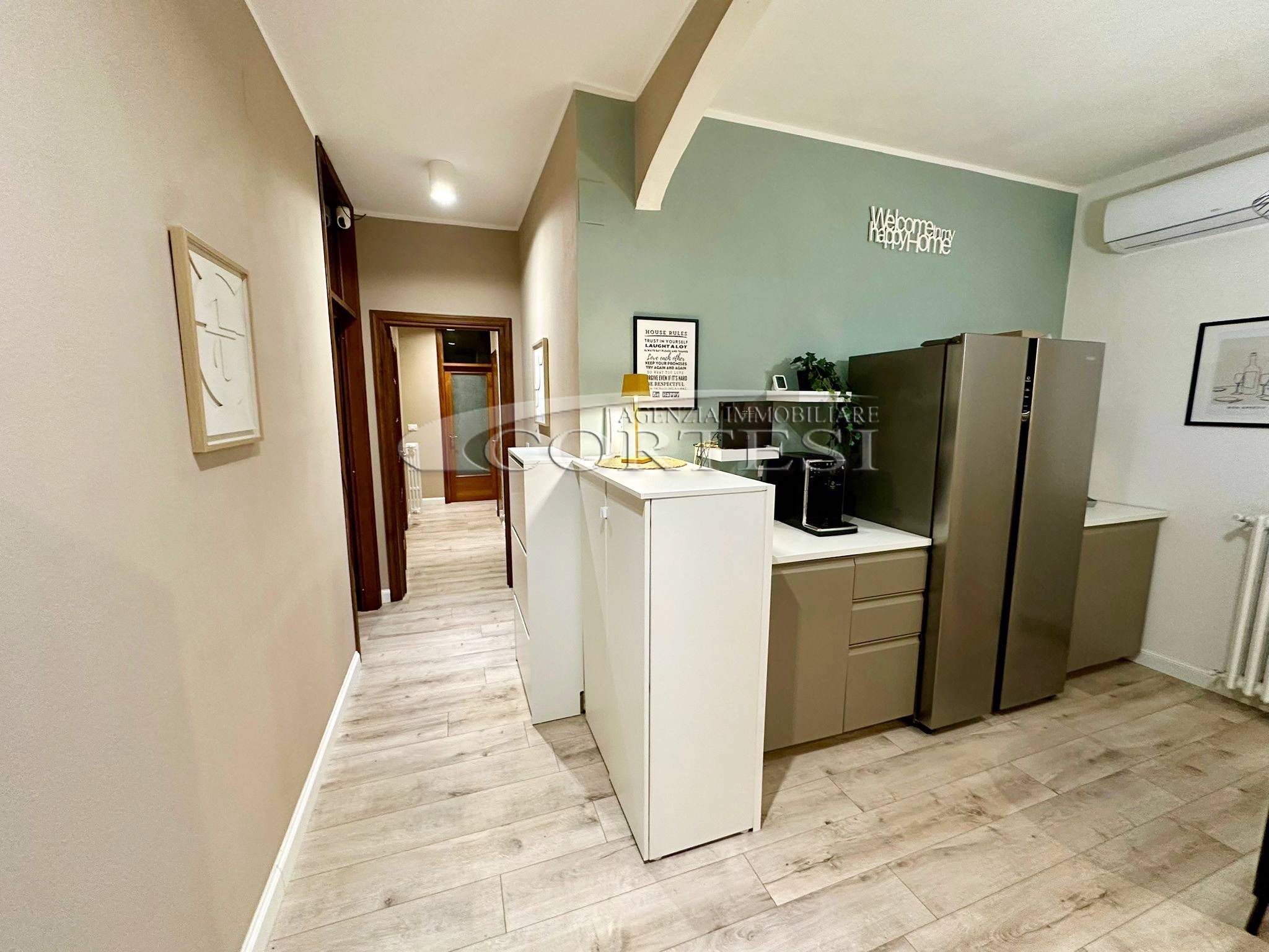 Appartamento di 120 mq ristrutturato, situato al terzo piano di un condominio di poche unità. La superficie si sviluppa su un unico livello.