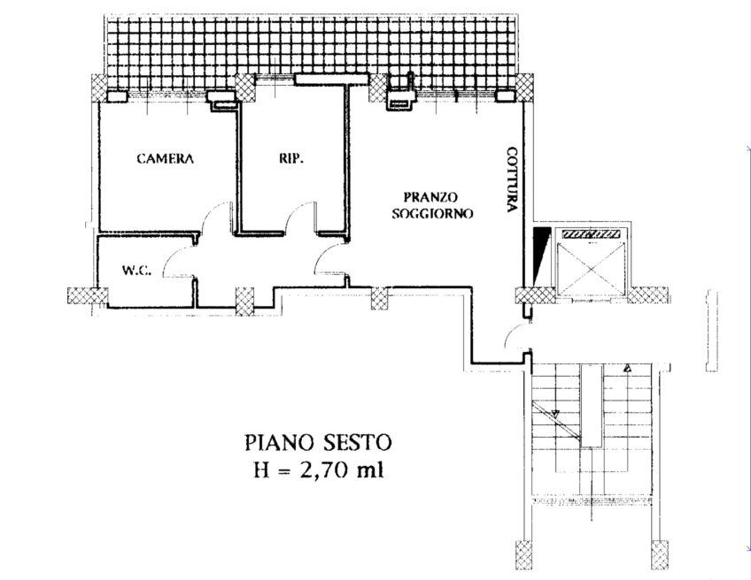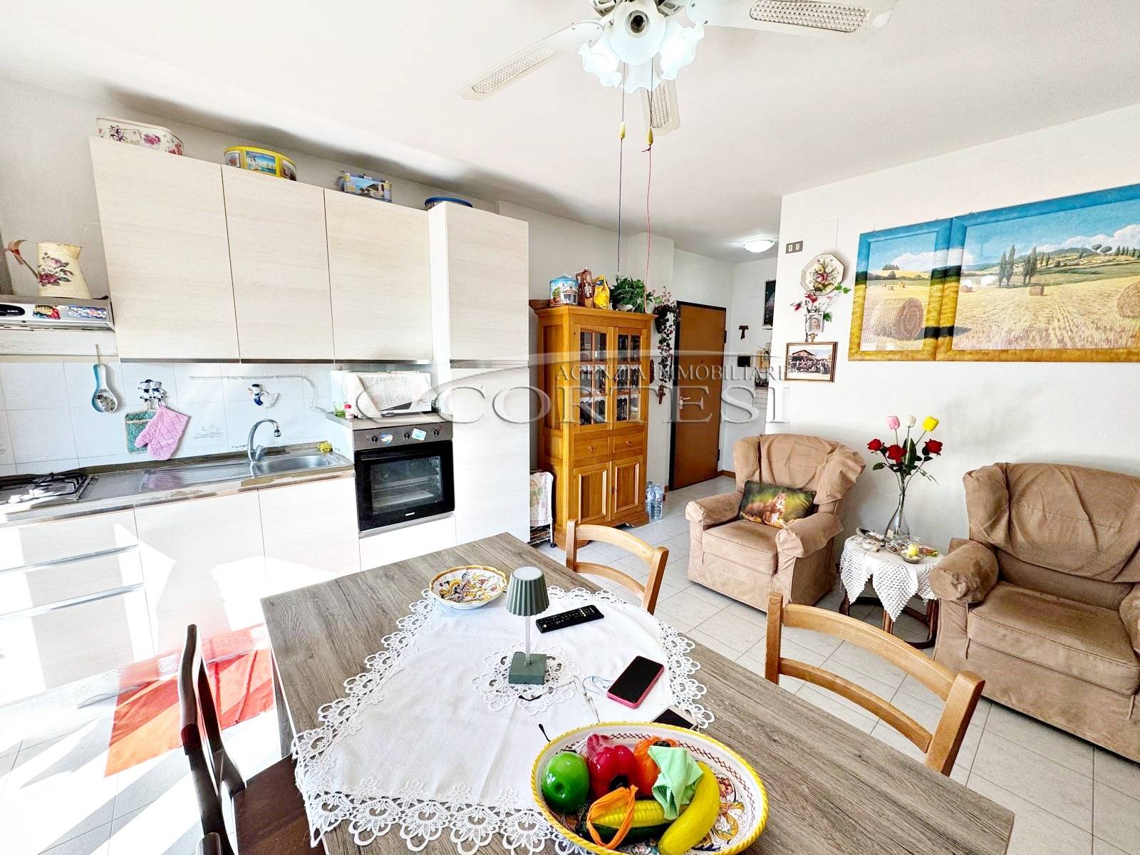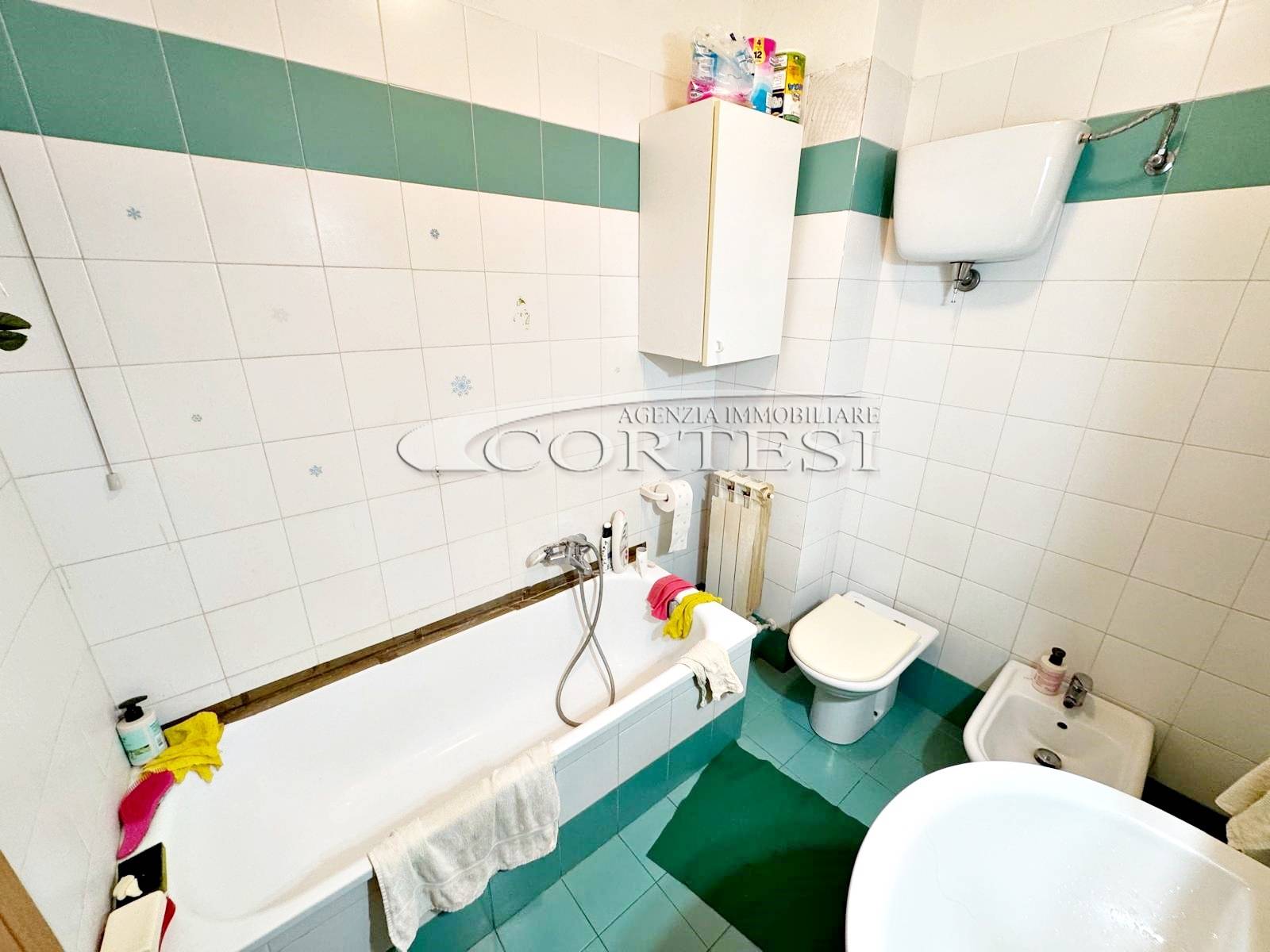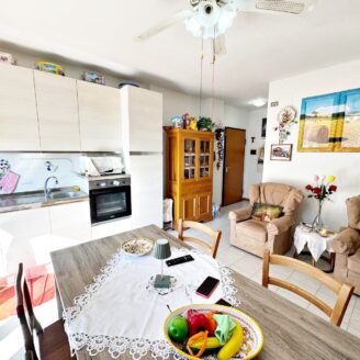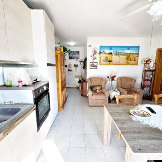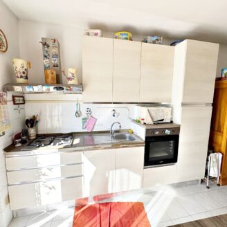 L’immobile è composto da ampio un soggiorno con angolo cottura, camera matrimoniale con pavimento in parquet, cameretta, bagno con vasca e ripostigli attrezzati con armadi a muro.