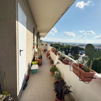 Sia il soggiorno che le camere hanno accesso ad un balcone vivibile di circa 12 mq, che dona luminosità all’ambiente.