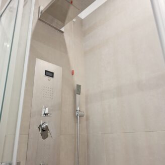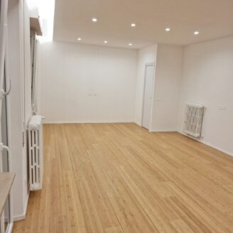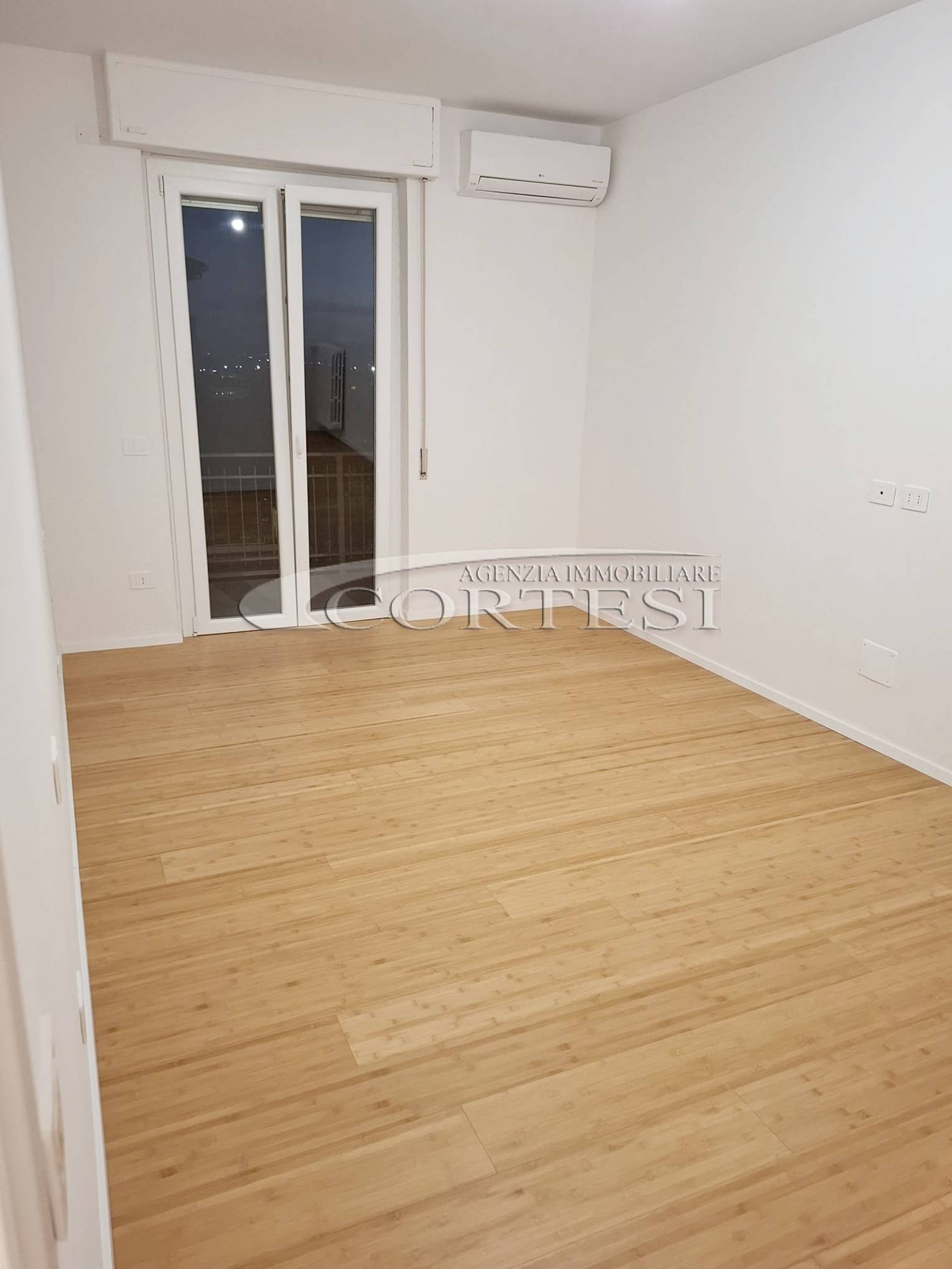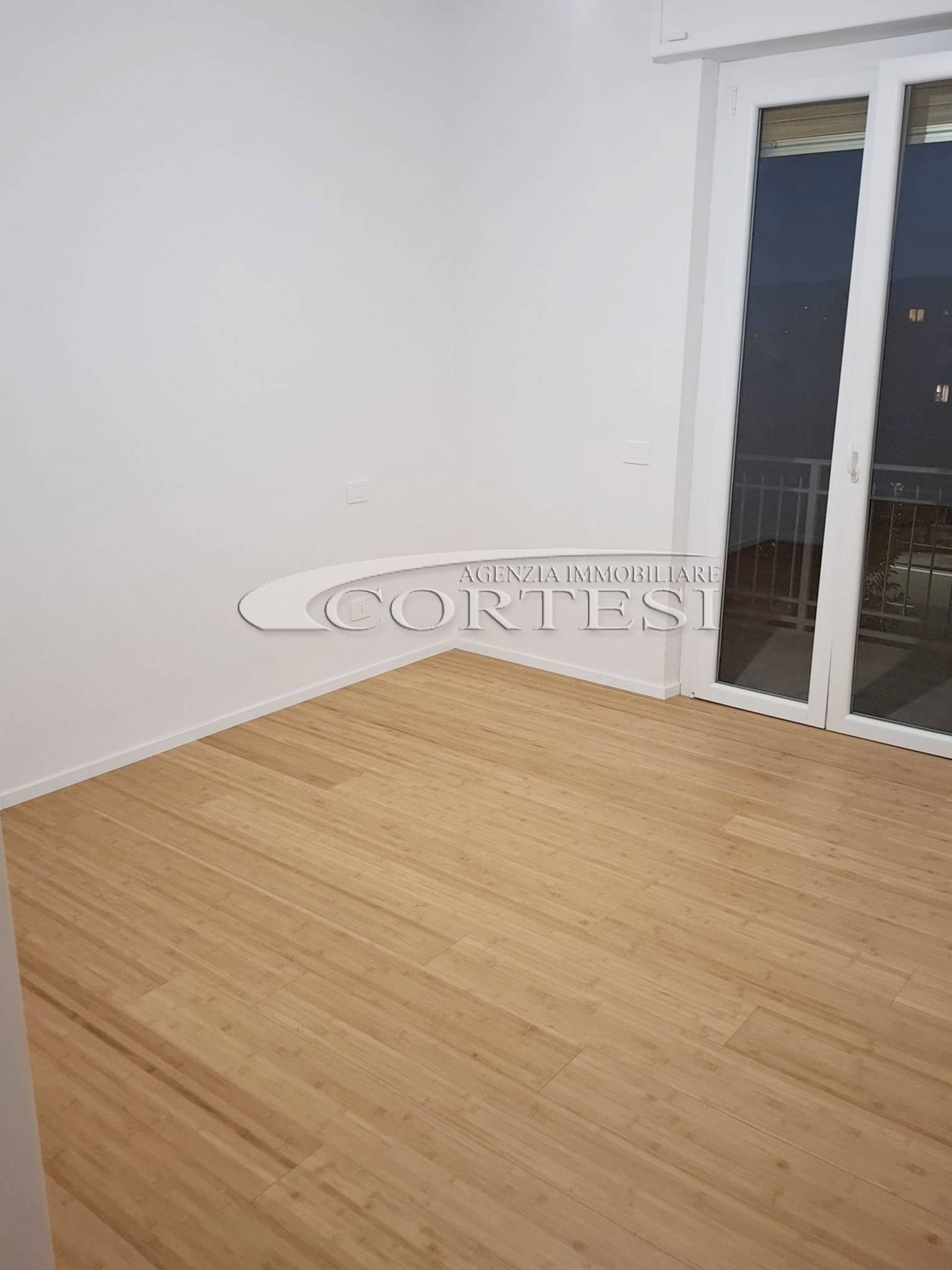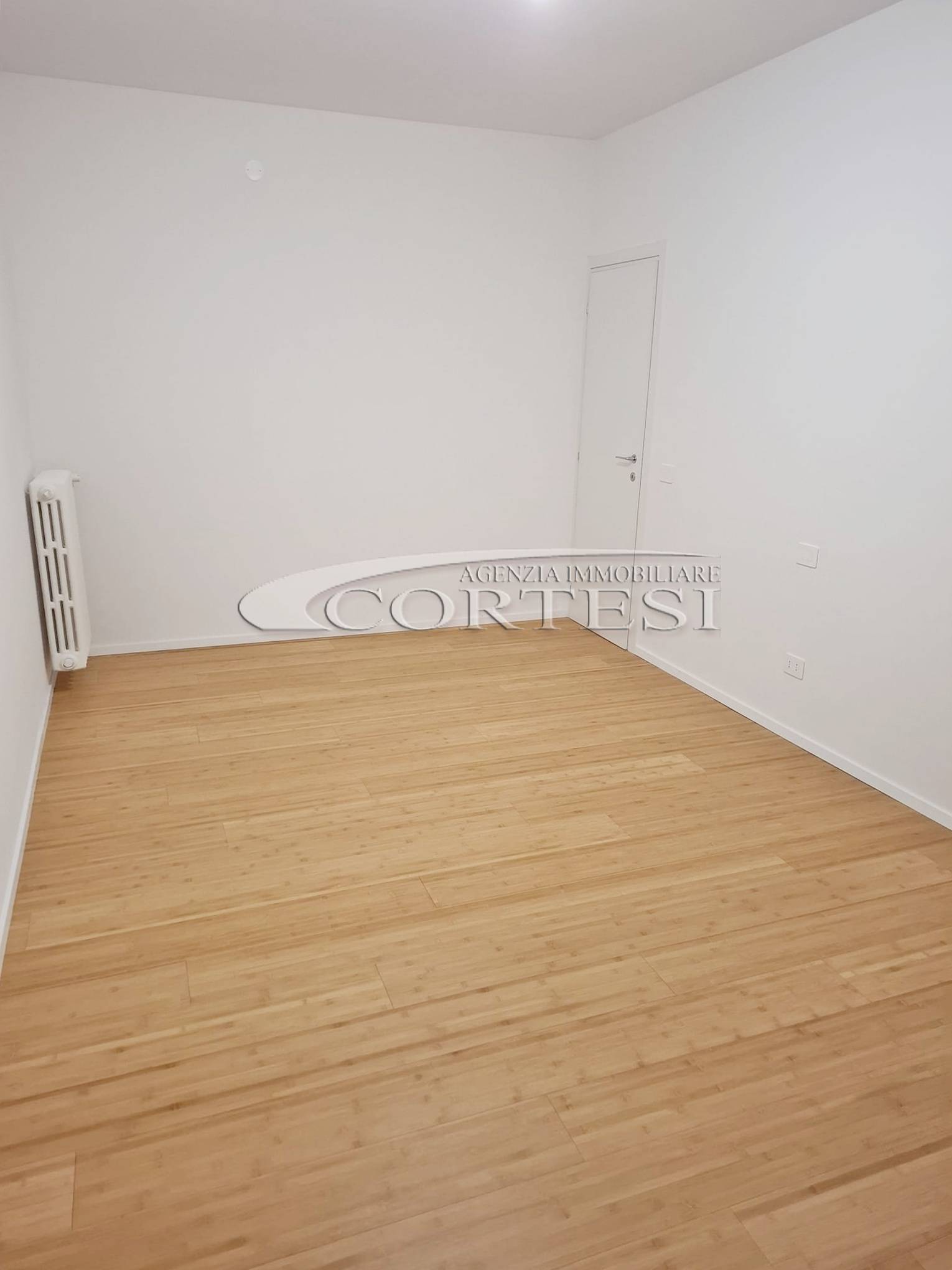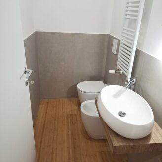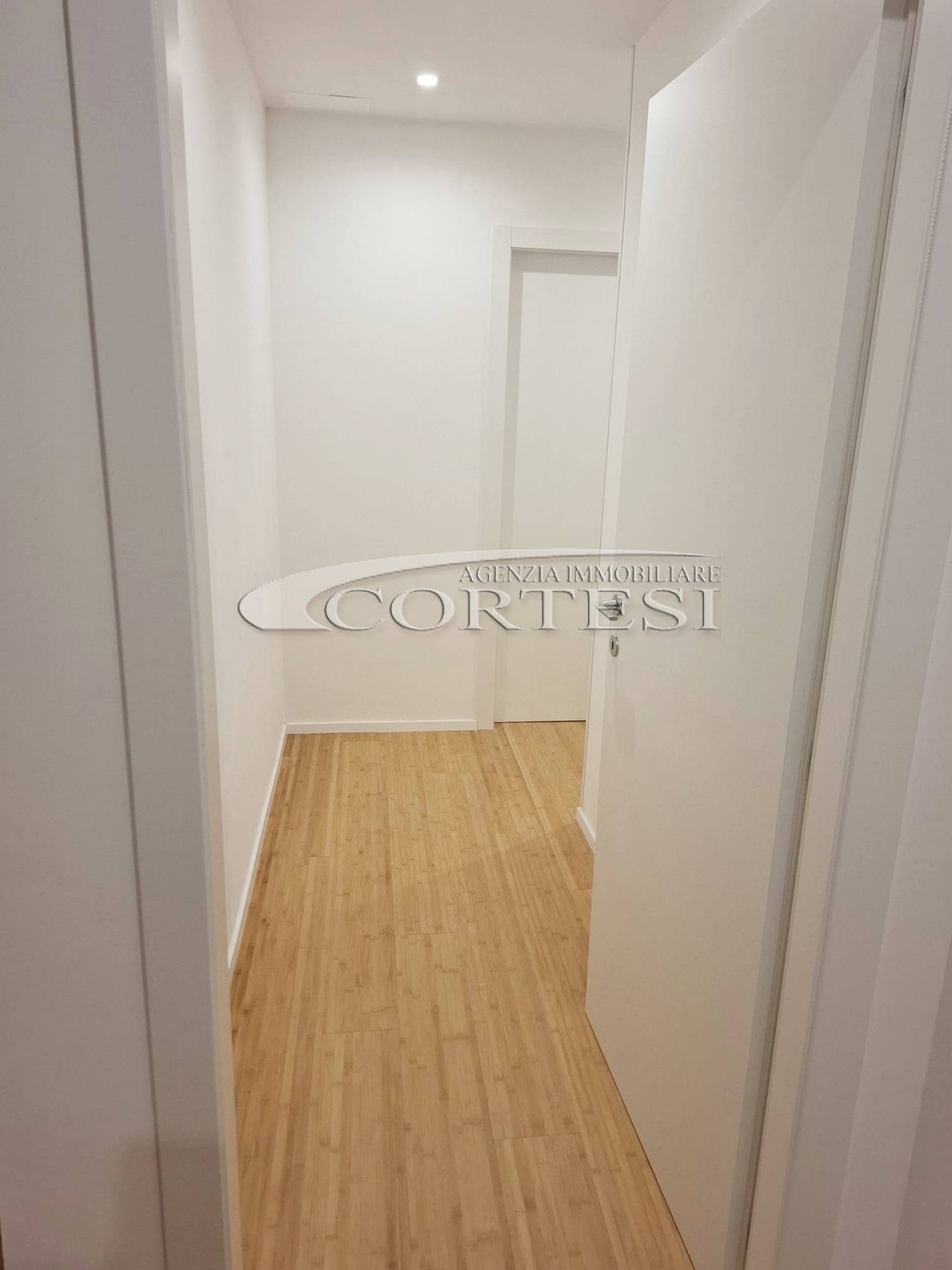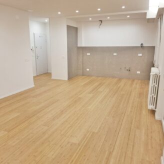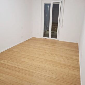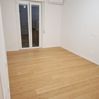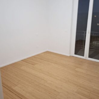L’appartamento si apre su un ampio soggiorno con angolo cottura, reso ancora più accogliente dal pavimento in parquet di bambù e dal controsoffitto con illuminazione a led modulabile. Completa la zona giorno un pratico ripostiglio ed un balcone.