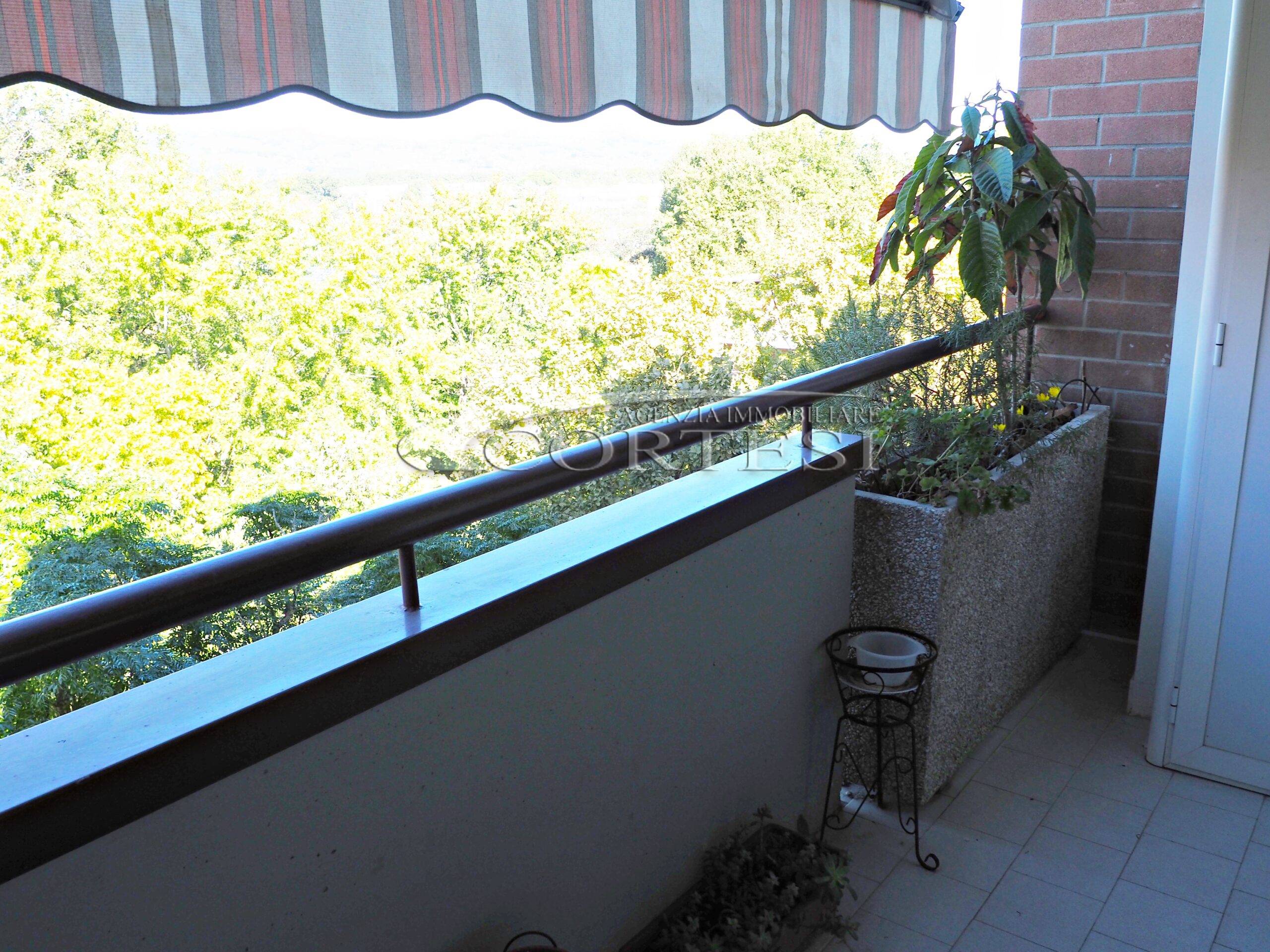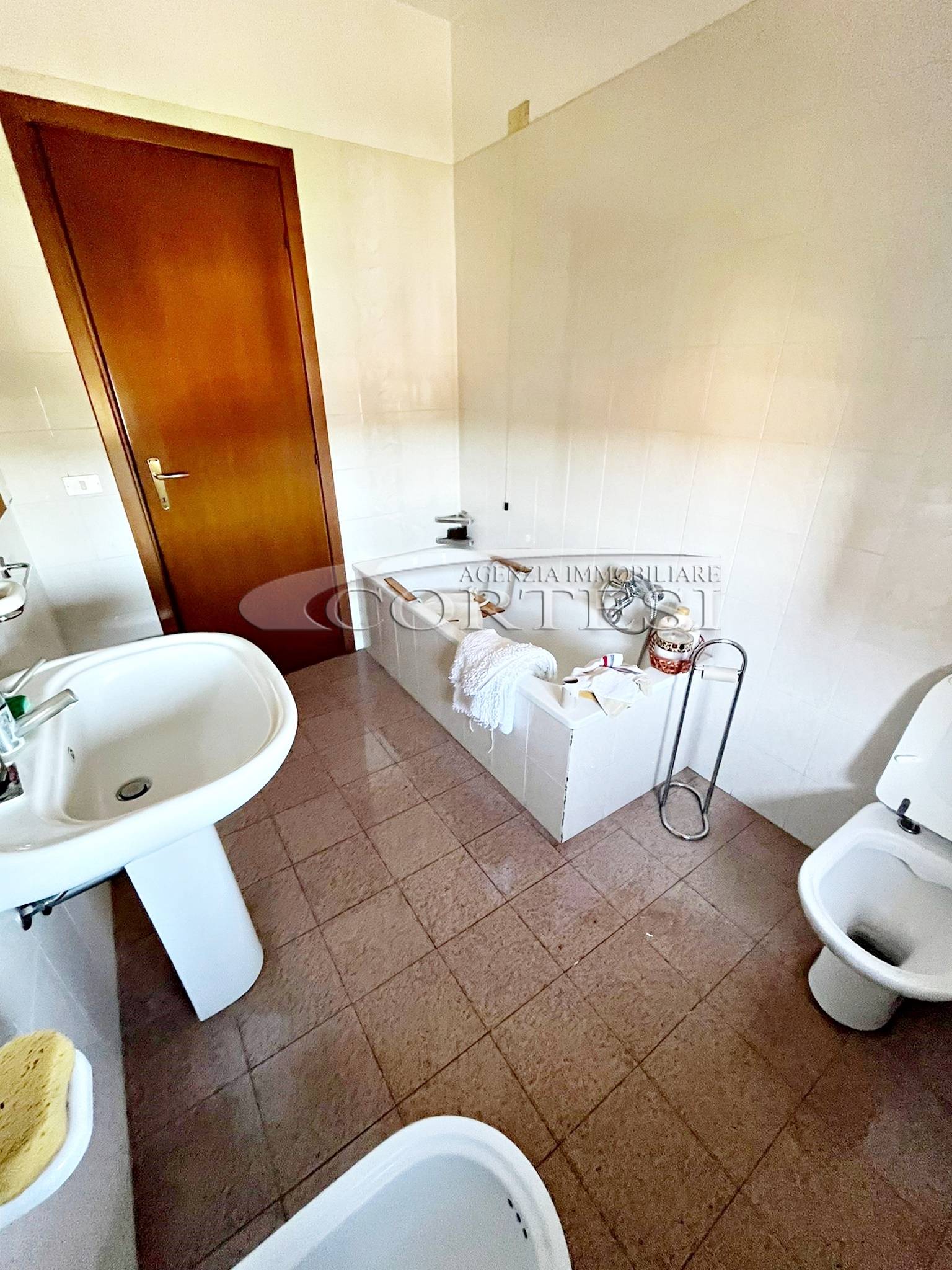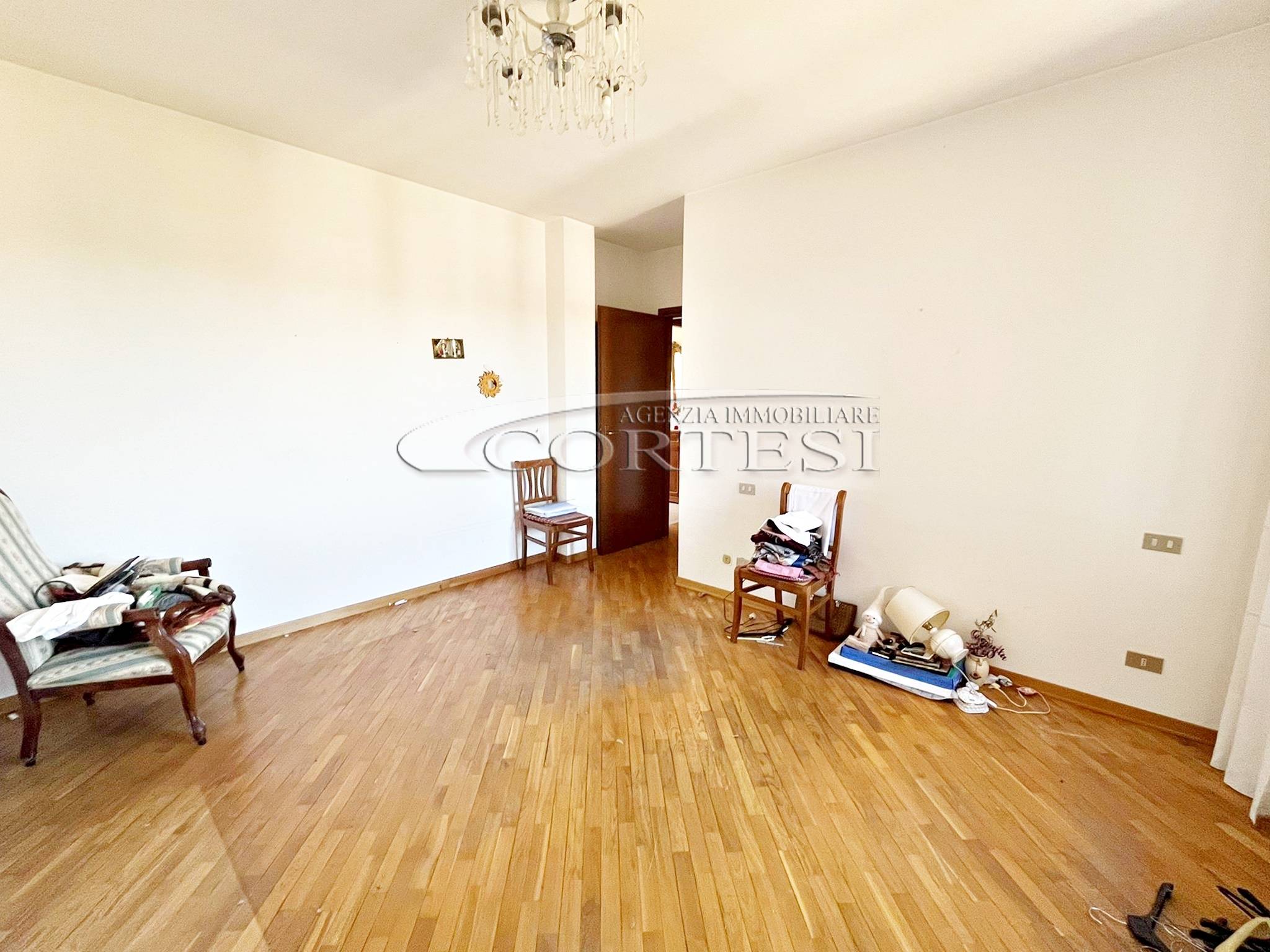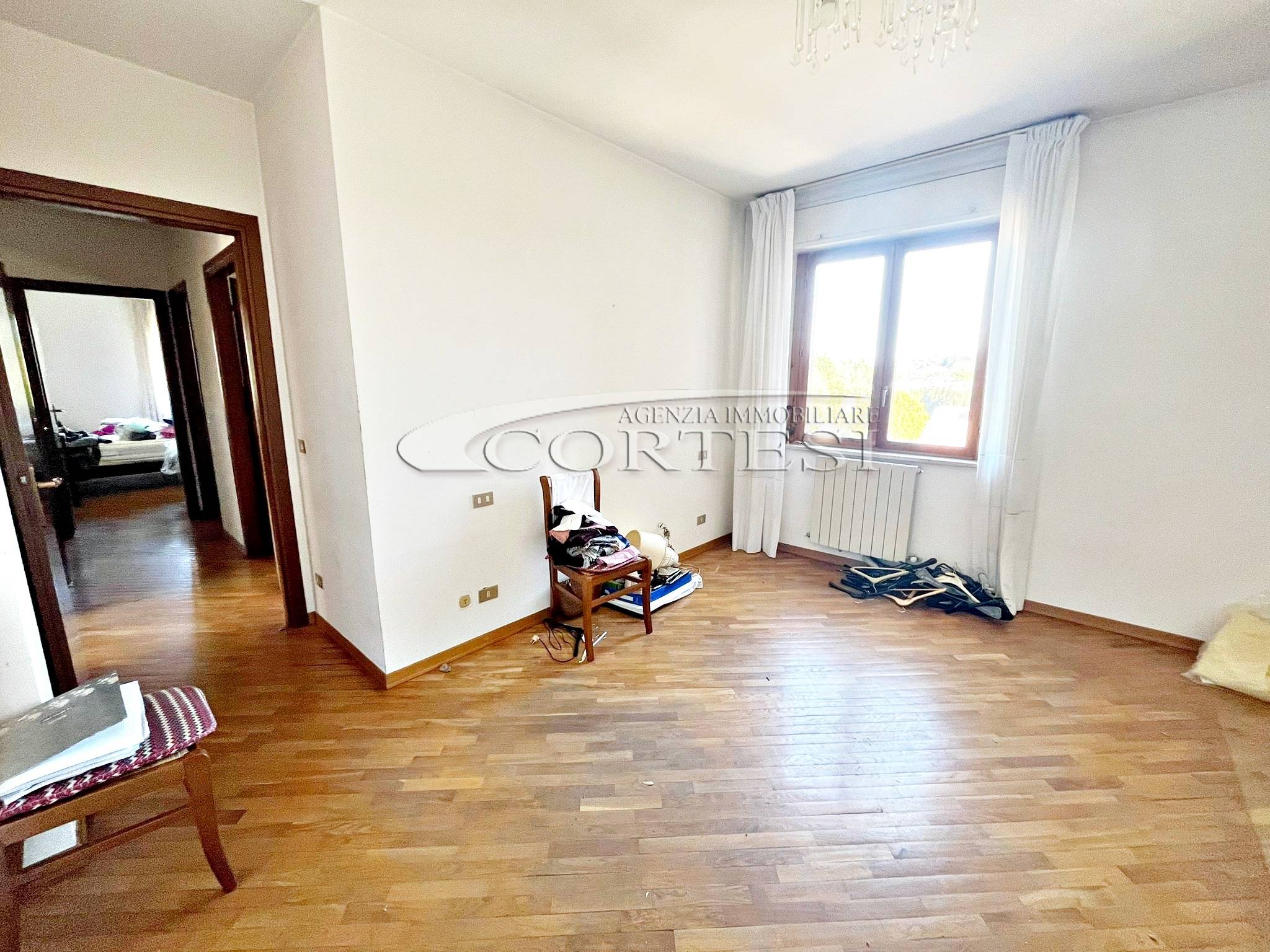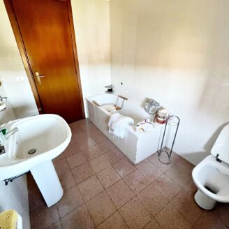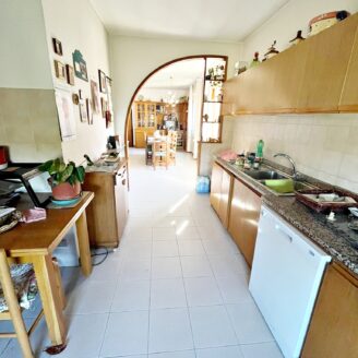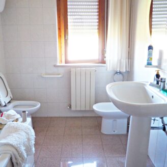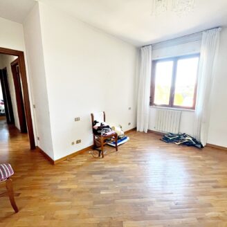 Ingresso su spazioso e luminoso soggiorno, cucina abitabile con camino e accesso al balcone, tre camere da letto con parquet di cui due matrimoniali, due bagni (uno con doccia, l’altro finestrato con vasca).