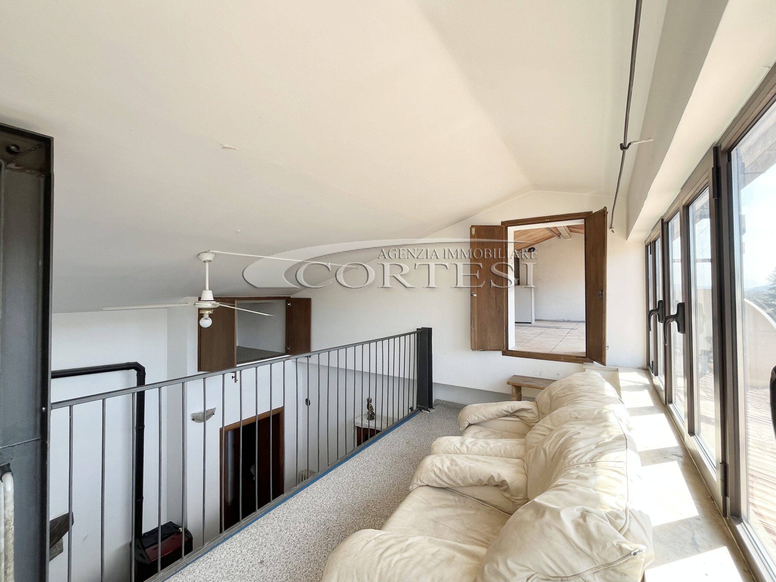 L’immobile è composto da soggiorno con angolo cottura e camino, arricchito da una zona living soppalcata con ampie vetrate, tre spaziose camere matrimoniali, due bagni oltre ad un pratico ripostiglio, una comoda area lavanderia, balcone e soffitta.