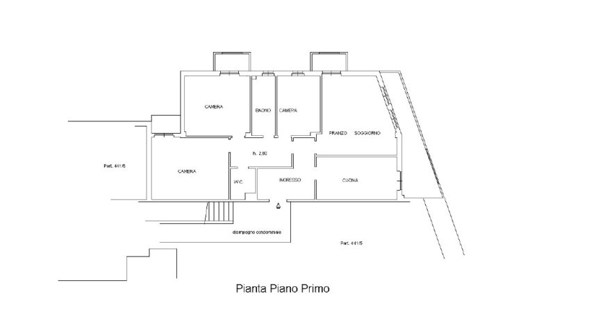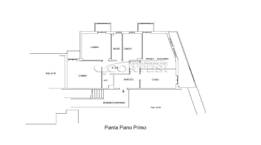 Appartamento di circa 120 mq, posto al primo piano di un piccolo condominio e disposto su un unico livello.
