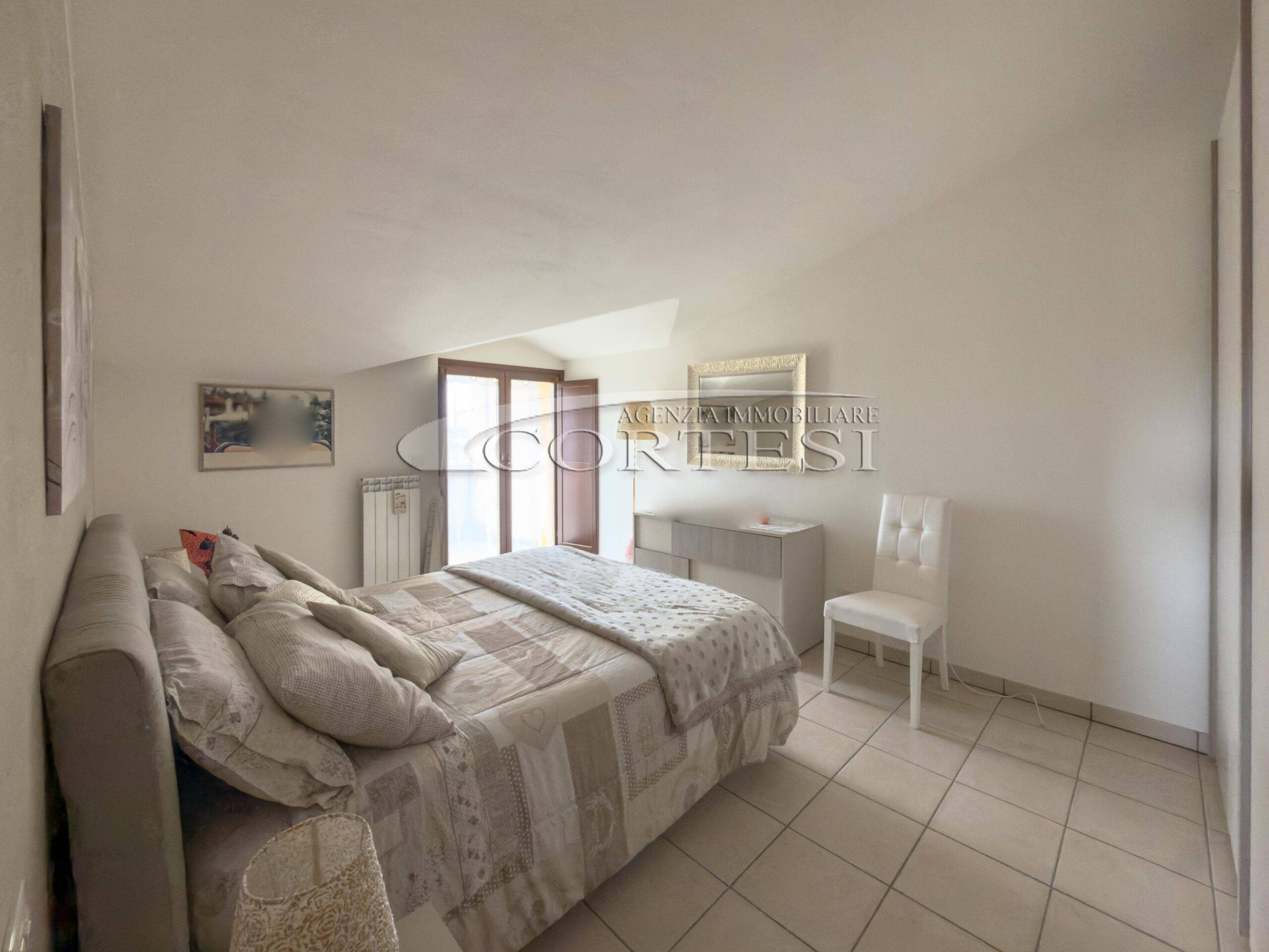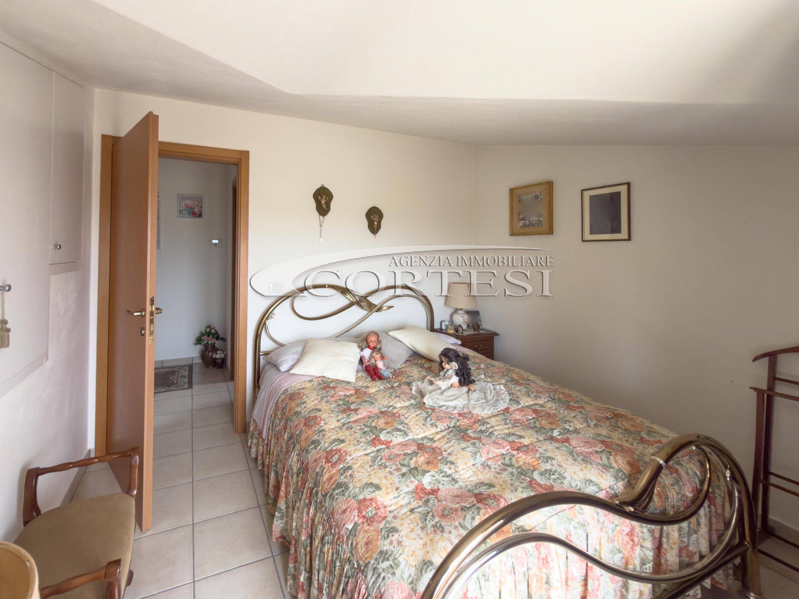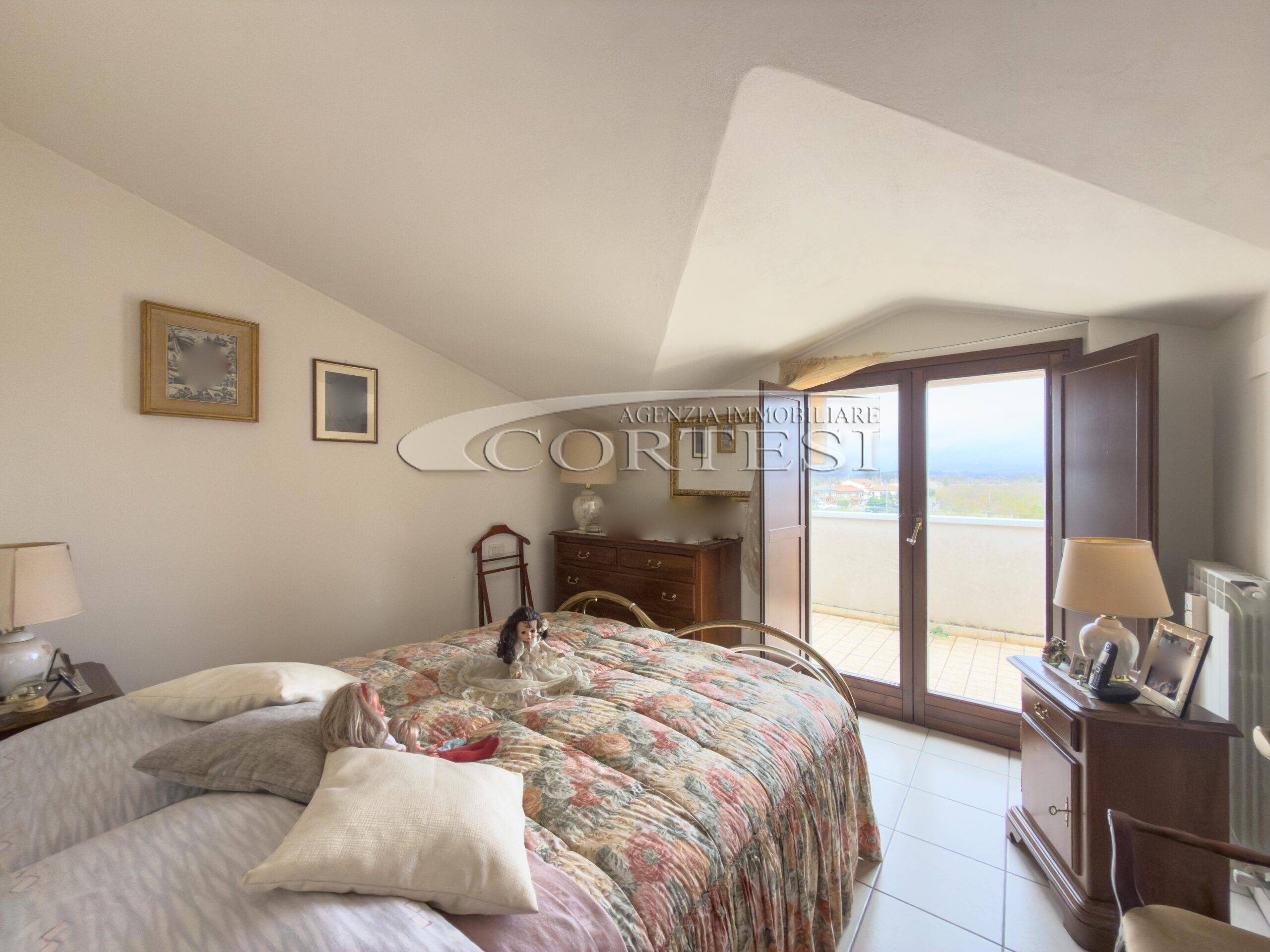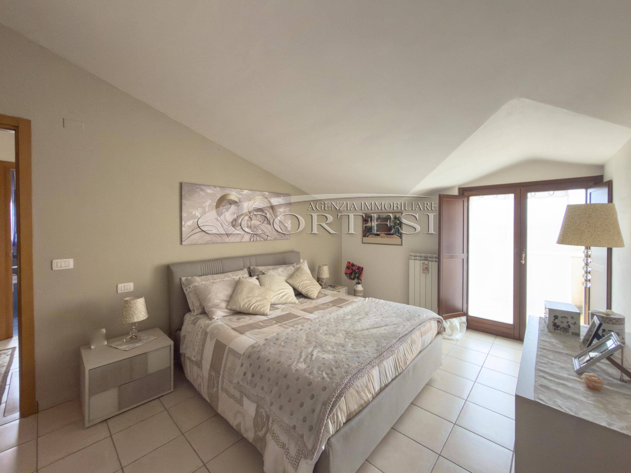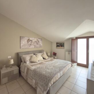 Al livello superiore mansardato si sviluppa la zona notte, composta da due camere entrambe con accesso a un ulteriore terrazzo, oltre a un secondo bagno finestrato dotato di vasca.