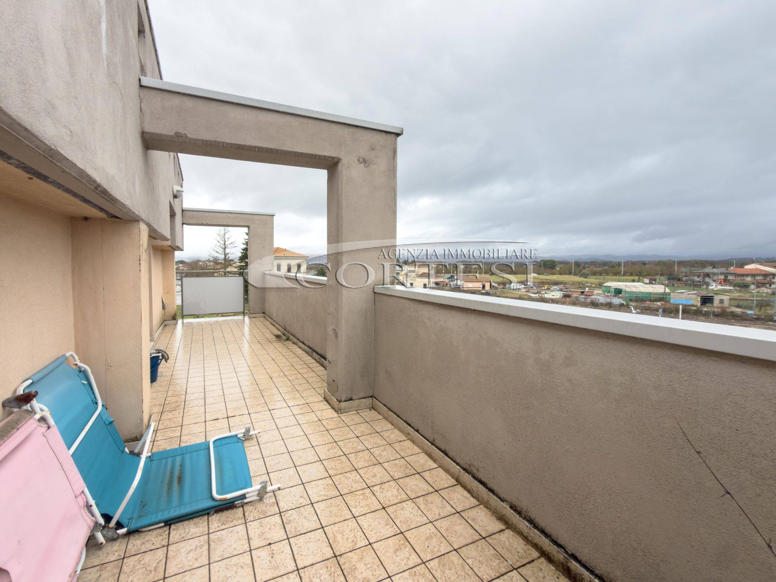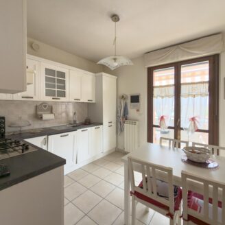 L’ingresso si apre su una luminosa zona giorno composta da soggiorno con accesso diretto a un’ampia terrazza abitabile e coperta. A seguire troviamo la cucina abitabile, anch’essa con accesso al terrazzo, creando così una continuità funzionale tra spazi interni ed esterni. Completa il piano un bagno finestrato con doccia.