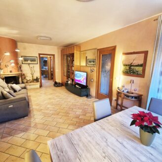 Appartamento capotesta di recente costruzione con ottime finiture, posto a piano primo, cosi disposto, la zona giorno si compone di un luminoso soggiorno con camino e una cucina, entrambi con accesso a terrazzo coperto, si accede poi tramite un disimpegno alla zona notte che si compone di due camere, di cui una matrimoniale con accesso al balcone, e di due bagni, uno principale sia con vasca che doccia e uno di servizio con doccia.
