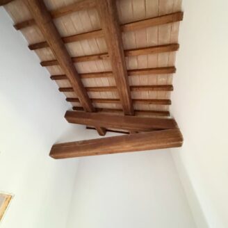 L’abitazione è dotata di riscaldamento a pavimento con caldaia a condensazione, infissi in legno con doppio vetro, soffitti con travi in legno a vista e accesso tramite cancello elettrico con codice, a garanzia di privacy e sicurezza.