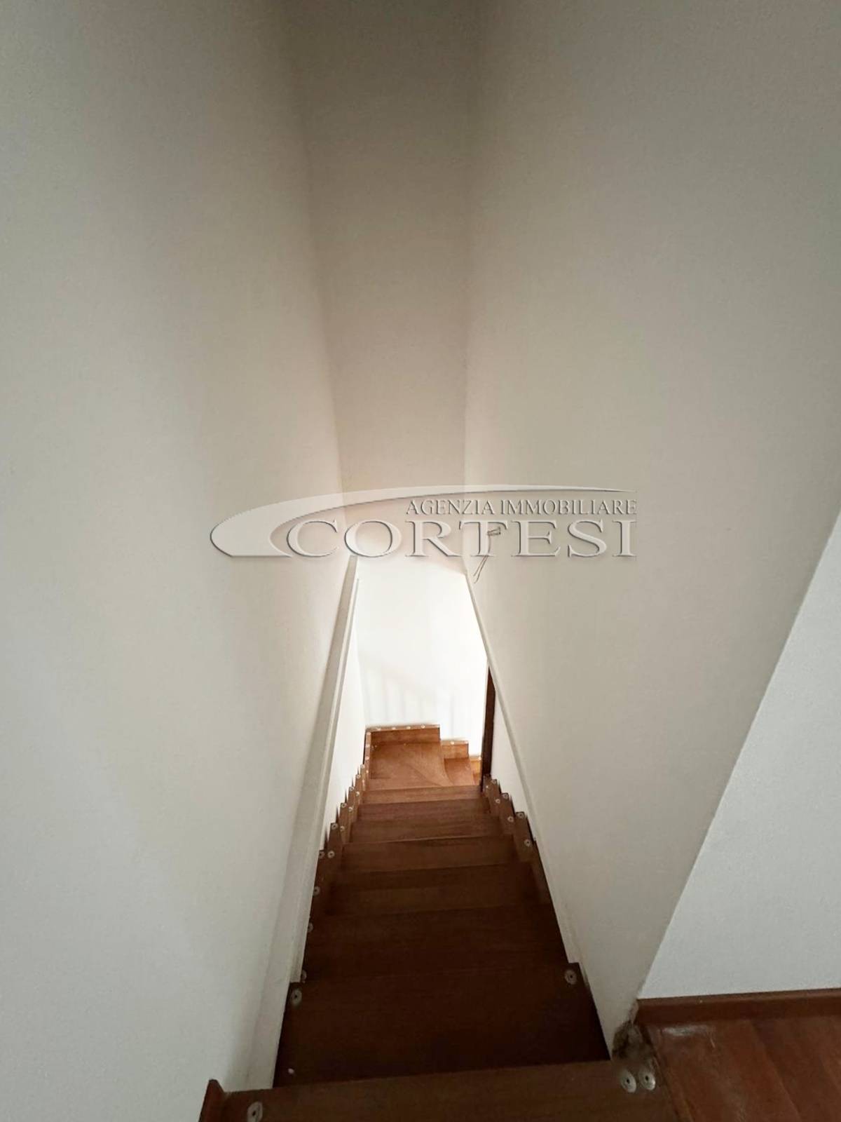 Una elegante scala in legno conduce al piano superiore, dove si sviluppa la zona notte composta da due ampie camere matrimoniali, una camera singola ed un secondo bagno. Il parquet presente in tutti gli ambienti dona continuità, eleganza ed un senso di calore diffuso.