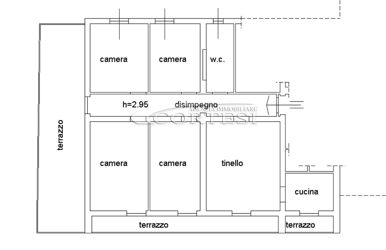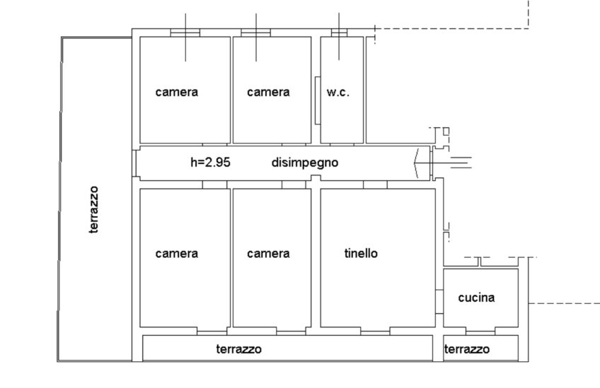 Punto di particolare interesse è l’ampio terrazzo, accessibile direttamente dal corridoio.