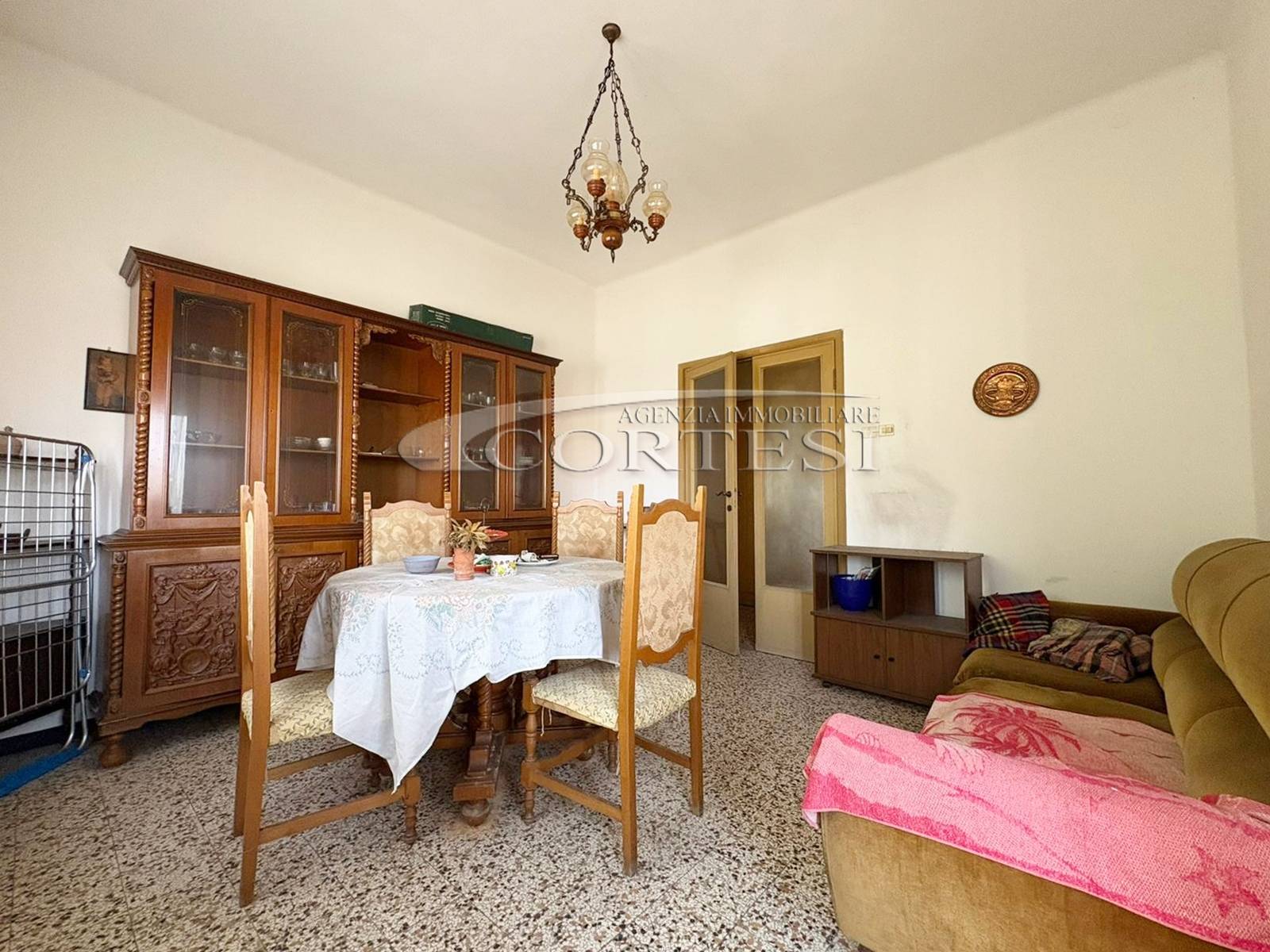 L’ingresso conduce a un ampio soggiorno, accogliente e ricco di luce naturale, con accesso diretto alla splendida terrazza, ideale per momenti di relax all’aperto, cene estive o per chi desidera uno spazio vivibile aggiuntivo.