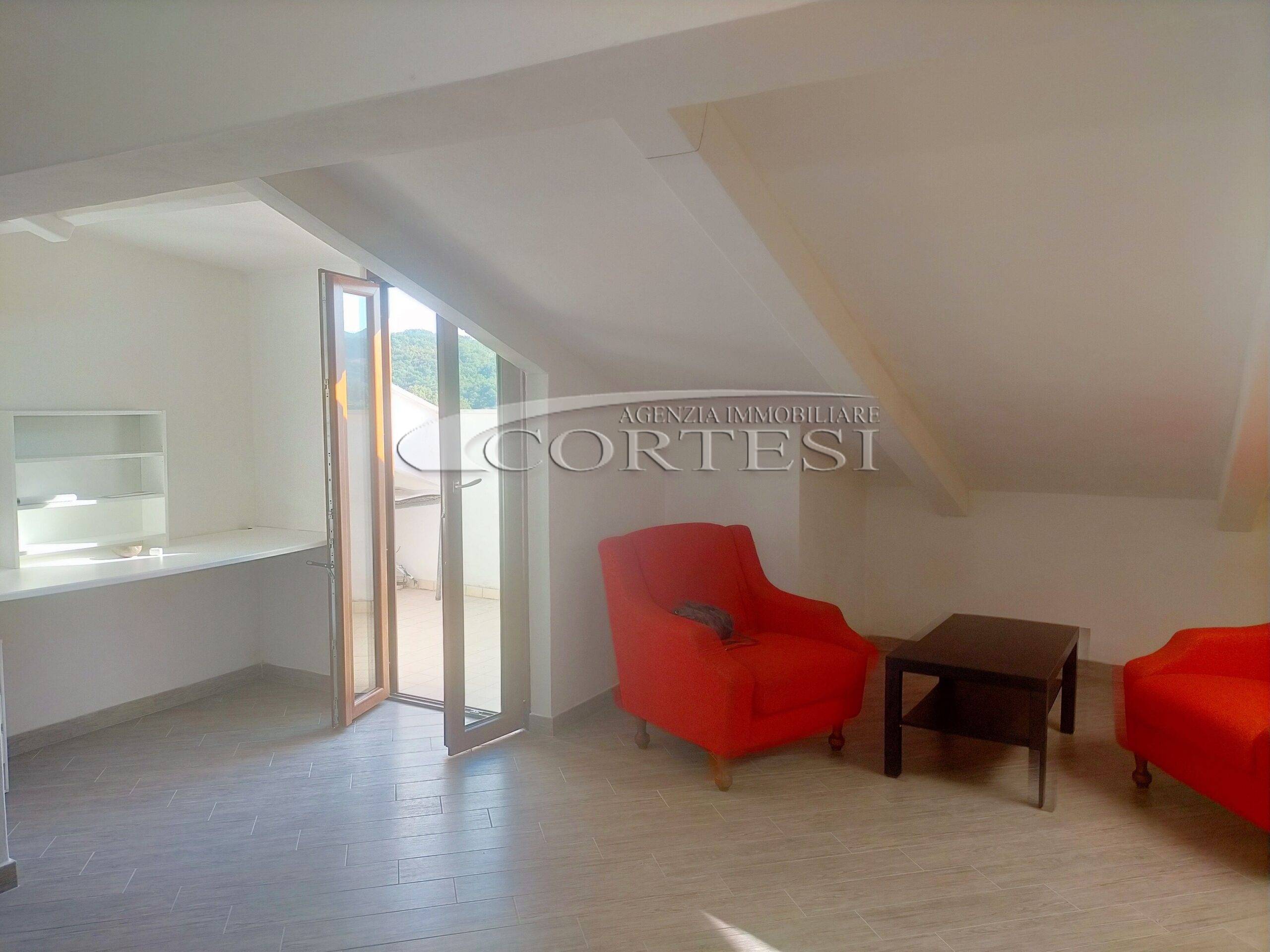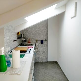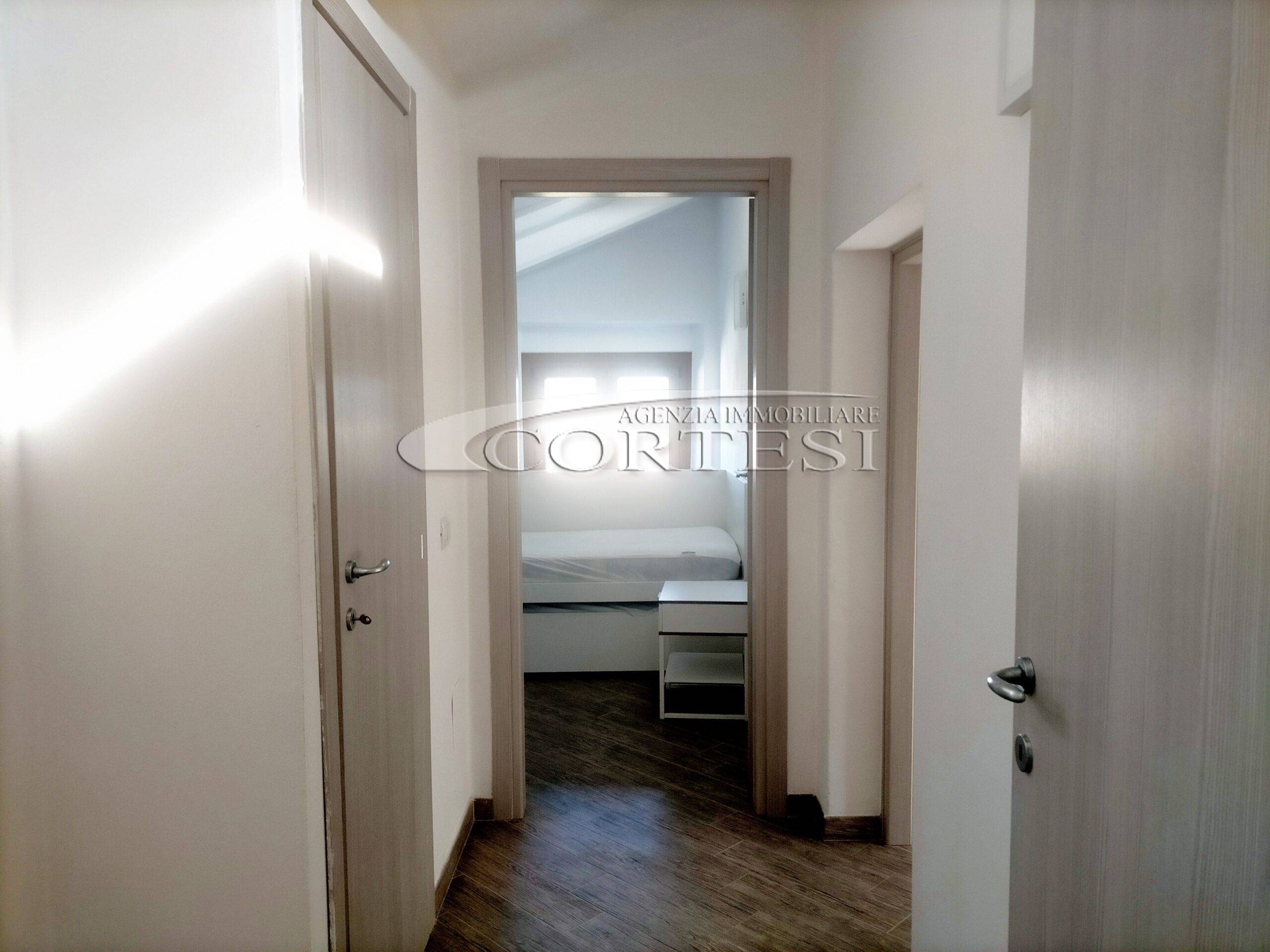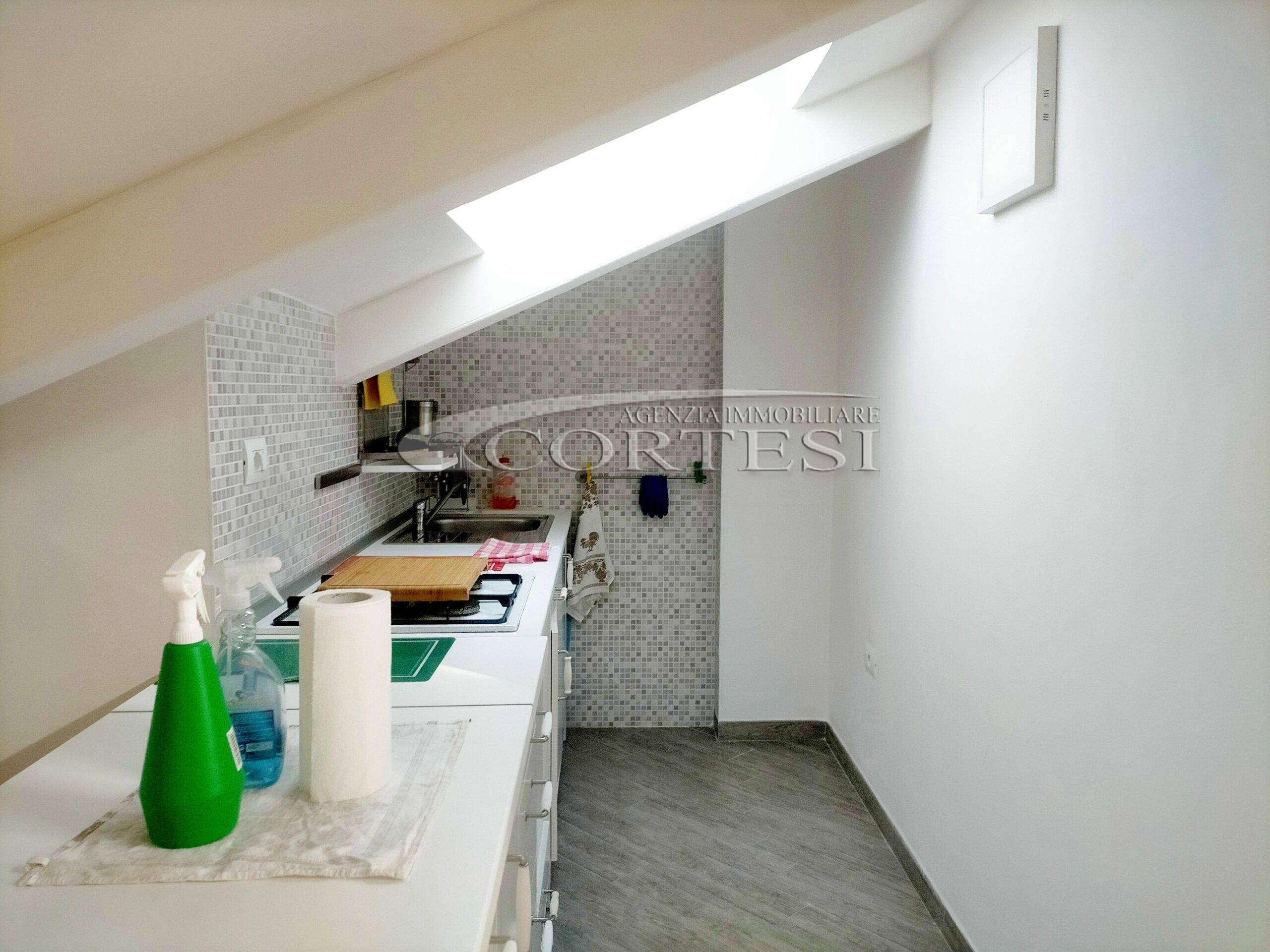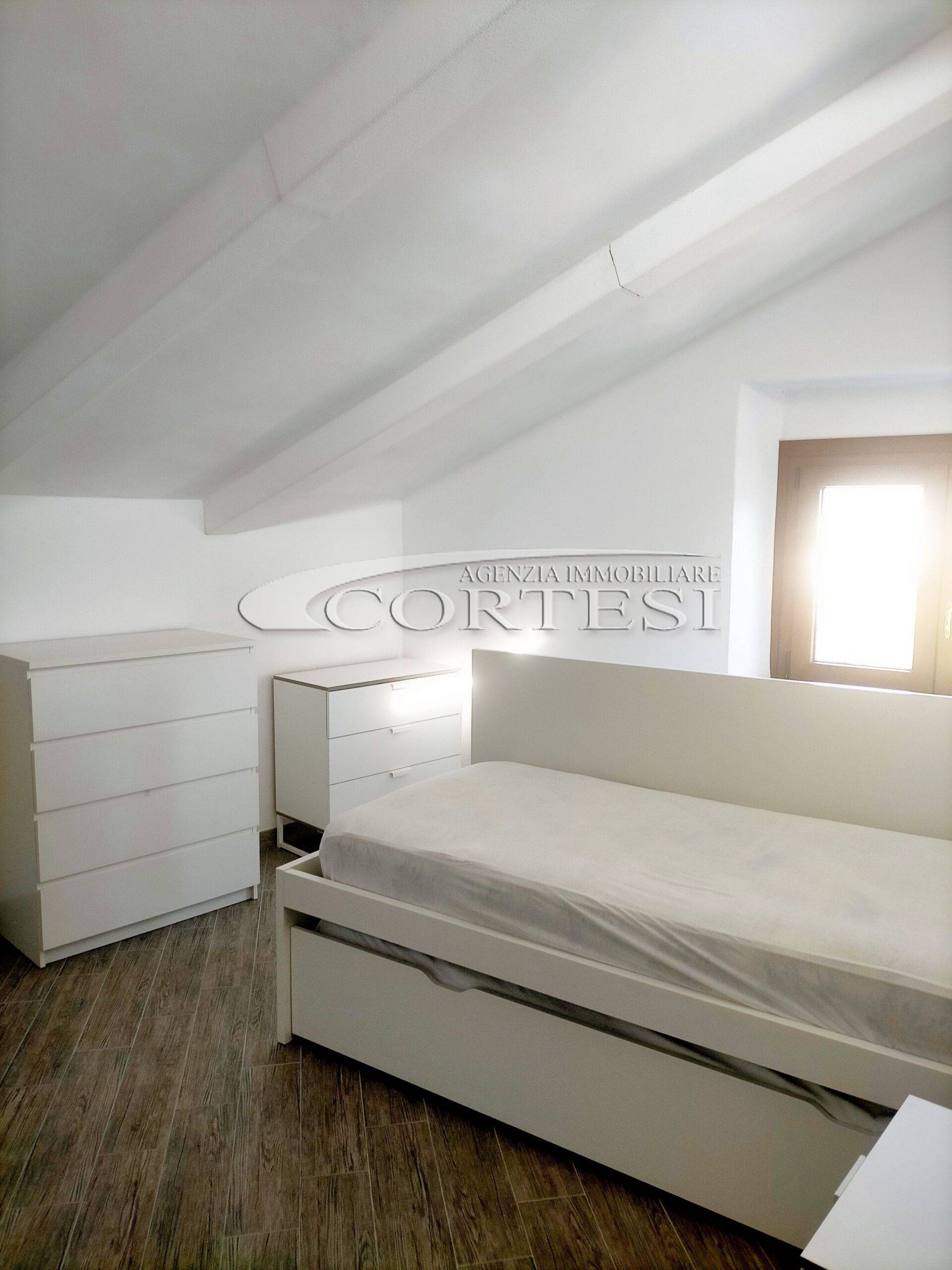 Proponiamo in Affitto Appartamento mansardato con ascensore, completamente ristrutturato a nuovo, composto da: soggiorno, cucina, due camere, bagno e terrazzo.