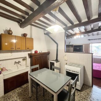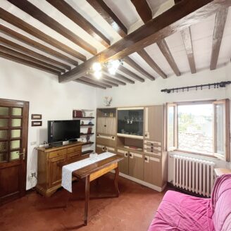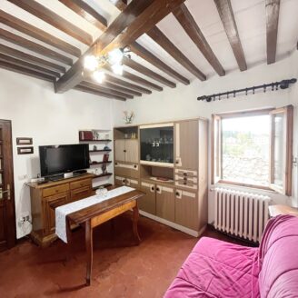 Appartamento di 82 mq nel centro storico di Anghiari, situato al primo e secondo piano di un piccolo palazzo composto da tre unità abitative. Al primo piano si trovano ampio ingresso, cucina abitabile con camino e stufa a pellet, salotto e una camera matrimoniale. Una scala a chiocciola, illuminata da un lucernario, conduce al piano superiore dove si trova una seconda camera matrimoniale con due ripostigli finestrati. Tutte le finestre dell’abitazione offrono scorci sul territorio e sul paese di Anghiari. Possibilità di accesso in auto e parcheggio pubblico gratuito nelle vicinanze.