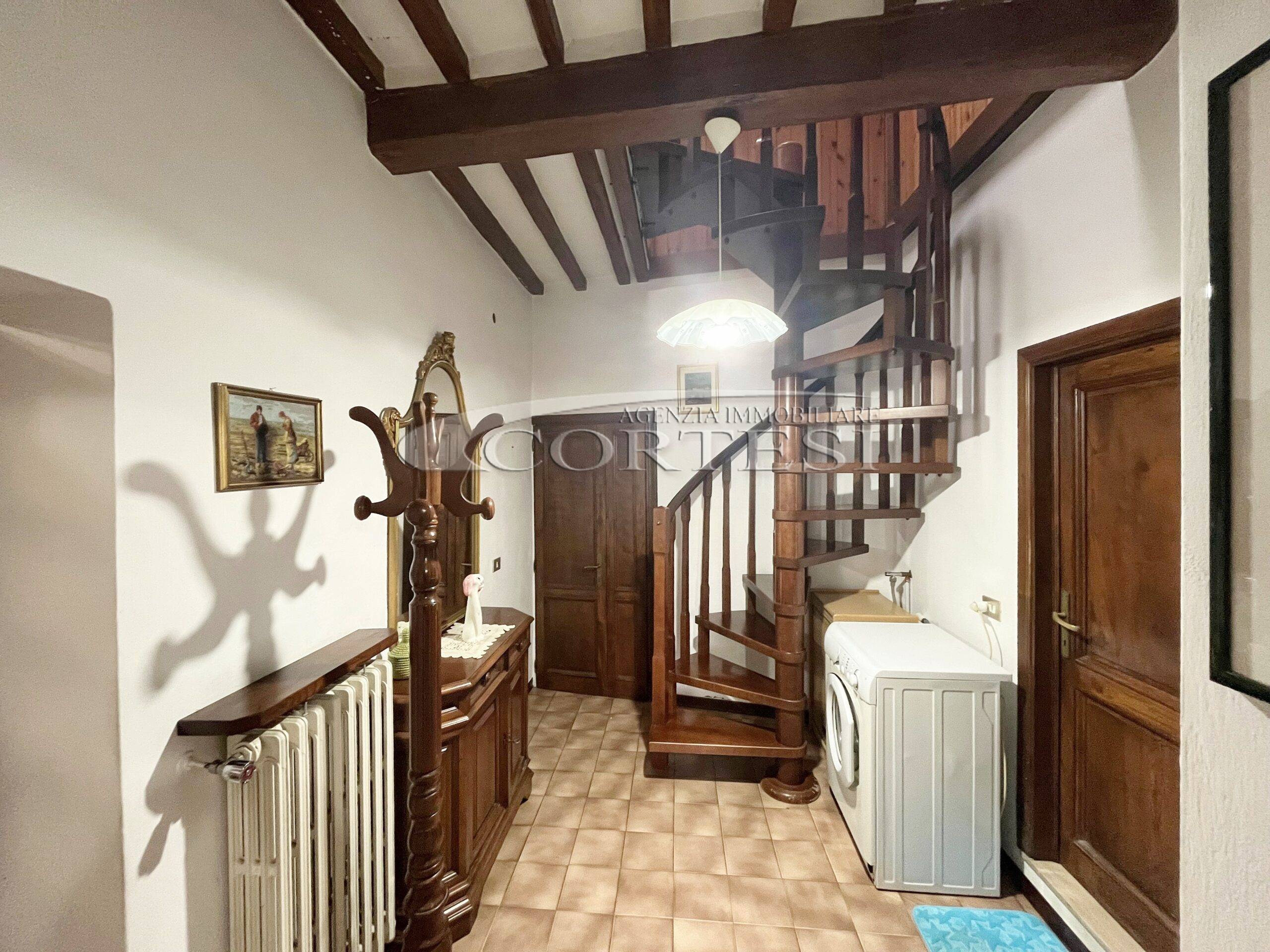 Appartamento di 82 mq nel centro storico di Anghiari, situato al primo e secondo piano di un piccolo palazzo composto da tre unità abitative. Al primo piano si trovano ampio ingresso, cucina abitabile con camino e stufa a pellet, salotto e una camera matrimoniale. Una scala a chiocciola, illuminata da un lucernario, conduce al piano superiore dove si trova una seconda camera matrimoniale con due ripostigli finestrati. Tutte le finestre dell’abitazione offrono scorci sul territorio e sul paese di Anghiari. Possibilità di accesso in auto e parcheggio pubblico gratuito nelle vicinanze.