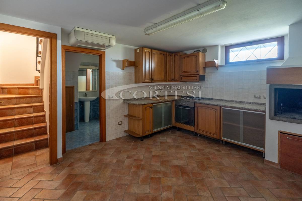 Al piano seminterrato troviamo una comoda taverna di mq 30 mq con camino e bagno, ideale come ambiente conviviale o zona relax.